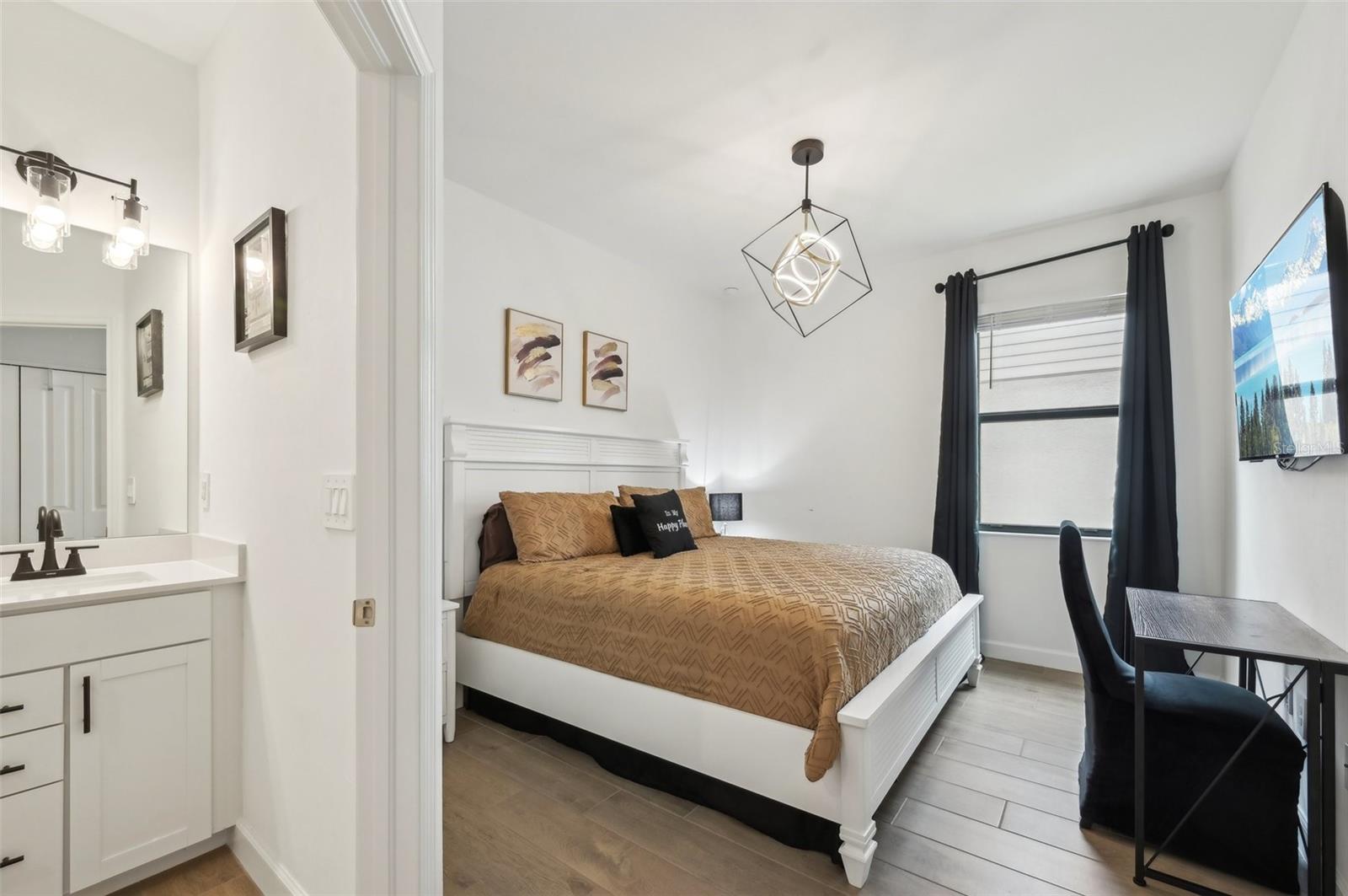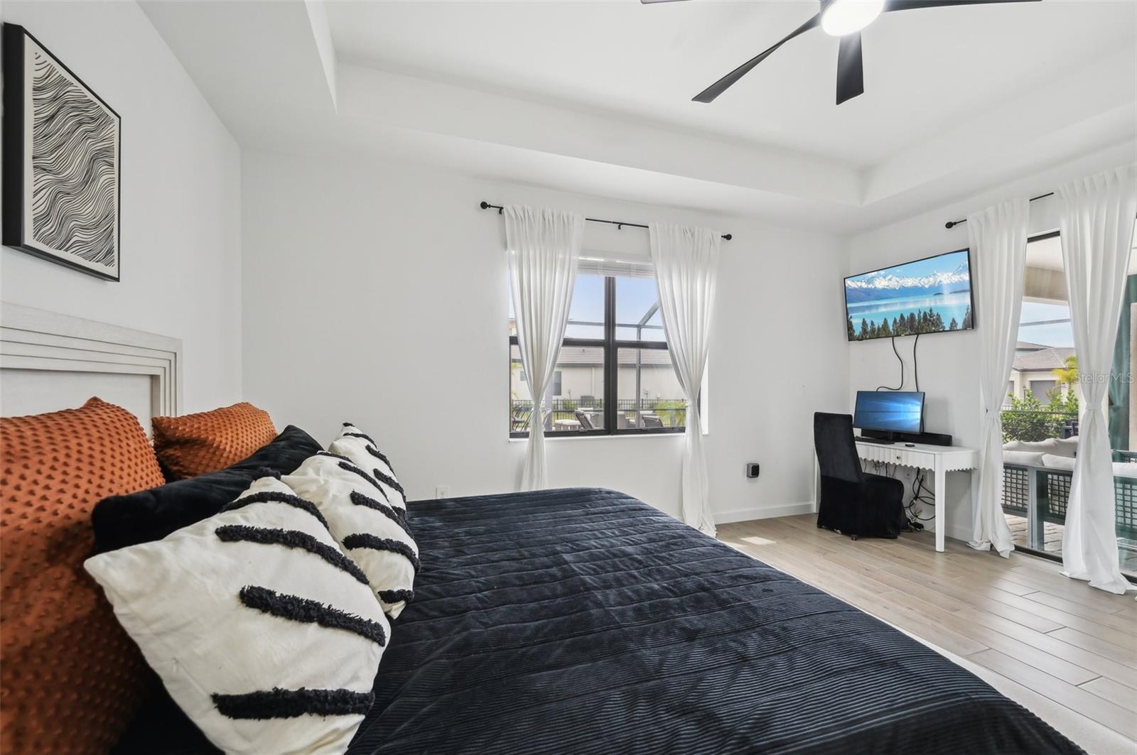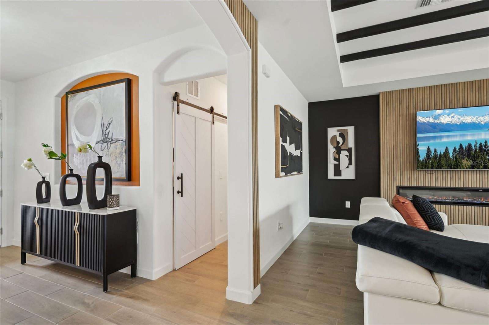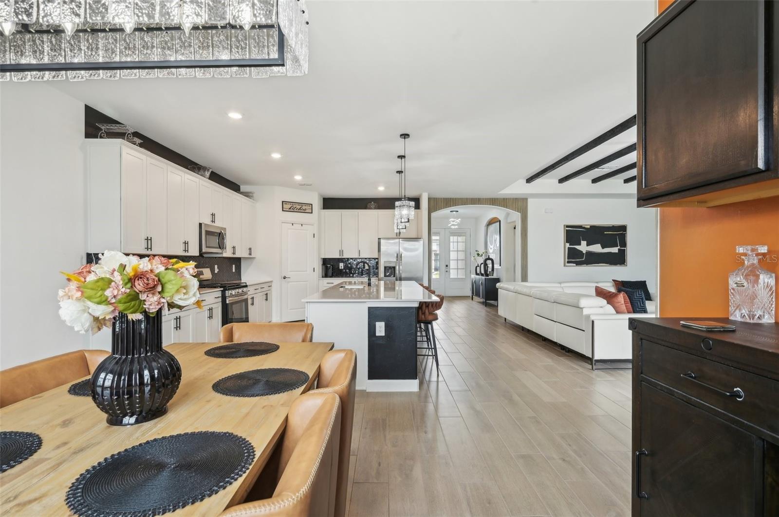 2024 Summerville Model | 3 Bed + Den | 3 Bath | 3-Car Garage | Pool & Spa | Oversized Lot. Beautifully upgraded and move-in ready, this newly built Summerville model in Lorraine Lakes at Lakewood Ranch is perfectly positioned on an oversized, fenced corner lot on a quiet cul-de-sac. This popular single-level floor plan features 3 bedrooms, 3 full baths, a den, and a 3-car garage, centered around a spacious open-concept great room, kitchen, and dining area—ideal for everyday living and entertaining. Upgrades include wood ceiling beams, a custom wood feature wall with a 100" electric fireplace, plank tile flooring throughout, barn doors on the den and laundry room, quartz countertops, tile backsplash, stainless steel appliances, single-bowl sink, touchless kitchen faucet, and designer hardware and lighting. The spacious primary suite offers serene water views, two custom built-in walk-in closets, and a spa-style bath with dual vanities and a large walk-in shower. Step outside to your private backyard oasis featuring a heated pool, spa, outdoor shower, covered lanai with seating and dining area, retractable awning, and an expanded paver patio beyond the screened enclosure—ideal for entertaining or relaxing. Full builder warranty through August 2025. Resort-style amenities at Lorraine Lakes include gated entry, lawn care, high-speed internet and cable, resort and lap pools, splash zone, clubhouse with tiki bar and restaurant, state-of-the-art fitness center, indoor basketball and volleyball courts, arcade, tennis and pickleball courts, putting green, and more. Located in Lakewood Ranch, a #1 multi-generational community in the U.S., you'll enjoy top-rated schools, shopping, dining, golf, parks, and events just minutes away. This home offers the perfect blend of luxury, convenience, and vibrant community living. Furniture package pricing available upon request. Outdoor tiki bar and drapery do not convey. Flexible closing date with option for short-term seller rent-back ideal for buyers desiring a summer move in date.