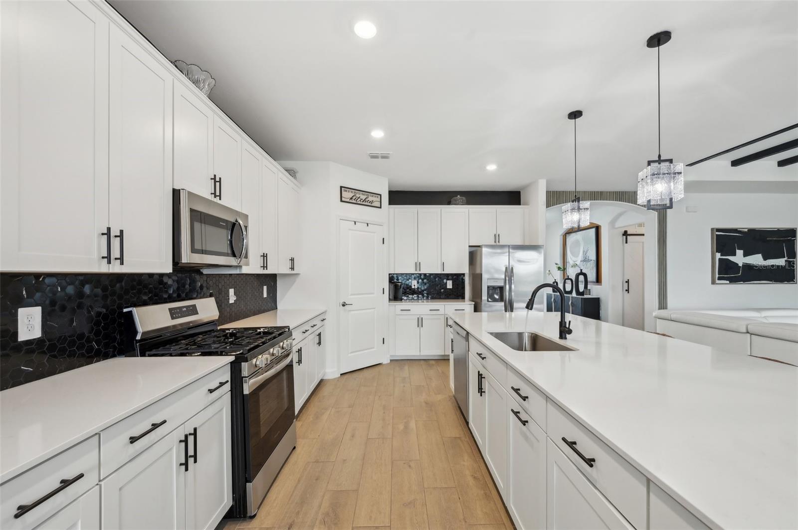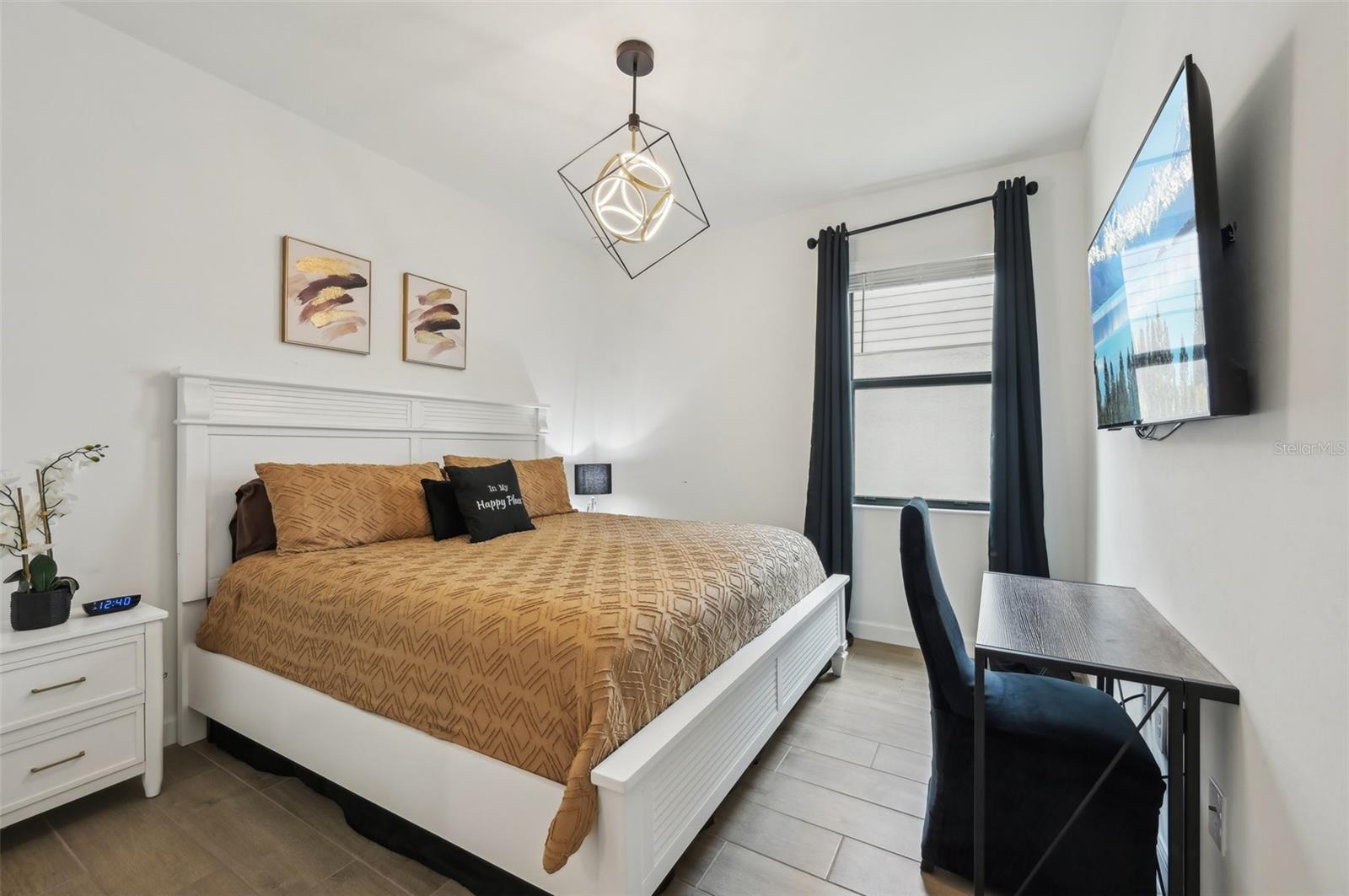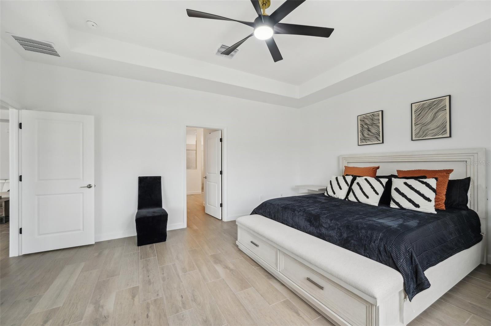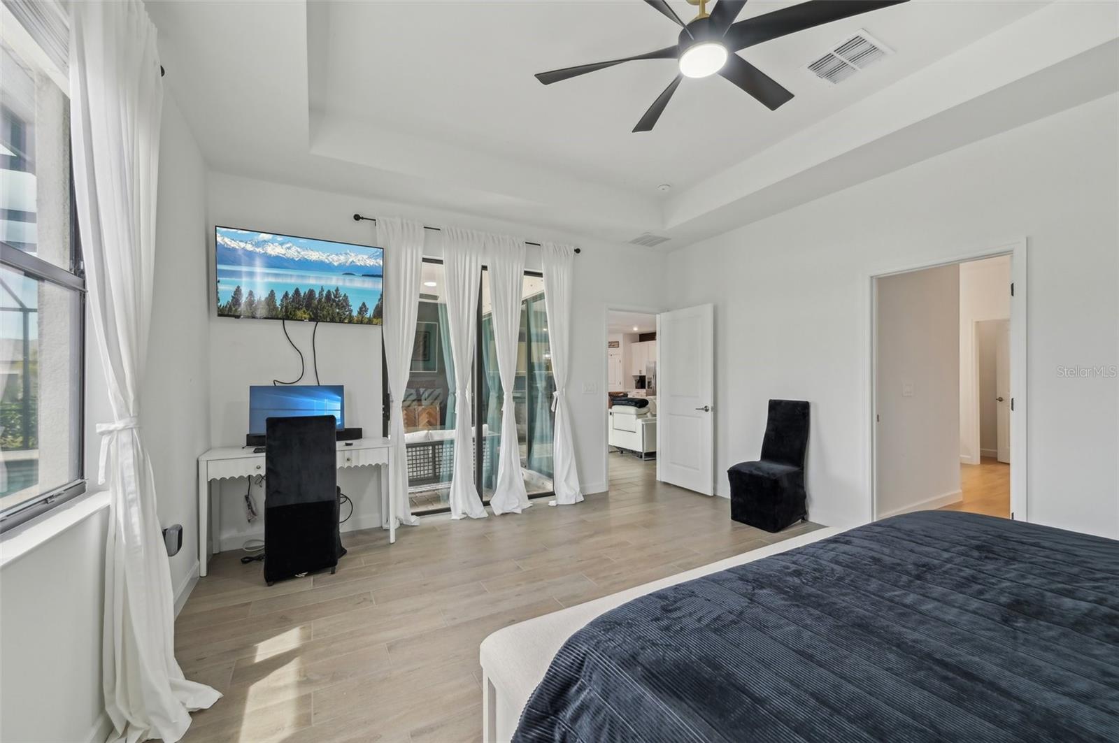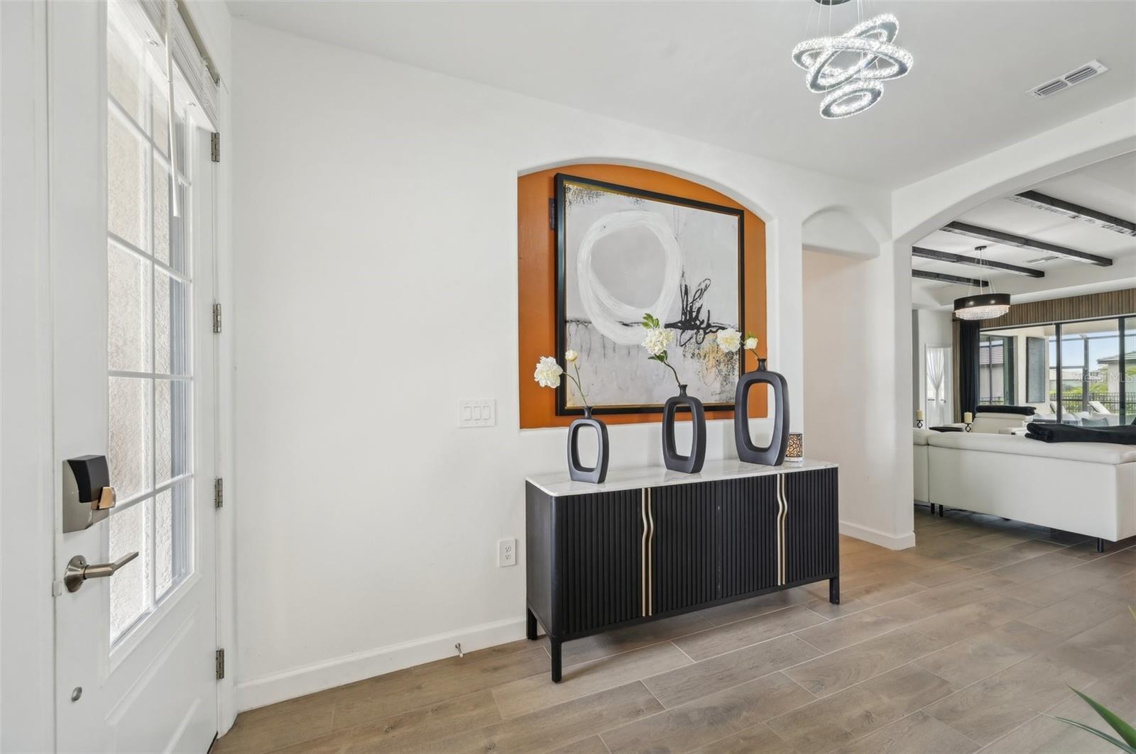 2024 Summerville Model | 3 Bed + Den | 3 Bath | 3-Car Garage | Pool & Spa | Oversized Lot. Beautifully upgraded and move-in ready, this newly built Summerville model in Lorraine Lakes at Lakewood Ranch is perfectly positioned on an oversized, fenced corner lot on a quiet cul-de-sac. This popular single-level floor plan features 3 bedrooms, 3 full baths, a den, and a 3-car garage, centered around a spacious open-concept great room, kitchen, and dining area—ideal for everyday living and entertaining. Upgrades include wood ceiling beams, a custom wood feature wall with a 100" electric fireplace, plank tile flooring throughout, barn doors on the den and laundry room, quartz countertops, tile backsplash, stainless steel appliances, single-bowl sink, touchless kitchen faucet, and designer hardware and lighting. The spacious primary suite offers serene water views, two custom built-in walk-in closets, and a spa-style bath with dual vanities and a large walk-in shower. Step outside to your private backyard oasis featuring a heated pool, spa, outdoor shower, covered lanai with seating and dining area, retractable awning, and an expanded paver patio beyond the screened enclosure—ideal for entertaining or relaxing. Full builder warranty through August 2025. Resort-style amenities at Lorraine Lakes include gated entry, lawn care, high-speed internet and cable, resort and lap pools, splash zone, clubhouse with tiki bar and restaurant, state-of-the-art fitness center, indoor basketball and volleyball courts, arcade, tennis and pickleball courts, putting green, and more. Located in Lakewood Ranch, a #1 multi-generational community in the U.S., you'll enjoy top-rated schools, shopping, dining, golf, parks, and events just minutes away. This home offers the perfect blend of luxury, convenience, and vibrant community living. Furniture package pricing available upon request. Outdoor tiki bar and drapery do not convey. Flexible closing date with option for short-term seller rent-back ideal for buyers desiring a summer move in date.