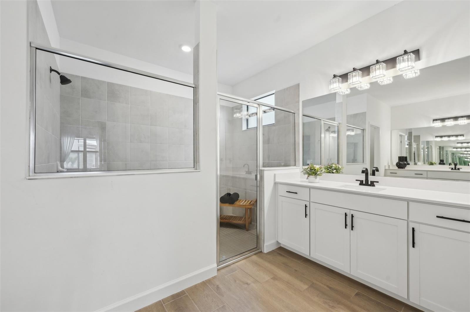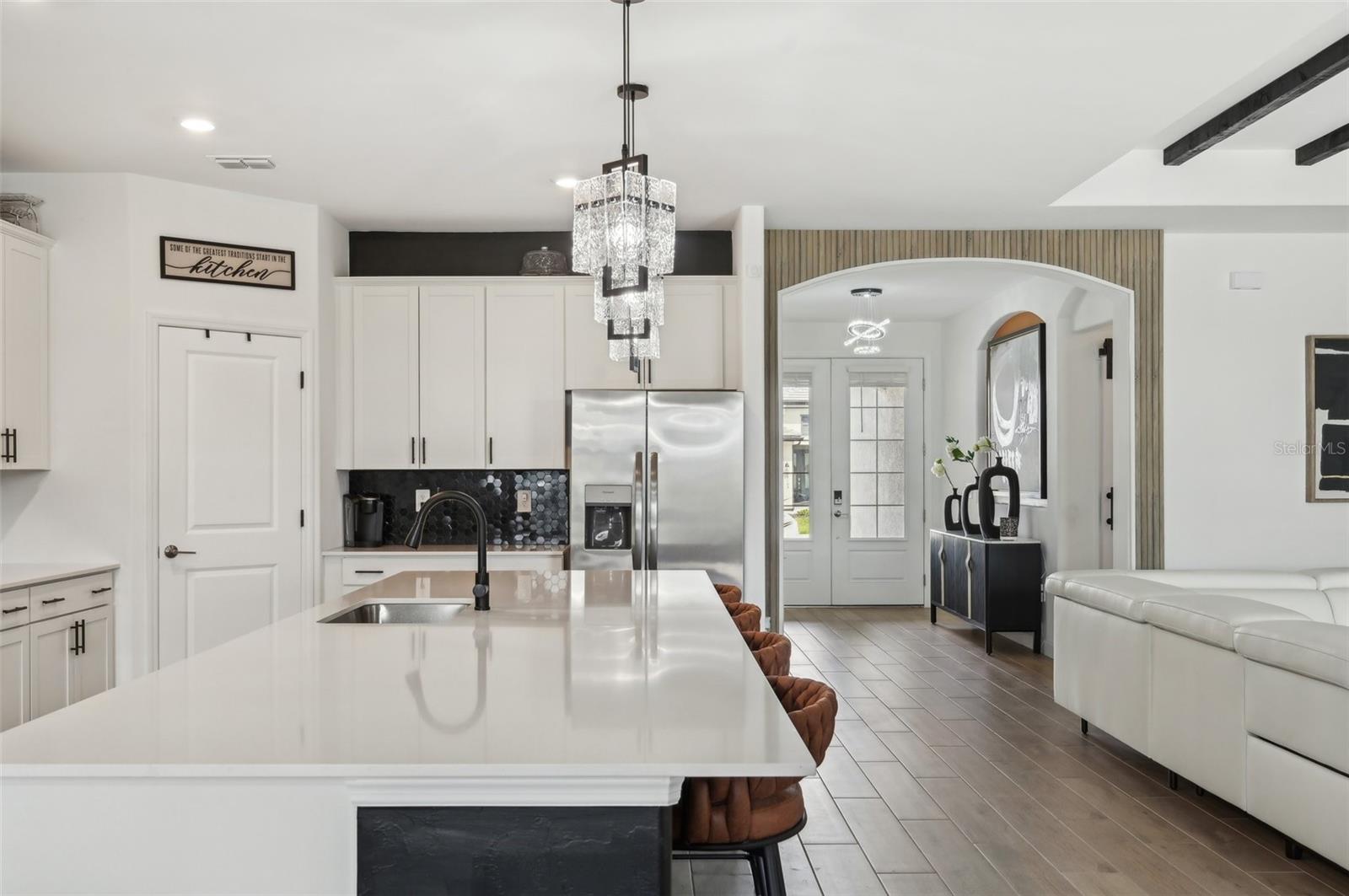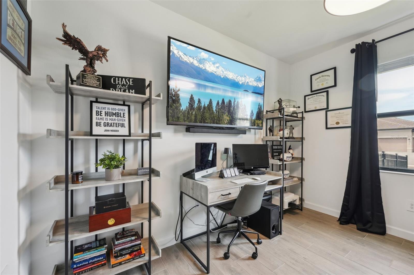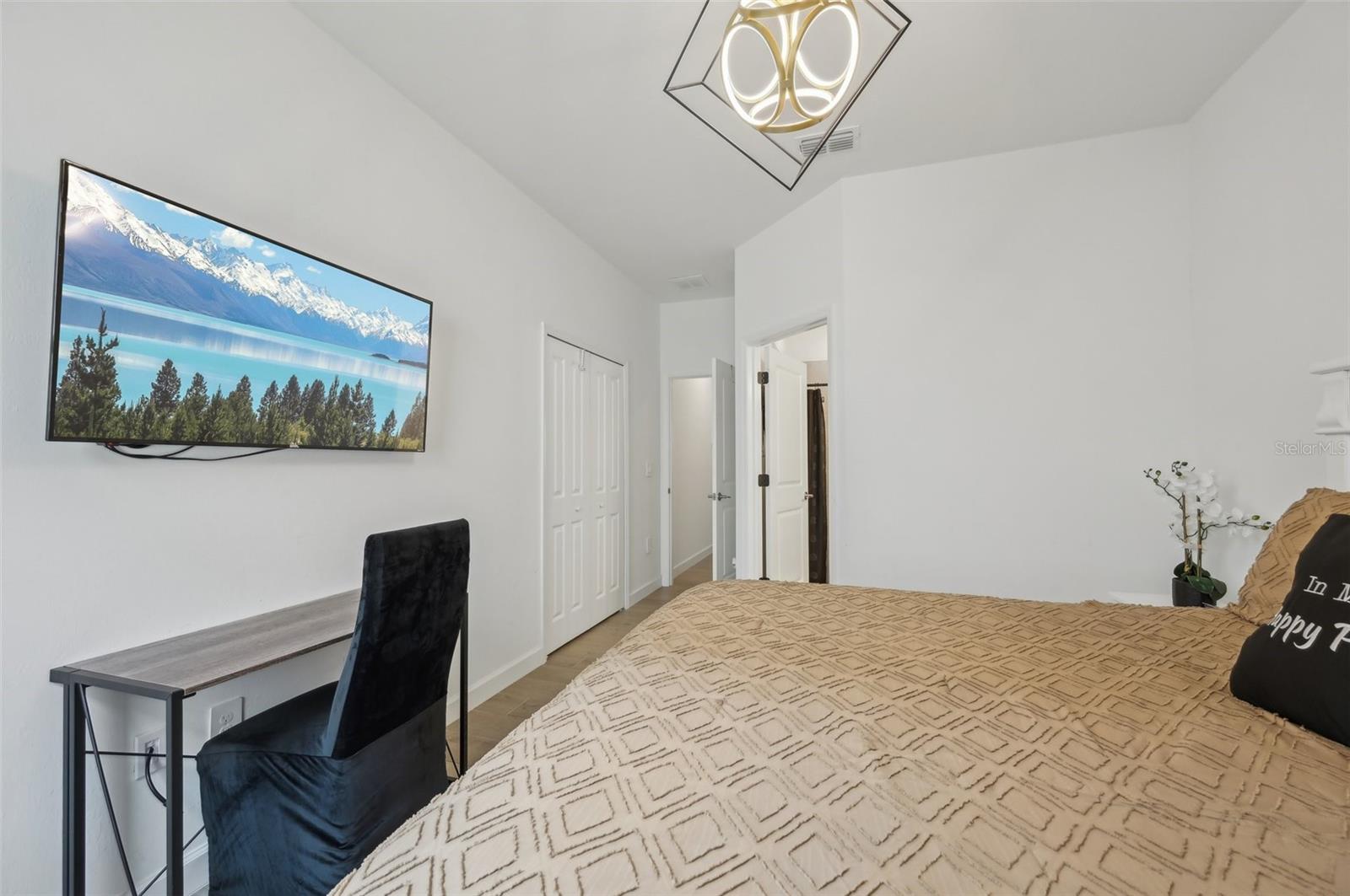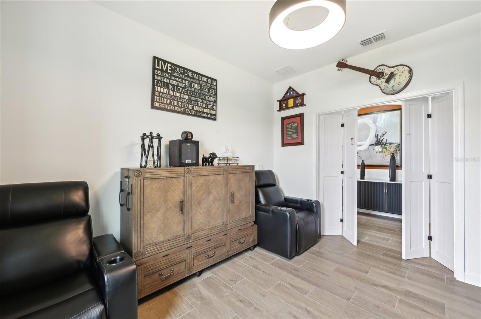 2024 Summerville Model | 3 Bed + Den | 3 Bath | 3-Car Garage | Pool & Spa | Oversized Lot. Beautifully upgraded and move-in ready, this newly built Summerville model in Lorraine Lakes at Lakewood Ranch is perfectly positioned on an oversized, fenced corner lot on a quiet cul-de-sac. This popular single-level floor plan features 3 bedrooms, 3 full baths, a den, and a 3-car garage, centered around a spacious open-concept great room, kitchen, and dining area—ideal for everyday living and entertaining. Upgrades include wood ceiling beams, a custom wood feature wall with a 100" electric fireplace, plank tile flooring throughout, barn doors on the den and laundry room, quartz countertops, tile backsplash, stainless steel appliances, single-bowl sink, touchless kitchen faucet, and designer hardware and lighting. The spacious primary suite offers serene water views, two custom built-in walk-in closets, and a spa-style bath with dual vanities and a large walk-in shower. Step outside to your private backyard oasis featuring a heated pool, spa, outdoor shower, covered lanai with seating and dining area, retractable awning, and an expanded paver patio beyond the screened enclosure—ideal for entertaining or relaxing. Full builder warranty through August 2025. Resort-style amenities at Lorraine Lakes include gated entry, lawn care, high-speed internet and cable, resort and lap pools, splash zone, clubhouse with tiki bar and restaurant, state-of-the-art fitness center, indoor basketball and volleyball courts, arcade, tennis and pickleball courts, putting green, and more. Located in Lakewood Ranch, a #1 multi-generational community in the U.S., you'll enjoy top-rated schools, shopping, dining, golf, parks, and events just minutes away. This home offers the perfect blend of luxury, convenience, and vibrant community living. Furniture package pricing available upon request. Outdoor tiki bar and drapery do not convey. Flexible closing date with option for short-term seller rent-back ideal for buyers desiring a summer move in date.