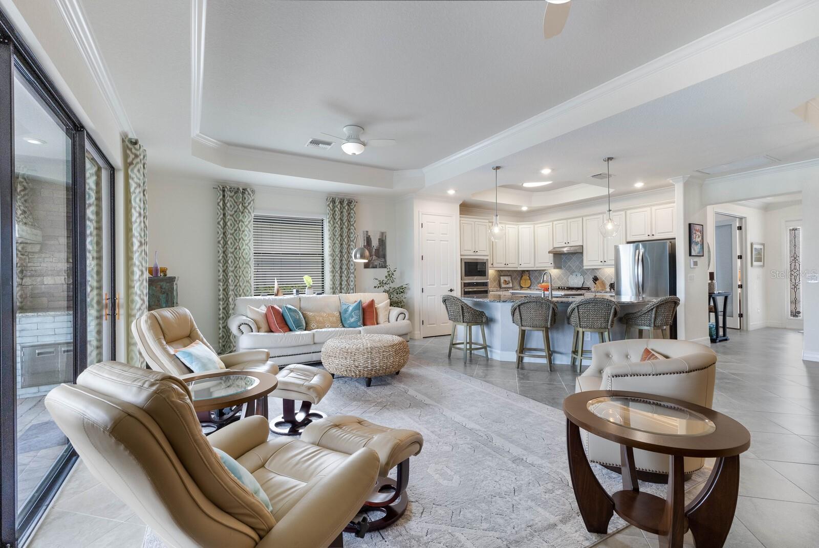 This stunning single-family pool home on a premium golf course lot offers luxurious Florida living at its finest and a golf membership at Lakewood National Golf Club. A beautifully updated two-bedroom, 2.5 bath, plus versatile den (that is used as a third bedroom) residence home, offers plenty of room for relaxation or productivity. Step inside to an open and airy floor plan with abundant natural light and gorgeous finishes throughout. You’ll love the upgraded elegant cabinetry, tile flooring and tray ceilings, all contributing to a luxurious feel. The chef-inspired kitchen is perfect for preparing meals, with a gas range, new Bosch dishwasher and new LG refrigerator, and ample counter space — ideal for hosting family and friends. After a fun-filled day, unwind in the sumptuous master suite, which features a spacious walk-in closet and a Roman soaking tub, offering the perfect retreat. The guest suite with a dedicated bath ensures privacy and comfort, and the den/study with double wooden doors provides a quiet space for guests or a home office. With one of the largest outdoor living spaces in all of Lakewood National, the lanai is a true highlight, offering a spacious area for both lounging and entertaining, complete with a custom, heated, saltwater pool and oversized hot tub, a beautifully tiled outdoor kitchen, access to a separate pool bath, surrounded by custom landscaping and lighting and a peaceful view of the 17th hole of the course. In Lakewood Ranch, ranked #1 in the U.S. among multigenerational, planned communities, Lakewood National Golf Club offers residents membership to the 36-hole course designed by Arnold Palmer Design Company. The Commander course is rated the #1 public course in Florida by Golf Advisor and selected #19 in the U.S. Lakewood National is a maintenance-free lifestyle with extraordinary amenities that also include zero-entry heated pool with cascading waterfall and lap lanes, poolside tiki bar, a 28,000-square-foot clubhouse with fine dining, casual outdoor dining and a large bar to socialize with neighbors, a fitness center with group classes, an on-site full-service spa, eight lighted Har-Tru tennis courts, bocce, pickleball and more. Lakewood National is home to the annual LECOM Suncoast Classic, a tournament on the Korn Ferry Tour every April. This community has it all. Easy access to Interstate 75, historic downtown Bradenton, Sarasota and Tampa, and convenient to world-class beaches, spectacular shopping, great restaurants and entertainment.