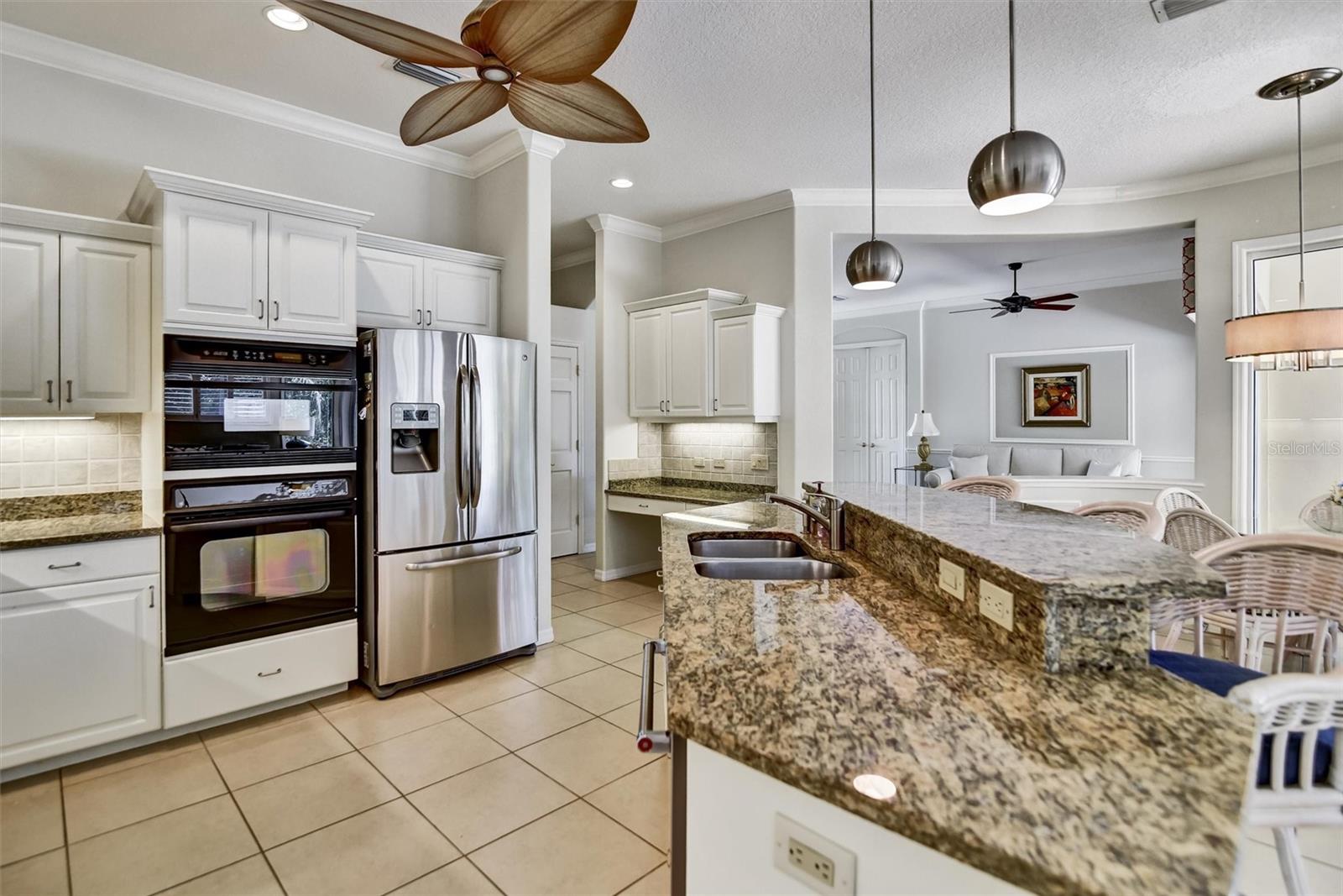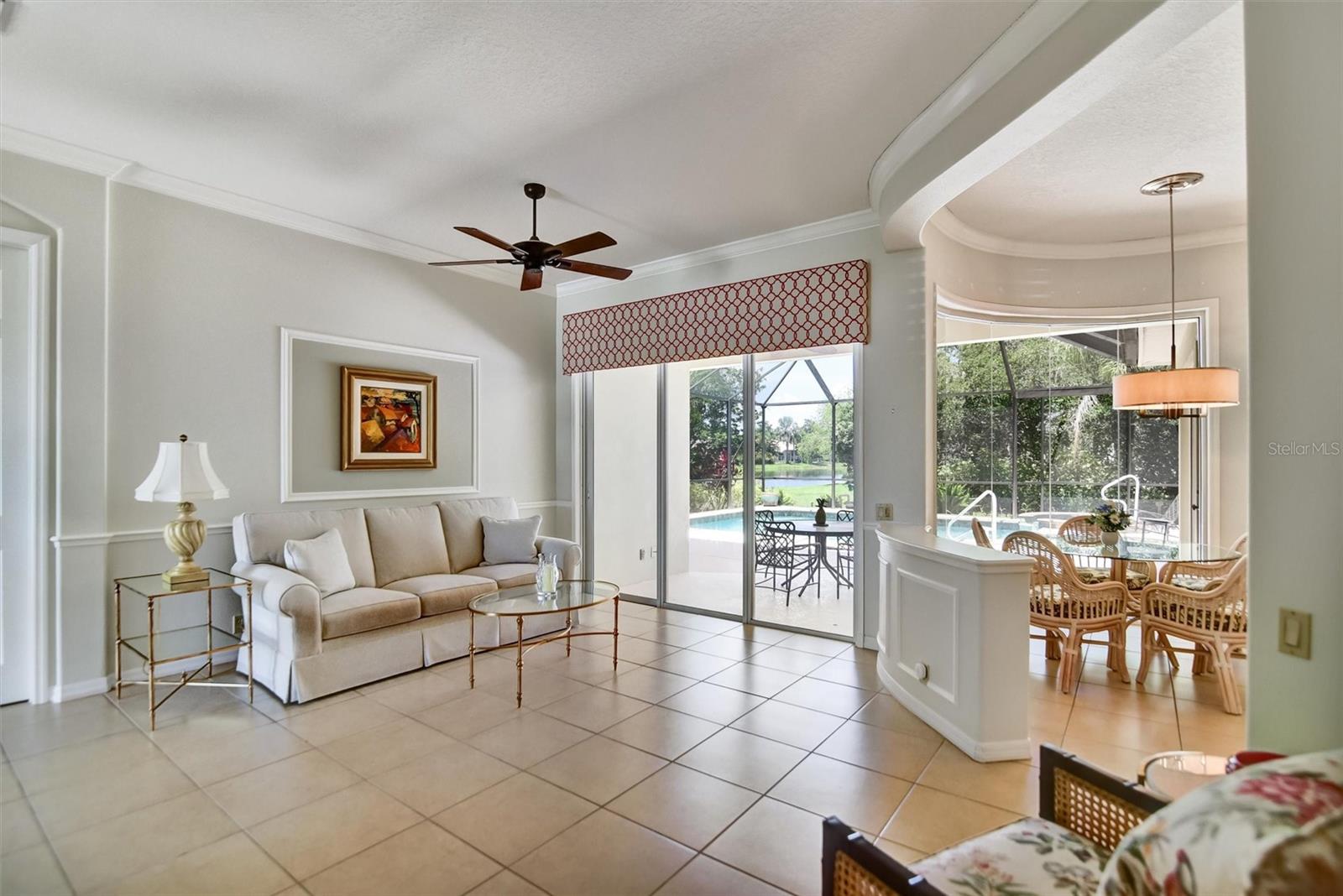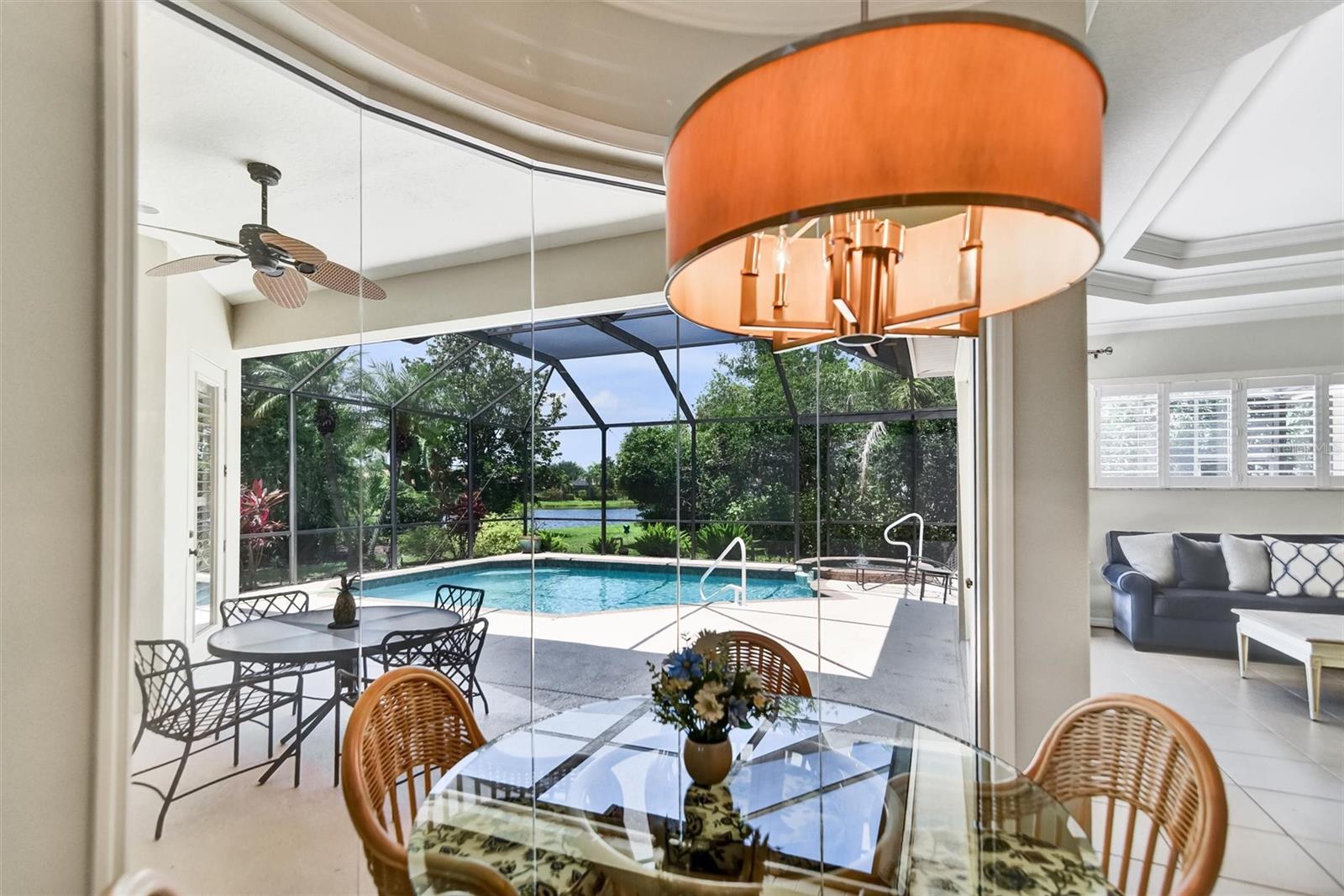 Discover luxury living within the Lakewood Ranch Country Club. This beautifully maintained three bedroom three bathroom home offers an unparalleled blend of elegance and comfort. The key features are open concept living area perfect for entertaining guest. The gourmet kitchen features granite countertops, built in oven, countertop gas stove, seating at kitchen island and kitchen desk. Luxury master suite with large walk in closet, tile floor and door to lanai. Master bath has double sinks with granite countertop, tub, walk in shower and make up station. Bonus feature is the versatile office/den or library, ideal for remote work, a personal study or a cozy reading retreat. Expansive windows showcasing breathtaking views for the beautiful lake preserve view. Enjoy relaxation and enjoyment in the outdoor living pool area with spa. Recent upgrades include new tile roof installed in 2023, new cooling and heating unit installed in 2022 for energy efficiency and comfort as well as attic enhancement in 2024 with new insulation and ductwork, improving climate control and energy savings.Optional membership to the Lakewood Ranch Country Club provides access to an exceptional Florida lifestyle, including two luxurious clubhouses, four golf courses, tennis courts, pickleball courts, fitness center, aquatic center, parks and recreational trails. Prime location conveniently near UTC Mall, fine dining restaurants, Lakewood Ranch Main Street, Waterside, Polo fields and the soon to be new location for Mote Marine Aquarium. Bonus you're a short drive from some of the world's top rated beaches Siesta Key, Lido Beach and Anna Marie Island.