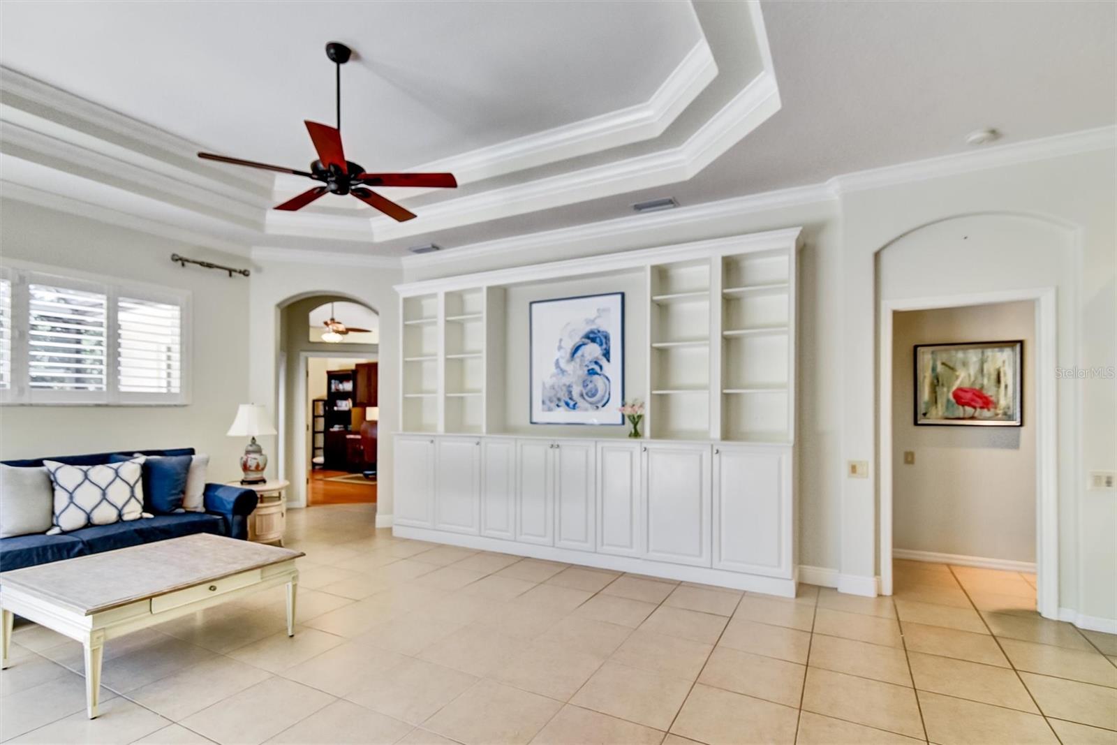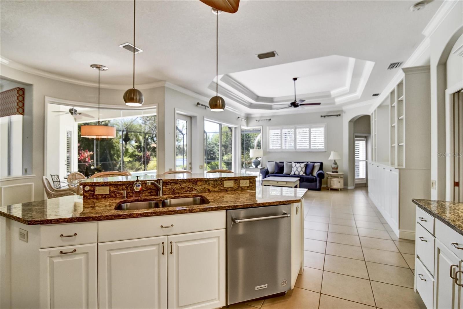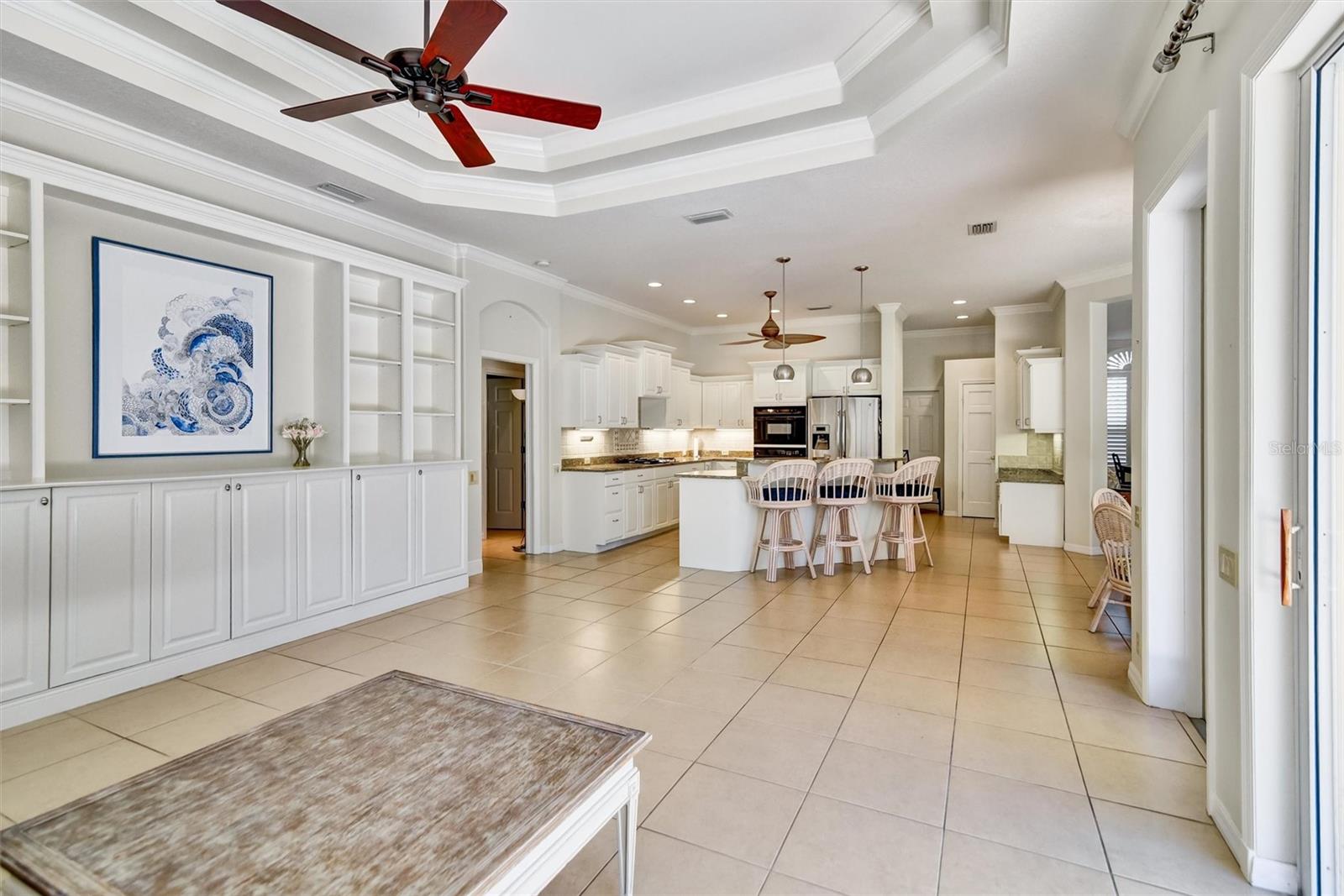 Discover luxury living within the Lakewood Ranch Country Club. This beautifully maintained three bedroom three bathroom home offers an unparalleled blend of elegance and comfort. The key features are open concept living area perfect for entertaining guest. The gourmet kitchen features granite countertops, built in oven, countertop gas stove, seating at kitchen island and kitchen desk. Luxury master suite with large walk in closet, tile floor and door to lanai. Master bath has double sinks with granite countertop, tub, walk in shower and make up station. Bonus feature is the versatile office/den or library, ideal for remote work, a personal study or a cozy reading retreat. Expansive windows showcasing breathtaking views for the beautiful lake preserve view. Enjoy relaxation and enjoyment in the outdoor living pool area with spa. Recent upgrades include new tile roof installed in 2023, new cooling and heating unit installed in 2022 for energy efficiency and comfort as well as attic enhancement in 2024 with new insulation and ductwork, improving climate control and energy savings.Optional membership to the Lakewood Ranch Country Club provides access to an exceptional Florida lifestyle, including two luxurious clubhouses, four golf courses, tennis courts, pickleball courts, fitness center, aquatic center, parks and recreational trails. Prime location conveniently near UTC Mall, fine dining restaurants, Lakewood Ranch Main Street, Waterside, Polo fields and the soon to be new location for Mote Marine Aquarium. Bonus you're a short drive from some of the world's top rated beaches Siesta Key, Lido Beach and Anna Marie Island.