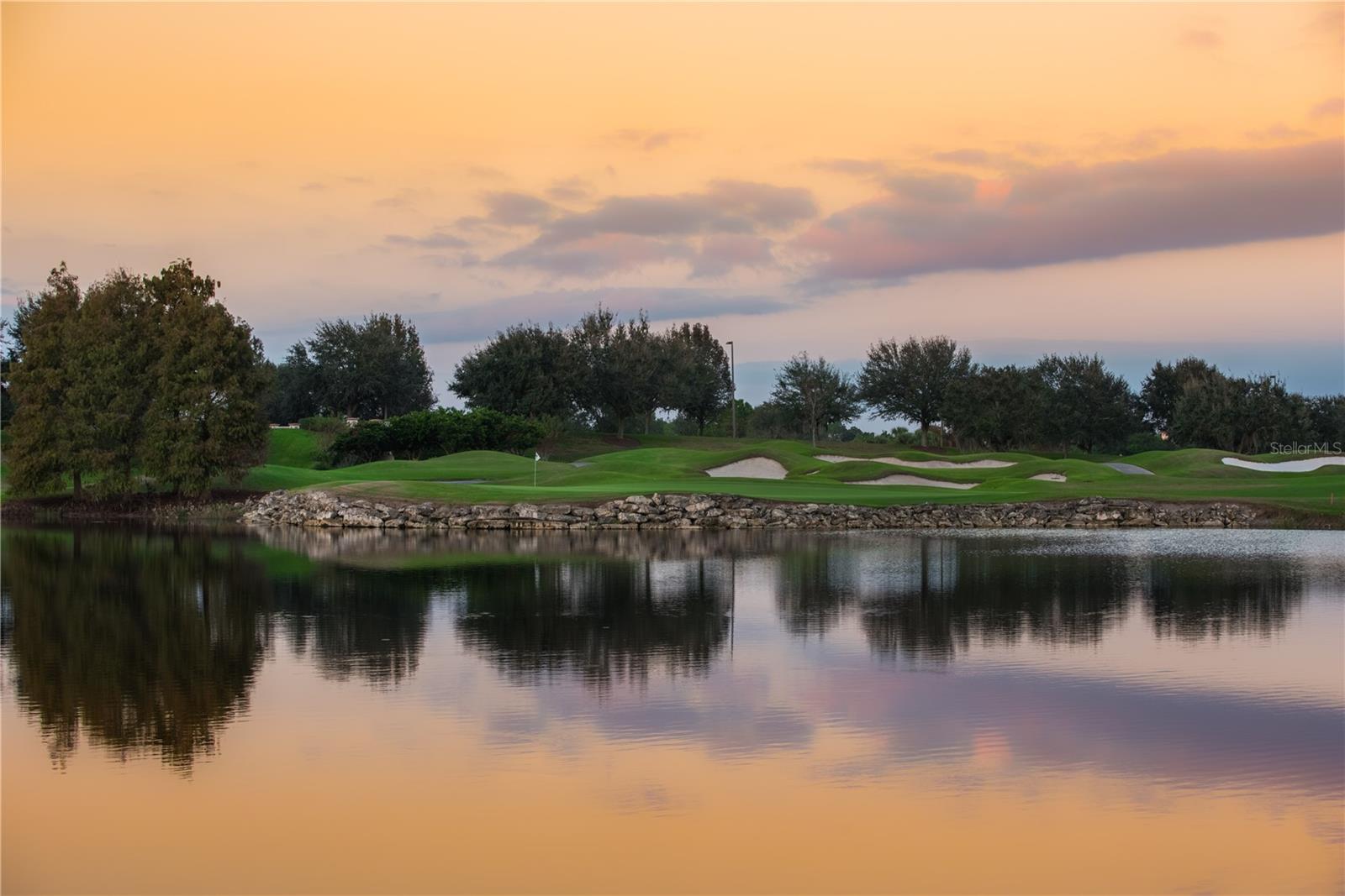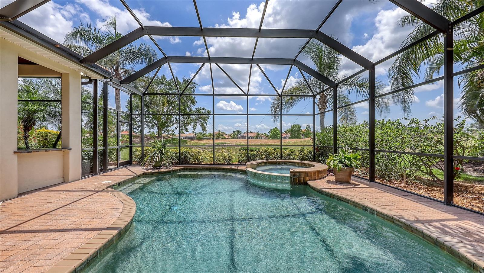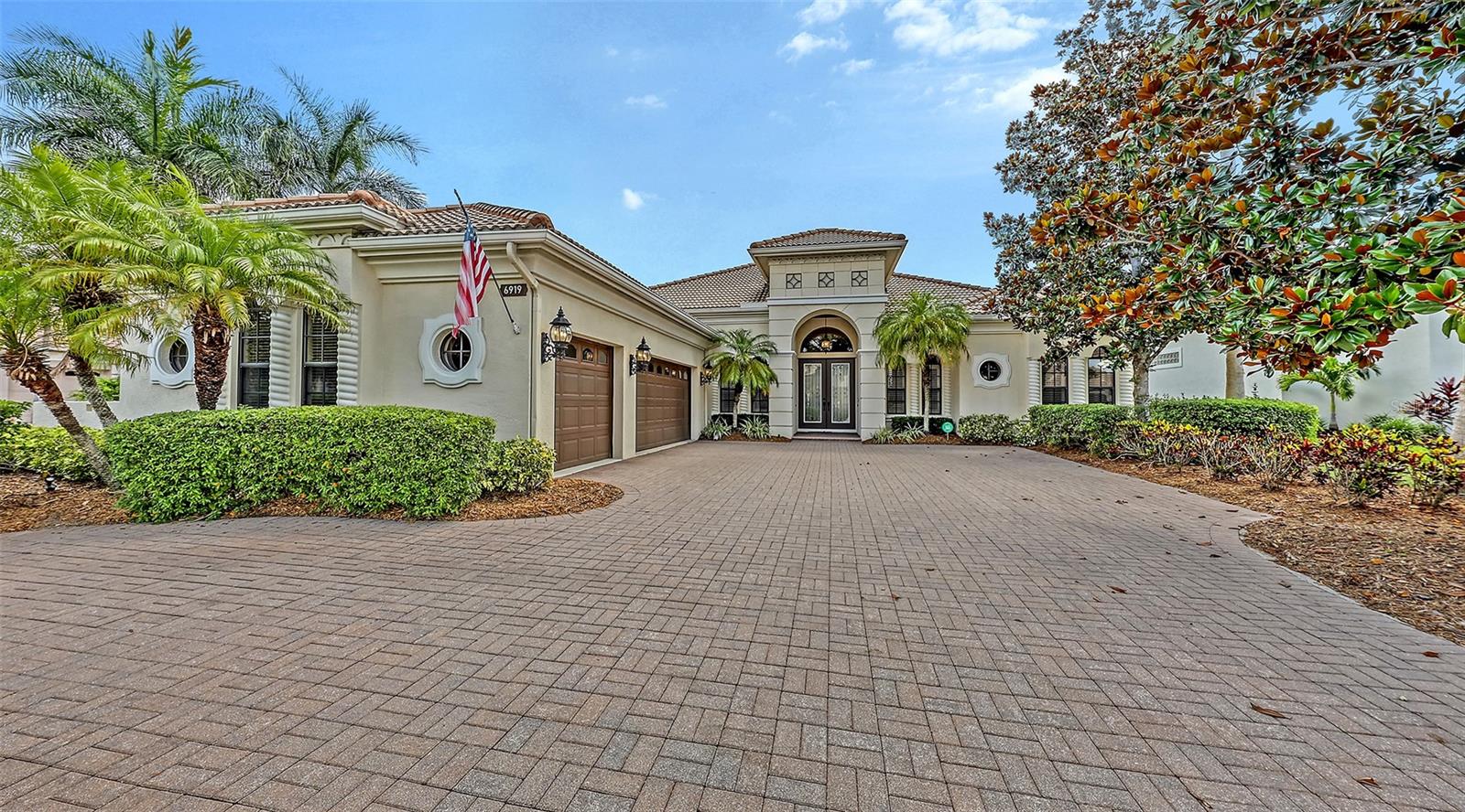 Arthur Rutenberg masterpiece – The St. Vincent II model – offers the best in Florida luxury living. Welcome to "The Dominion" in the gates of Lakewood Ranch Country Club.Perfectly situated on a premier homesite with breathtaking views of the golf course and glistening lakes, this "like new" 5 bedroom, 4 full bath, 2 office, is move in ready and even has a spacious upstairs bonus room, private guest suite, and covered balcony that overlooks the golf course and pool. This home provides the ideal blend of space, elegance, and function. The thoughtfully designed floor plan includes a newly updated chef’s kitchen with Quartz counters, high-end appliances, solid Wood Cabinetry & built-in pantry, and an open layout with beautiful outdoor views that flow through the Gathering Room. Architectural details abound: the stately exterior beckons you inside to take in the intricate crown molding, high tray ceilings and built-in features. The executive office located in the front of the home is spacious with built-in work space, cabinetry and is full of natural light. The secondary office/flex room (with full closet) is located at the rear of the home overlooking the golf course, and sliding glass doors open onto the pool deck. High decorative ceilings throughout create a sense of timeless sophistication. The primary suite is conveniently located on the main floor in its own private wing. With high ceilings, access to the pool and lanai area, this suite will accommodate large estate furnishing in style. Dual walk-in closets, and a luxurious and recently updated bath with a large walk-in shower, garden tub, and private water closet with bidet, round out the primary suite. Step outside to your private saltwater pool and spa oasis, surrounded by lovely paving brick, and unwind under the covered lanai or in the cabana with a fully equipped modern summer kitchen—perfectly designed for year-round entertaining. The circular drive, side-entry garage, and dual 220V EV charging stations add modern convenience as well as curb appeal. RECENT UPDATES: travertine-style porcelain tile, luxury vinyl plank flooring, new countertops throughout (except office), newer appliances including dishwasher, refrigerator, oven, cooktop, and dual-function microwave, front loading washer&dryer, All 3 AC units replaced with high-efficiency filter systems, and a 24KW natural gas Generac Whole House Generator keeps everything running during power outages, updated security system, recently refinished wood ceilings and freshly painted cabinetry (excluding office), along with an upgraded outdoor grill and hood. 2025 Roof inspection report available. Windows are rated for 130mph wind loads. Resort-style living with an optional membership to The Lakewood Ranch Country Club—offering 4 championship golf courses, 3 luxurious clubhouses, 18 Har-Tru tennis courts, pickleball, state-of-the-art fitness and aquatic centers, walking trails, and many social events. With no waitlist and optional membership, the choice is yours. Situated near high-rated schools, premier medical facilities, parks, shopping, dining, and just minutes to Gulf Coast beaches, this property represents a lifestyle of luxury. Schedule your private showing today! **THIS PROPERTY QUALIFIES FOR A 1% LENDER INCENTIVE IF USING PREFERRED LENDER. INQUIRE FOR MORE DETAILS.** PROPERTY IS UNDER VIDEO & AUDIO SURVEILLANCE!