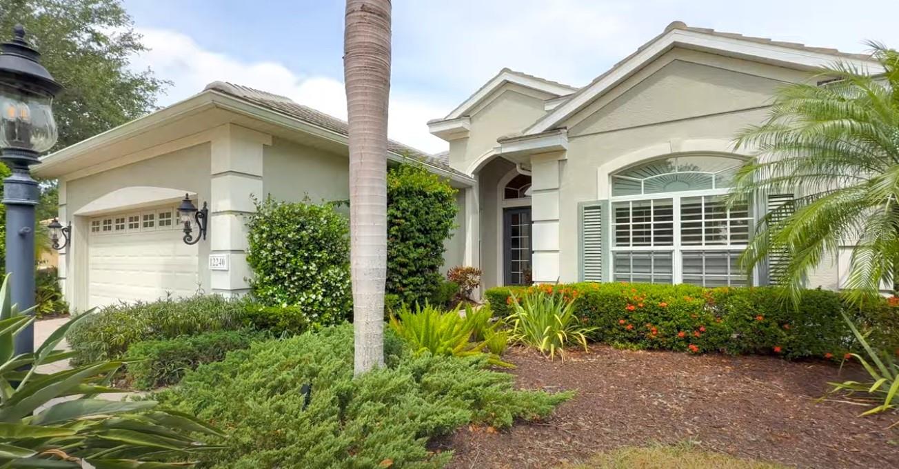 Experience luxury, privacy, and sophistication in this stunning maintenance-free home, perfectly positioned on the prime 4th hole, par 3 golf course view, pool home with serene lake and nature views. Located in the distinguished gated enclave of Lakewood Ranch Golf & Country Club, this 3-bedroom + den, 2.5-bath residence offers over 2,580 square feet of refined single-level living—designed for effortless entertaining and relaxed elegance. Step inside to a bright, open-concept layout with soaring ceilings, crown molding, columns and walls of glass framing the breathtaking outdoor scenery. French doors entrance to your custom office/den with built-ins. Spacious dining area with trey ceilings. The chef’s updated kitchen features granite counters, a quartz sink, wood cabinetry, premium stainless appliances, double oven, a wine bar alcove, breakfast bar and a cozy breakfast nook with panoramic views of the golf course. Disappearing hurricane glass pocket sliders extend the living space to your private outdoor oasis: screened-in covered patio, a gas heated pool with paved deck, a built-in outdoor kitchen, half bath off the lanai—all perfect for enjoying Florida sunsets in style. With a split bedroom layout, the owner’s retreat is set privately behind double doors, has access to the pool area through a French door and offers two custom closets. The primary bathroom has a spa-like bath with soaking tub, walk-in shower, and dual vanities. Two additional guest suites are located on a separate wing for ultimate privacy, ideal for overnight visitors. Available furnished. Hurricane shutters and oversized two-car garage with extra storage. In an active lifestyle community, residents enjoy access to a private community pool with social events year-round, and optional membership to the Lakewood Ranch Golf & Country Club—offering championship golf, tennis, pickleball, a junior Olympic pool, fitness center, dining, and more. Pet-friendly. Top-rated school district. This is more than a home—it’s a lifestyle in America’s #1 master-planned community, close to Waterside Place, UTC Mall, fine dining, and world-class Gulf beaches.