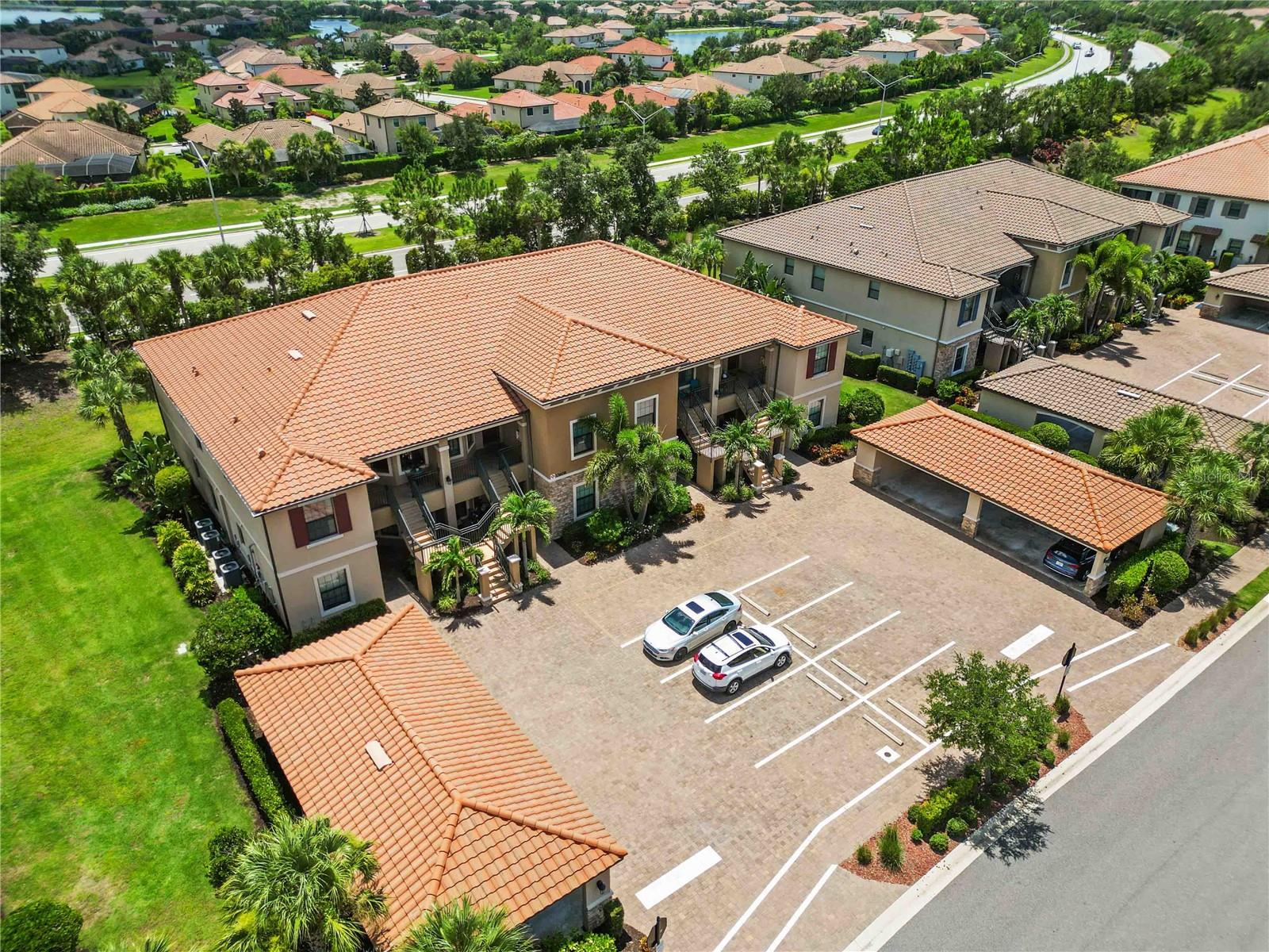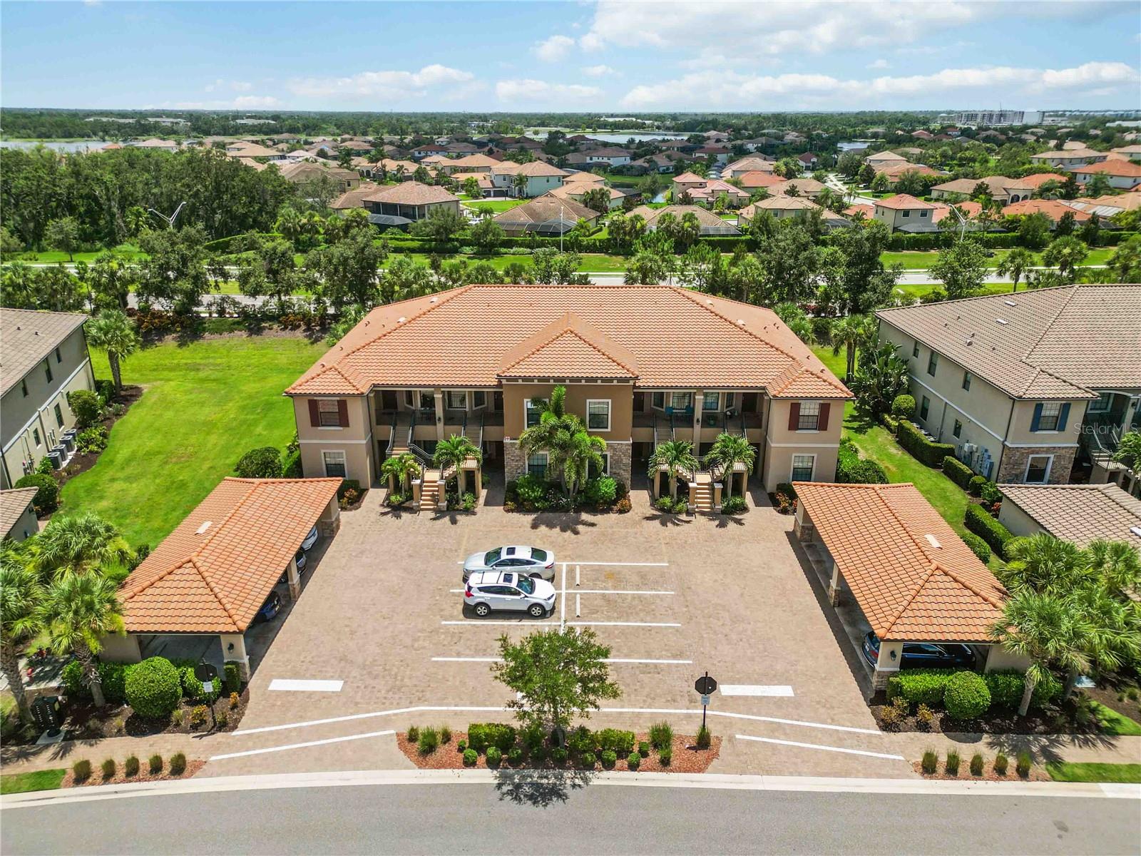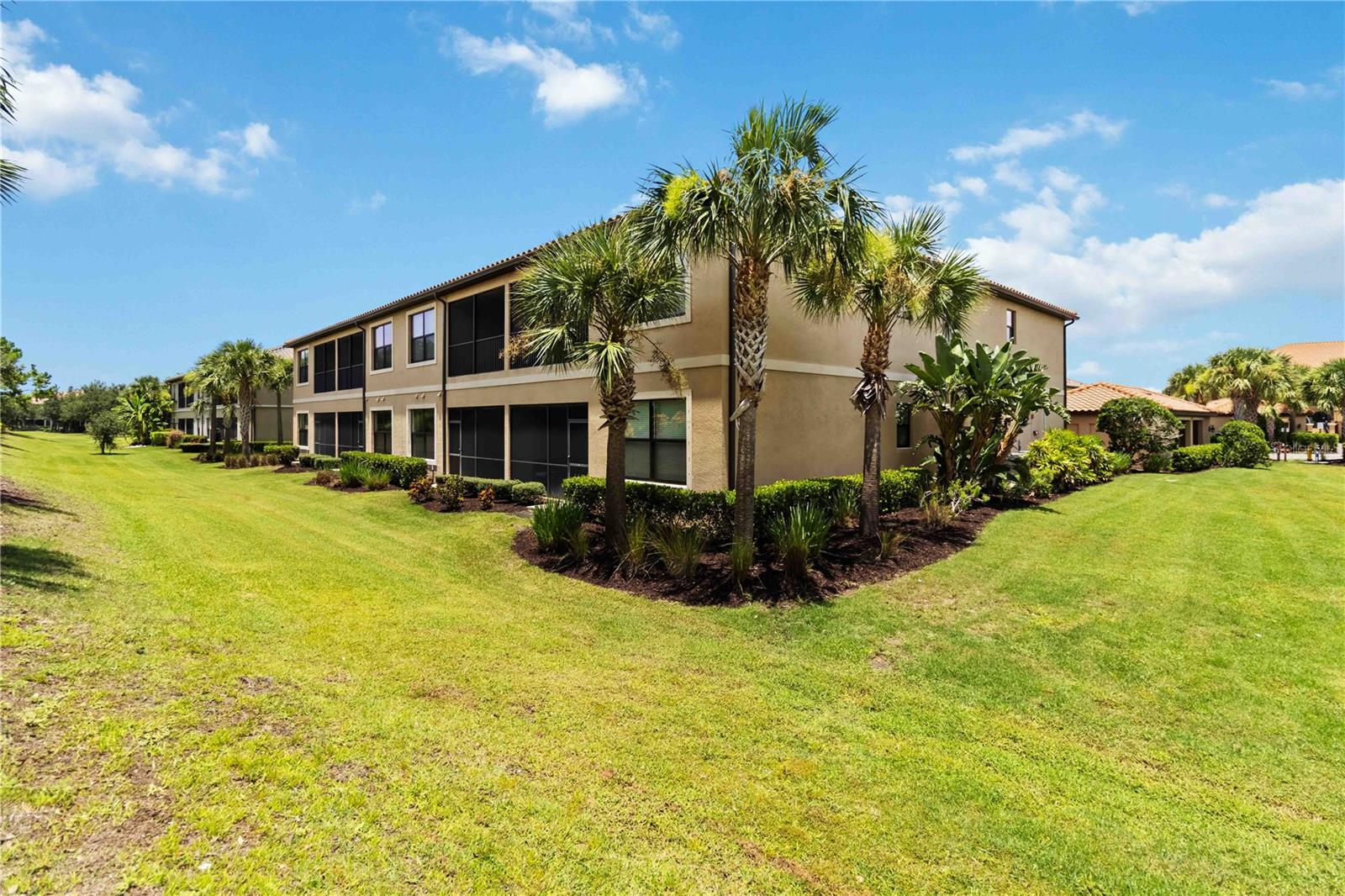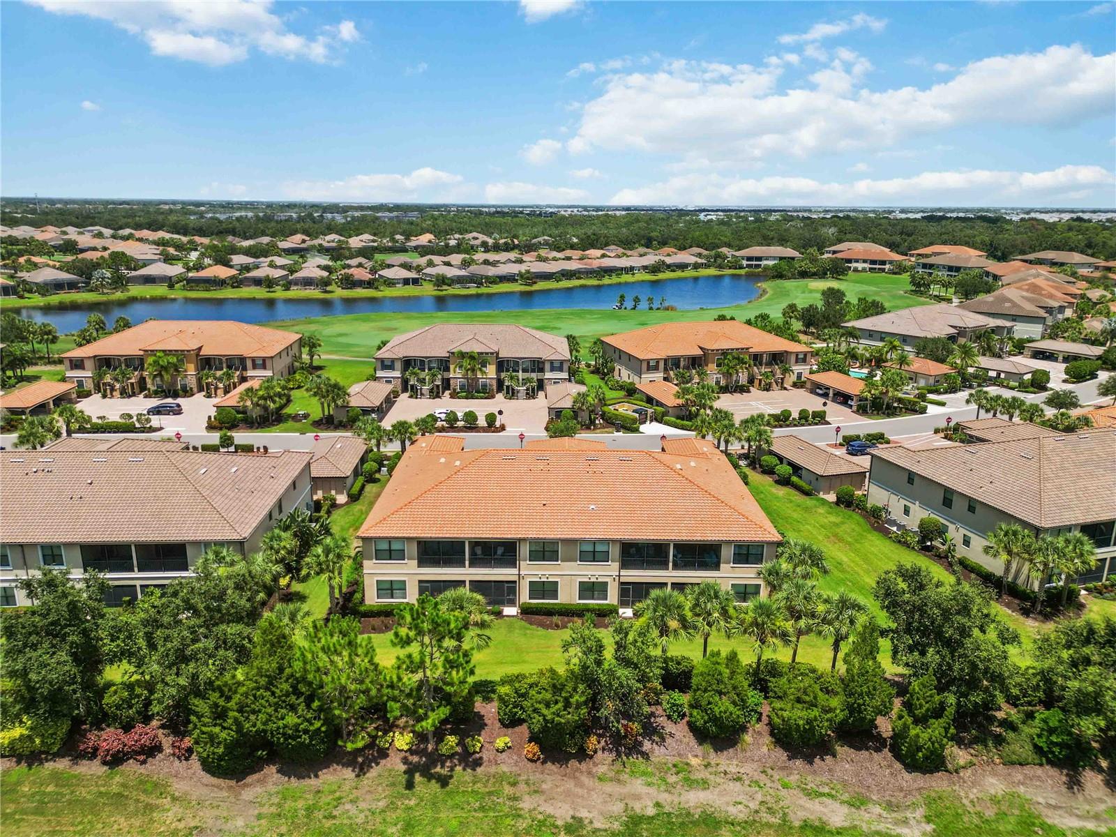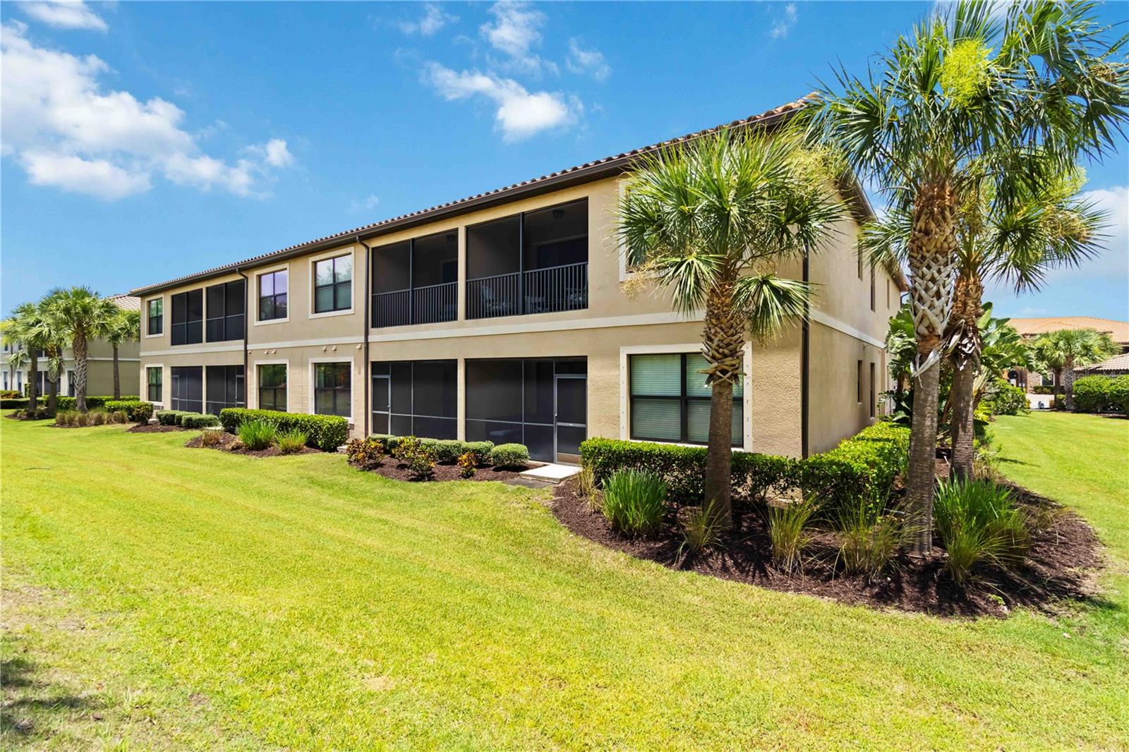 Non-Golf End Unit in Bacciano at Esplanade, Lakewood Ranch! As a bonus, 65" Samsung TV will convey in Primary suite! Here’s your chance to own one of the most desirable units in the gorgeous Esplanade community—a rare, second-floor END UNIT condo in the NON-GOLF section of Bacciano, meaning no golf fees, just full access to RESORT-STYLE amenities! This spacious 2-bedroom + bonus room home is flooded with natural light and boasts an open split floor plan enhanced by TRAY ceilings, CROWN molding, wainscoting, and in-wall pest control. The BONUS ROOM is perfect for a home office, den, or even a third bedroom with minor modifications. The heart of the home is the gourmet kitchen, featuring 42” solid wood cabinetry, granite countertops, stainless steel appliances, a walk-in pantry, large breakfast bar, and a cozy dinette. Entertain in the generous great room or dine in style in the adjacent flexible living space. The primary suite offers two walk-in closets and a luxurious ensuite bath with dual sinks and a large walk-in shower. The second bedroom includes a large built-in closet and easy access to a second full bath with a tub/shower combo. A separate indoor laundry room adds extra convenience. As a Bacciano resident, you’ll enjoy exclusive access to a private pool and BBQ area. But that’s just the beginning—Esplanade’s long list of amenities includes the Bahama Tiki Bar, culinary center, resort pools and spa, fitness center, sports courts, dog park, clubhouse, and a full-time social director planning events year-round. Don’t wait—units like this in Esplanade rarely come to market. Call now to schedule your private tour and start living the Florida resort lifestyle without the golf fees!