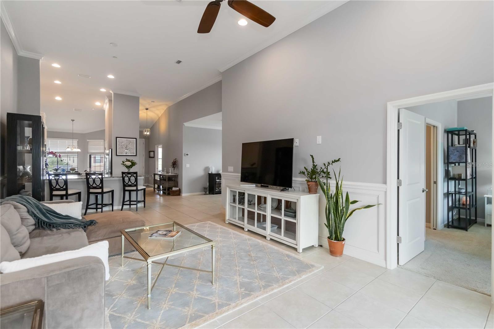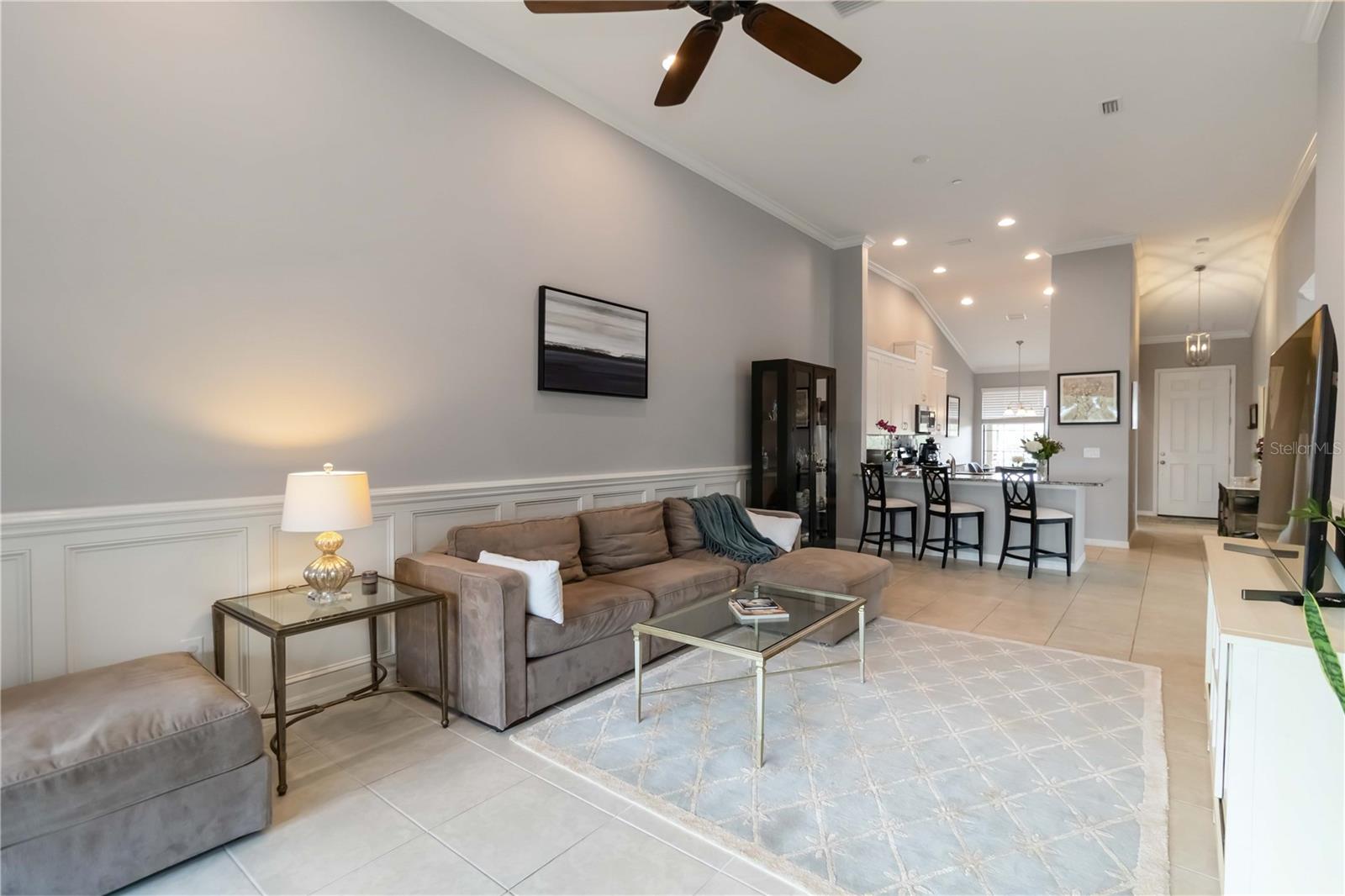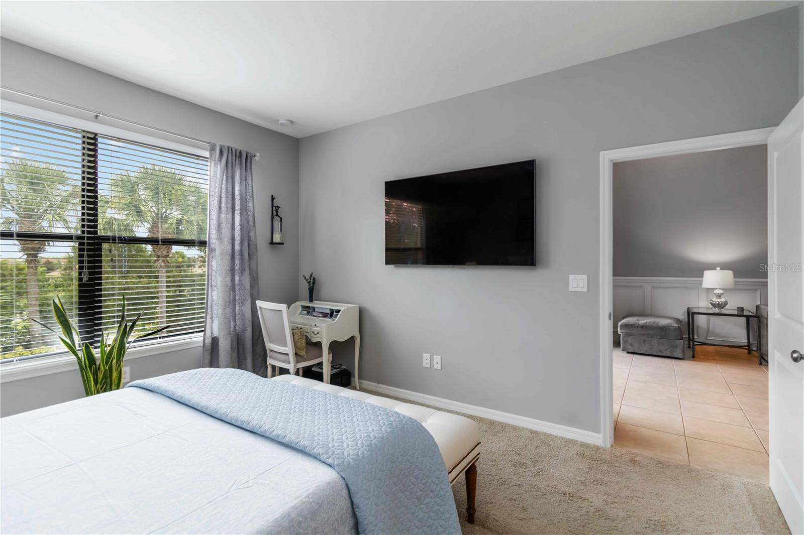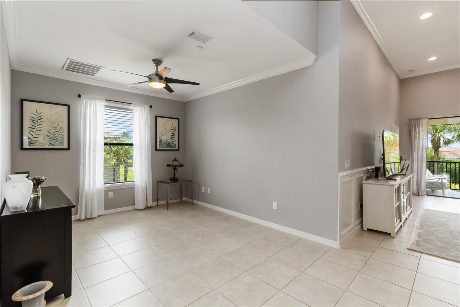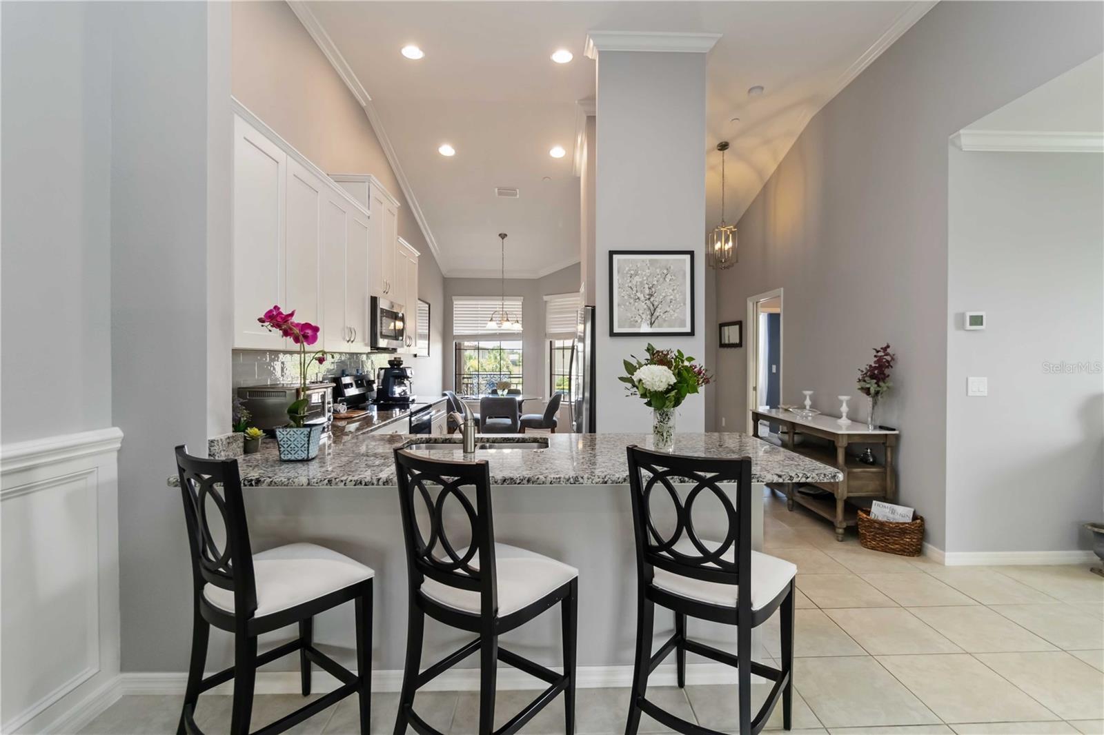 Non-Golf End Unit in Bacciano at Esplanade, Lakewood Ranch! As a bonus, 65" Samsung TV will convey in Primary suite! Here’s your chance to own one of the most desirable units in the gorgeous Esplanade community—a rare, second-floor END UNIT condo in the NON-GOLF section of Bacciano, meaning no golf fees, just full access to RESORT-STYLE amenities! This spacious 2-bedroom + bonus room home is flooded with natural light and boasts an open split floor plan enhanced by TRAY ceilings, CROWN molding, wainscoting, and in-wall pest control. The BONUS ROOM is perfect for a home office, den, or even a third bedroom with minor modifications. The heart of the home is the gourmet kitchen, featuring 42” solid wood cabinetry, granite countertops, stainless steel appliances, a walk-in pantry, large breakfast bar, and a cozy dinette. Entertain in the generous great room or dine in style in the adjacent flexible living space. The primary suite offers two walk-in closets and a luxurious ensuite bath with dual sinks and a large walk-in shower. The second bedroom includes a large built-in closet and easy access to a second full bath with a tub/shower combo. A separate indoor laundry room adds extra convenience. As a Bacciano resident, you’ll enjoy exclusive access to a private pool and BBQ area. But that’s just the beginning—Esplanade’s long list of amenities includes the Bahama Tiki Bar, culinary center, resort pools and spa, fitness center, sports courts, dog park, clubhouse, and a full-time social director planning events year-round. Don’t wait—units like this in Esplanade rarely come to market. Call now to schedule your private tour and start living the Florida resort lifestyle without the golf fees!
