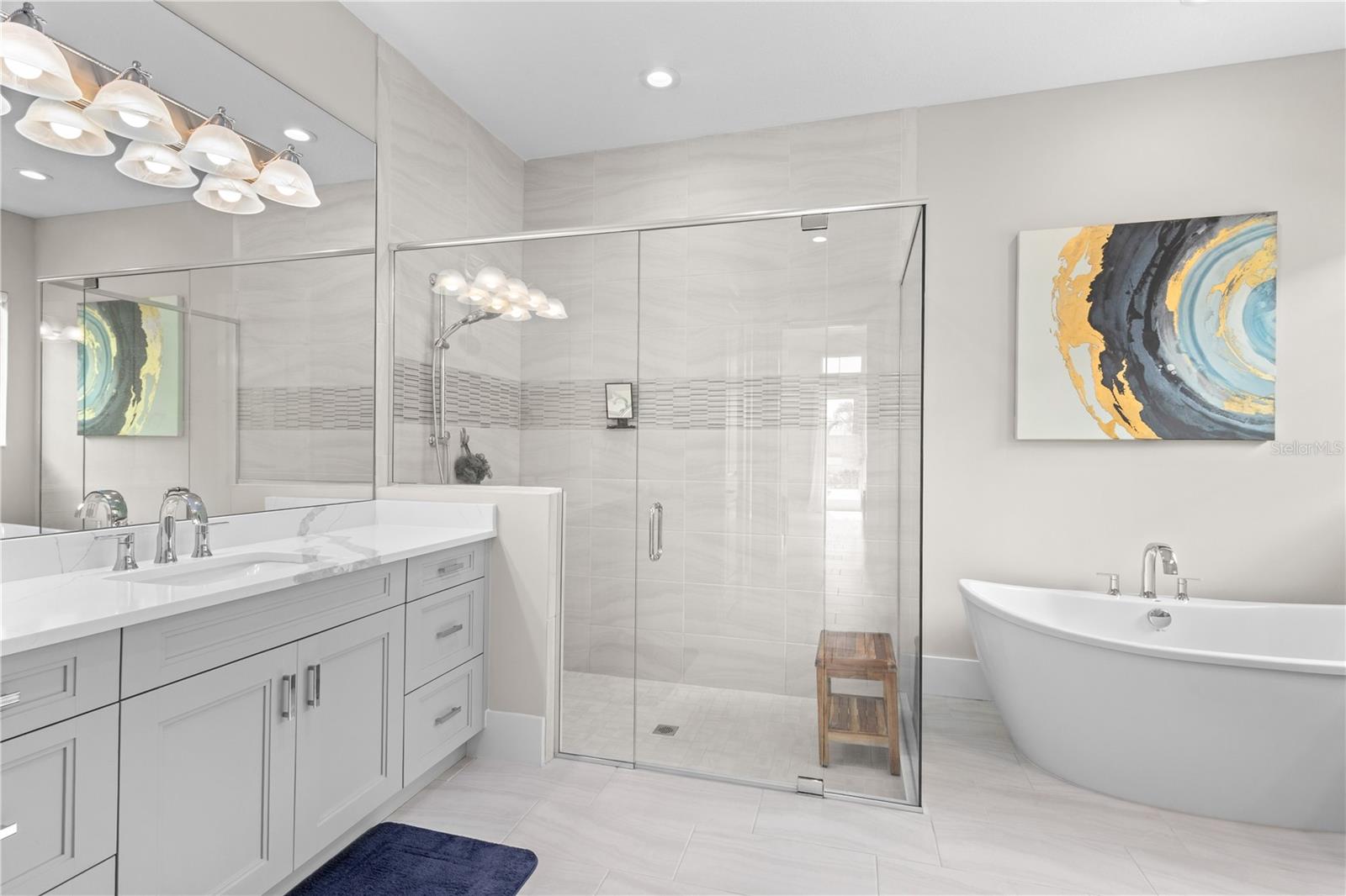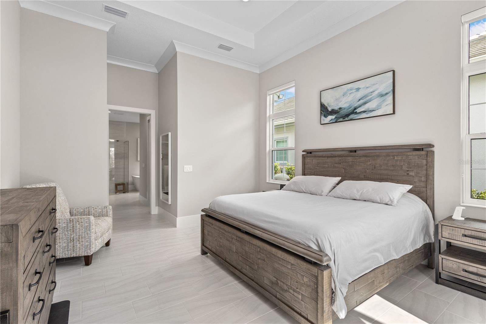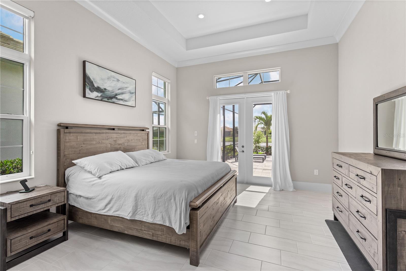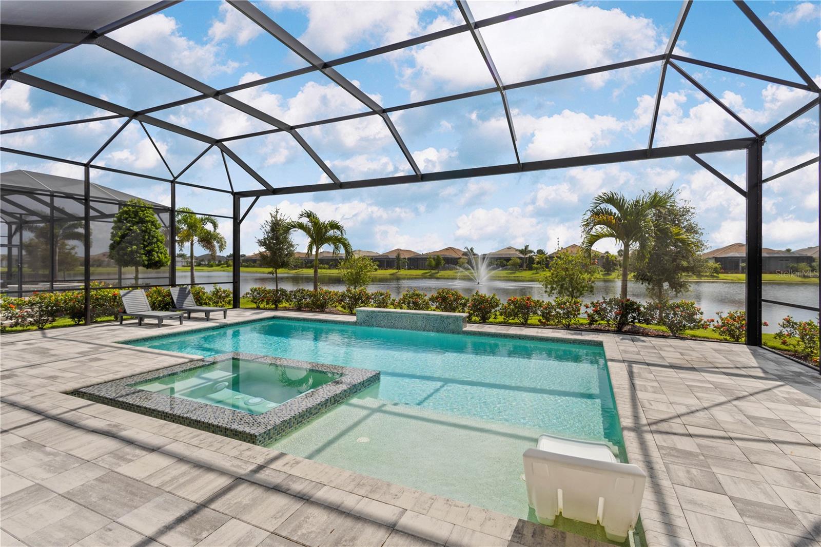 Nestled behind the gates of The Lake Club, this barely-lived-in 2023 built lakefront home is the pinnacle of luxury Florida living. Featuring three bedrooms, three-and-a-half bathrooms and a dedicated home office, this contemporary home was designed with function and beauty in mind. Over 2,600 square feet feel even more expansive with soaring ceilings, crown molding and architectural tray ceilings accentuating nearly every room. The open living space is anchored by the Chef’s kitchen including; Custom Shaker-style cabinetry, oversized quartz island with bar seating for three and built-in, top-of-the-line stainless steel appliances. Seamless indoor-outdoor living is achieved with pocketing, impact-rated sliding doors connecting to an additional 600 square feet of covered lanai and the extended pool area beyond. Encapsulating true Florida living, a custom pool features a sunken, 360-degree edge spa, sun shelf and waterfall feature. After a day in the sun, retreat to an owner’s suite designed for relaxation with freestanding tub, separate walk-in shower, dual, split vanities and two customized walk-in closets. A spacious three-car garage with additional custom storage and epoxy floors provides all the room you need for your toys. The Lake Club redefines luxury living in Lakewood Ranch, presenting residents a 22,000 square foot Grande Clubhouse with a full-service restaurant and bar, two resort-style pools, fully equipped fitness center, spa services and concierge amenities. Residents also have access to several tennis and pickle ball courts, basketball court, two dog parks and social events curated by a dedicated Lifestyle Director. Within America’s top-rated multigenerational community, you’re just minutes from upscale dining and shopping at Waterside Place and University Town Center, world-renowned golf and convenient to Downtown Sarasota, Gulf Beaches and cultural venues like the Van Wezel Performing Arts Hall.
