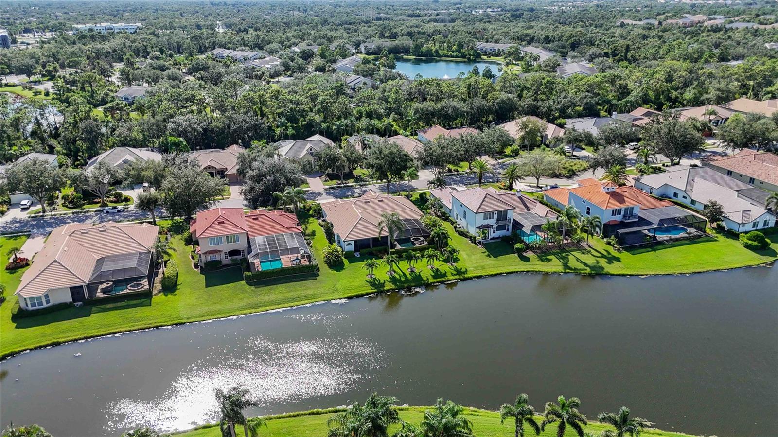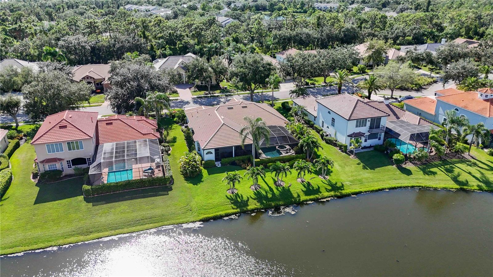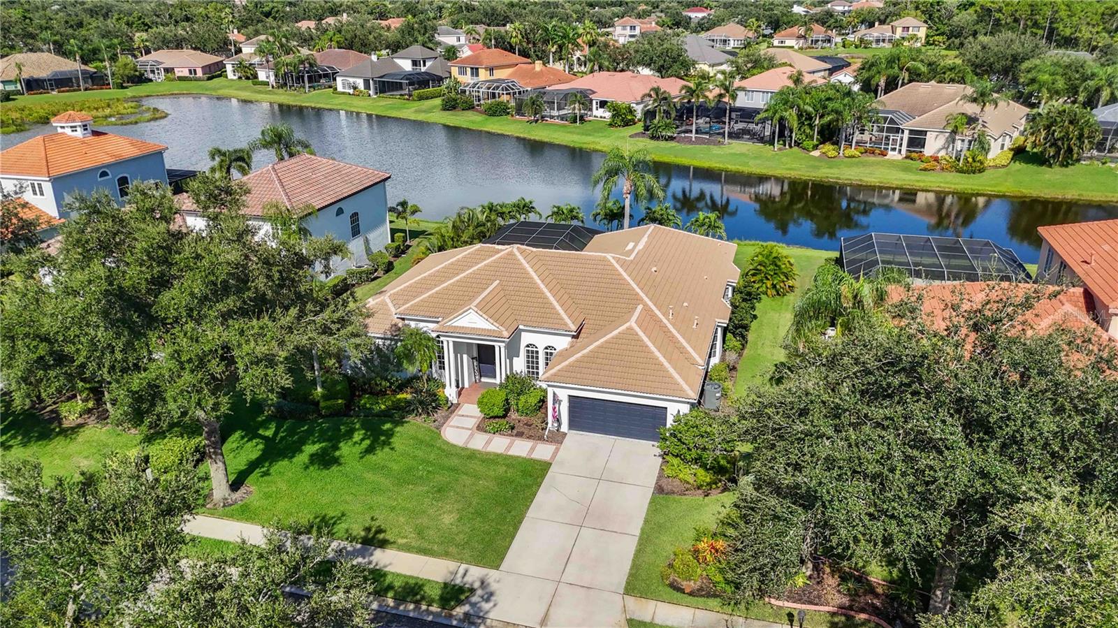 MAJOR PRICE IMPROVEMENT!!! LOWERED $25,000...A MUST SEE! Luxury Lakefront Living Awaits with your dream home in The Sanctuary at River Club, a rare lakefront oasis located in one of Lakewood Ranch’s most desirable communities.Experience the pinnacle of luxury lakefront living at 7555 Tori Way in The Sanctuary at River Club—one of Lakewood Ranch’s most sought-after communities. This stunning custom-built home is your rare opportunity to own a private oasis on a premium 12,981 sq ft lakefront lot. With 3 spacious bedrooms, 3 full bathrooms, and a versatile flex room (perfect as a den or 4th bedroom), this 2,729 sq ft residence offers an elegant blend of style, comfort, and modern convenience. From the moment you arrive, the freshly painted exterior (2023) and striking curb appeal make a powerful first impression. Inside, you'll be captivated by rich porcelain faux wood plank tile floors, elegant crown molding, plantation shutters (2021), and designer lighting throughout. The open-concept living area boasts a custom vaulted ceiling and cozy fireplace, all perfectly positioned to showcase panoramic lake views and your private pool. At the heart of the home, the gourmet kitchen will thrill any chef—with quartz countertops, a full quartz backsplash, a 6-burner gas cooktop with custom pot filler, stainless steel appliances, and a walk-in pantry. Retreat to the luxurious primary suite featuring a floating jetted soaking tub, oversized dual-entry walk-in shower, dual vanities with quartz counters, remote-control blackout blinds, and two walk-in closets with custom shelving. The thoughtful split floor plan ensures privacy for family and guests alike, with a second en-suite bedroom and a third bedroom conveniently located near a full hallway bath. Step outside to your own personal resort: a heated pool (new heater 2025), relaxing spa, and two covered seating areas where you can entertain or unwind while taking in breathtaking lake views and Florida wildlife. This meticulously maintained home also features top-tier upgrades: a Trane 15 SEER AC (2022), Honeywell gas water heater (2020), washer and dryer (2021), and an oversized two-car garage with built-in cabinetry and epoxy flooring (2021). Best of all, enjoy low HOA fees and NO CDD fees, a rare find in such a prestigious neighborhood. Located minutes from top-rated schools, upscale shopping, dining, the River Club Golf Course, and with easy access to I-75, this home offers the perfect balance of luxury, location, and lifestyle. Don’t miss your chance to own one of Lakewood Ranch’s finest lakefront homes—schedule your private tour today and make 7555 Tori Way your new address in paradise!