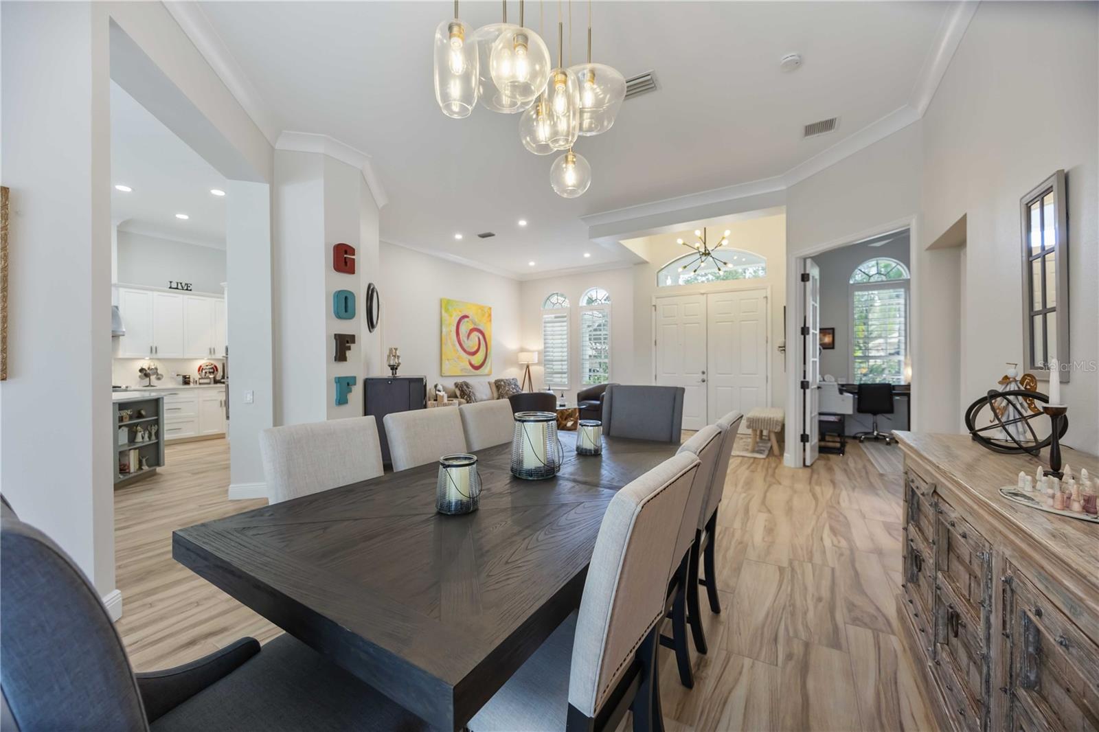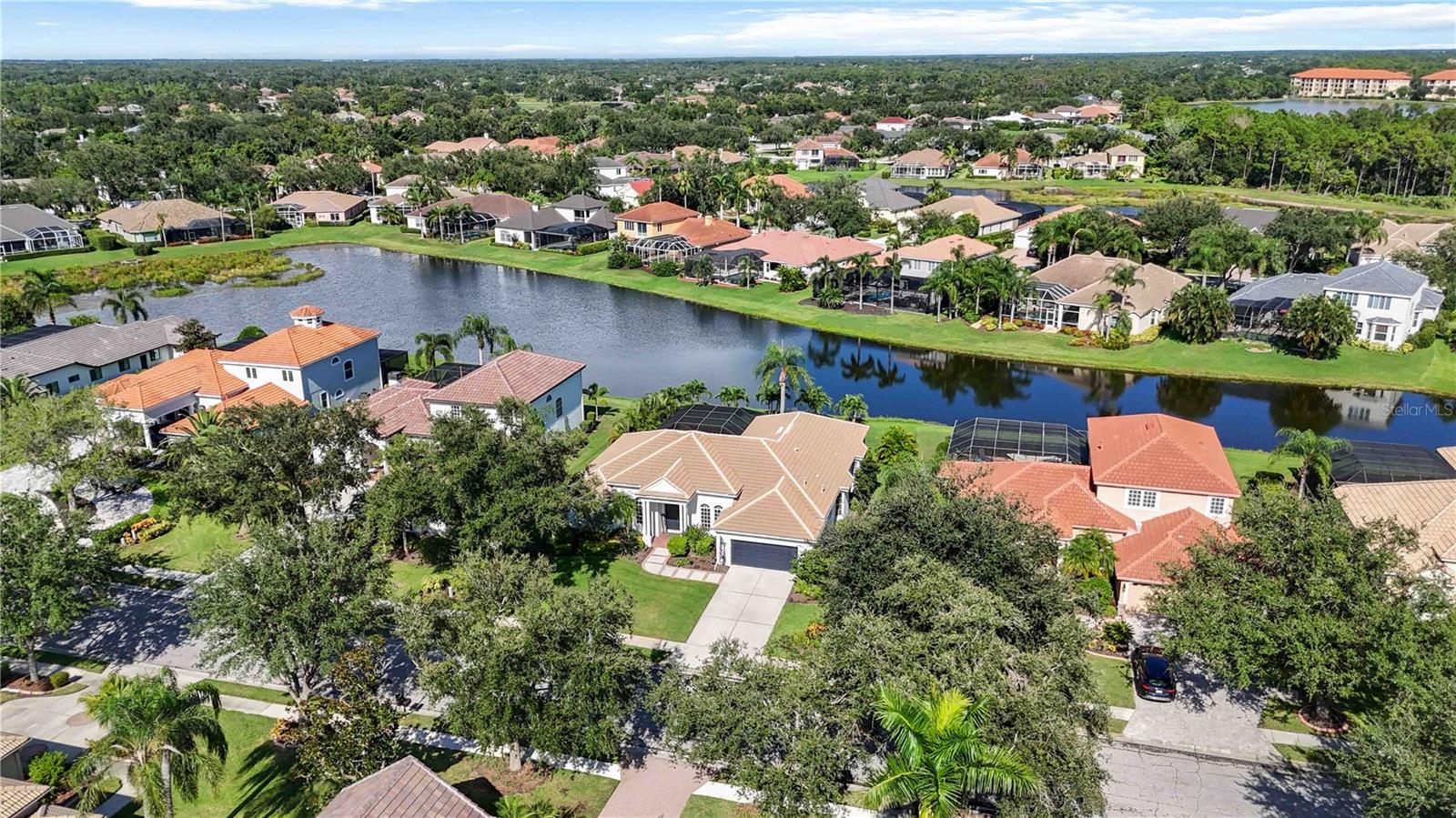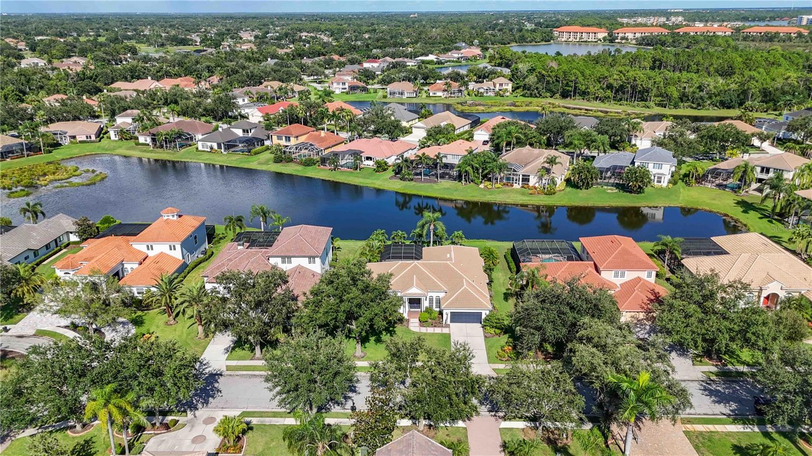 MAJOR PRICE IMPROVEMENT!!! LOWERED $25,000...A MUST SEE! Luxury Lakefront Living Awaits with your dream home in The Sanctuary at River Club, a rare lakefront oasis located in one of Lakewood Ranch’s most desirable communities.Experience the pinnacle of luxury lakefront living at 7555 Tori Way in The Sanctuary at River Club—one of Lakewood Ranch’s most sought-after communities. This stunning custom-built home is your rare opportunity to own a private oasis on a premium 12,981 sq ft lakefront lot. With 3 spacious bedrooms, 3 full bathrooms, and a versatile flex room (perfect as a den or 4th bedroom), this 2,729 sq ft residence offers an elegant blend of style, comfort, and modern convenience. From the moment you arrive, the freshly painted exterior (2023) and striking curb appeal make a powerful first impression. Inside, you'll be captivated by rich porcelain faux wood plank tile floors, elegant crown molding, plantation shutters (2021), and designer lighting throughout. The open-concept living area boasts a custom vaulted ceiling and cozy fireplace, all perfectly positioned to showcase panoramic lake views and your private pool. At the heart of the home, the gourmet kitchen will thrill any chef—with quartz countertops, a full quartz backsplash, a 6-burner gas cooktop with custom pot filler, stainless steel appliances, and a walk-in pantry. Retreat to the luxurious primary suite featuring a floating jetted soaking tub, oversized dual-entry walk-in shower, dual vanities with quartz counters, remote-control blackout blinds, and two walk-in closets with custom shelving. The thoughtful split floor plan ensures privacy for family and guests alike, with a second en-suite bedroom and a third bedroom conveniently located near a full hallway bath. Step outside to your own personal resort: a heated pool (new heater 2025), relaxing spa, and two covered seating areas where you can entertain or unwind while taking in breathtaking lake views and Florida wildlife. This meticulously maintained home also features top-tier upgrades: a Trane 15 SEER AC (2022), Honeywell gas water heater (2020), washer and dryer (2021), and an oversized two-car garage with built-in cabinetry and epoxy flooring (2021). Best of all, enjoy low HOA fees and NO CDD fees, a rare find in such a prestigious neighborhood. Located minutes from top-rated schools, upscale shopping, dining, the River Club Golf Course, and with easy access to I-75, this home offers the perfect balance of luxury, location, and lifestyle. Don’t miss your chance to own one of Lakewood Ranch’s finest lakefront homes—schedule your private tour today and make 7555 Tori Way your new address in paradise!