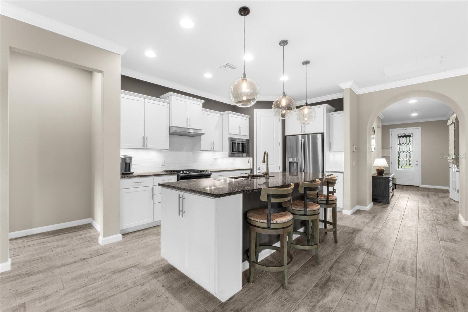 RESORT-STYLE LIVING AWAITS—LUXURIOUS SUMMERWOOD MODEL IN DEL WEBB. Welcome to the pinnacle of Southwest Florida living in this meticulously upgraded Summerwood Model, ideally situated in the highly sought-after Del Webb 55+ community of Lakewood Ranch. Offering the perfect balance of sophistication, comfort, and functionality, this home embodies resort-style living at its finest. Built in 2016, this 1,851 sq ft residence showcases an open, light-filled floor plan with 2 bedrooms 2 bathrooms, a versatile den, and expansive indoor/outdoor living space. From the moment you step inside, the home’s airy design and thoughtful details create a sense of casual elegance. With striking curb appeal, a beautifully landscaped exterior with natural stone accents, a decorative glass entry door, and a 19’X24’ screened lanai set the stage for the refined living within. The heart of the home, the gourmet kitchen is designed for both style and convenience, featuring an expansive counter-height island with pendant lighting and end cabinets, granite countertops and 36” light-toned cabinetry with under cabinet lighting, KitchenAid stainless steel appliances, including a gas range, soft-close drawers and a walk-in pantry for ample storage. Seamlessly connected to the dining area and great room, this layout is an entertainer’s dream. The zero-corner sliding glass doors open wide to your private outdoor oasis, creating a perfect indoor/outdoor flow. Elegant finishes throughout the home include wood-like ceramic plank flooring in main living areas and den, plush carpeting in bedrooms, plantation shutters, ceiling fans, crown molding, and a whole-home generator for peace of mind. Your private owner’s suite is a serene retreat with a tray ceiling, spacious walk-in closet, and a spa-inspired ensuite featuring dual vanities, oversized walk-in shower with handrails, and thoughtful design for comfort and convenience. The guest bedroom offers privacy and comfort, while the enclosed den with French doors provides flexibility—perfect for a home office, gym, hobby space, or reading nook. Step outside to your 19’X24’ screened lanai with decorative lighting and plenty of room to entertain or relax. Surrounded by a tranquil, private setting, this outdoor retreat is for enjoying Florida evenings with friends and family. This is more than just a home---it’s a lifestyle. Don’t miss your opportunity to own this exceptional Summerwood Model in Del Webb Lakewood Ranch. Schedule your private tour today and start living the resort-style life you deserve.