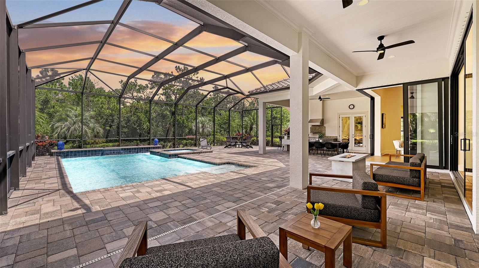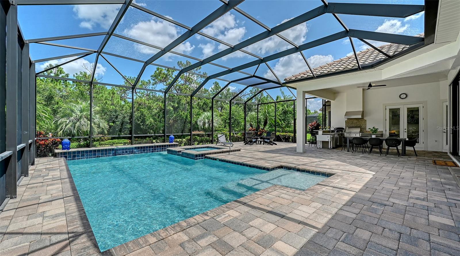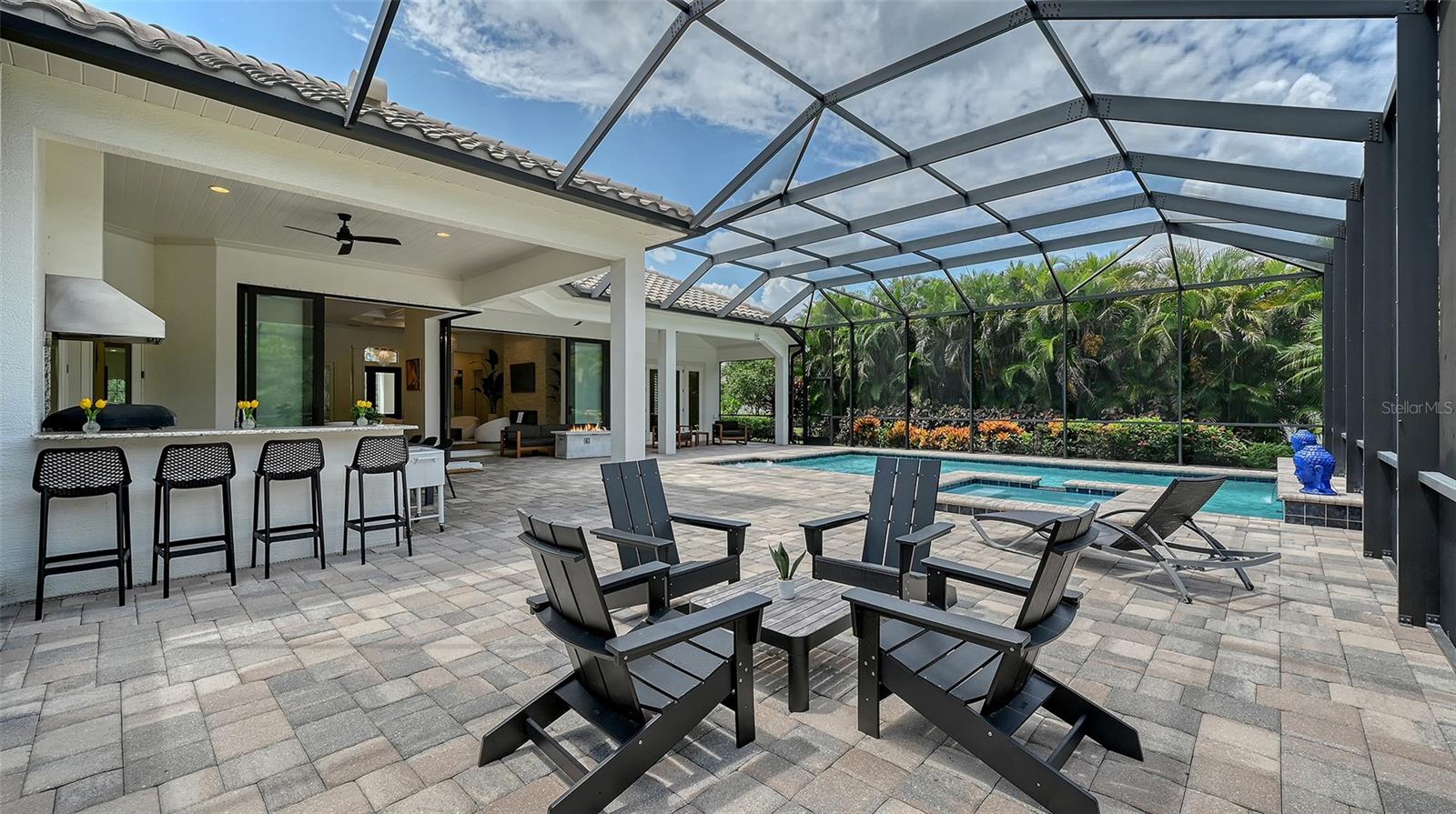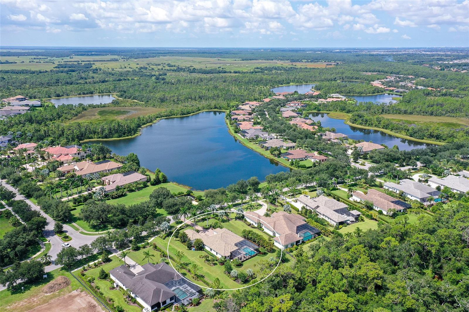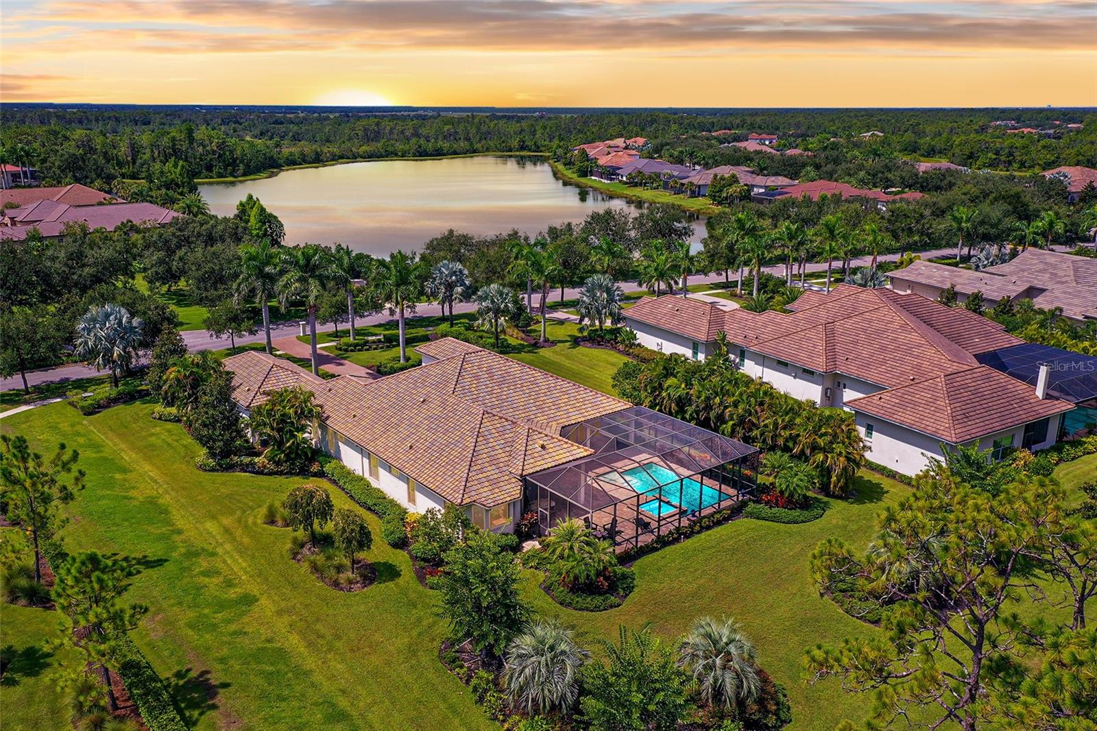 Set on a unique one-acre homesite in The Concession, 8361 Lindrick Lane captures the essence of refined Florida living. With tranquil lakefront sunsets at the front and a private preserve sanctuary at the rear, the orientation affords an unparalleled sense of serenity and seclusion. Its exceptional depth further distinguishes the property, offering the rare versatility to expand the residence or design a bespoke casita for your guests. The generous open plan blends elegance and comfort, showcasing 12-foot ceilings, wide-plank engineered flooring, and a striking stone feature wall with fireplace—elevating the home’s timeless sophistication. Designed for both daily living and memorable entertaining, the home offers three bedrooms, three full baths, a custom office filled with natural light, and a versatile bonus/media room. The chef’s kitchen is a centerpiece, featuring an impressive quartz island, natural gas cooking, built-in appliances, and seamless flow into the great room. Expansive pocketing sliders and a dramatic disappearing corner of glass open the interiors to the lanai, blurring the lines between indoor comfort and outdoor entertaining. The sweeping lanai serves as a private oasis, with a heated pool and spa, a fully equipped outdoor kitchen, multiple dining and lounge areas, and space for a firepit beneath the stars. The primary suite is a luxurious retreat with French doors to the pool terrace, oversized walk-in closets, and a spa-inspired bath. A three-car garage and thoughtful finishes throughout further enhance this exceptional property. Constructed in 2015 and located outside of a high-risk flood zone, this residence offers both elegance and peace of mind. Renowned for its championship golf (available through optional membership), the Concession has hosted prestigious PGA Tour events including the 2021 World Golf Championships and the 2023 World Champions Cup, complemented by celebrated wine-focused dining and serene natural beauty. Ideally located in Lakewood Ranch, near luxury shopping, fine dining, and Sarasota’s finest Gulf Coast beaches, this residence offers the perfect blend of exclusivity and connection.