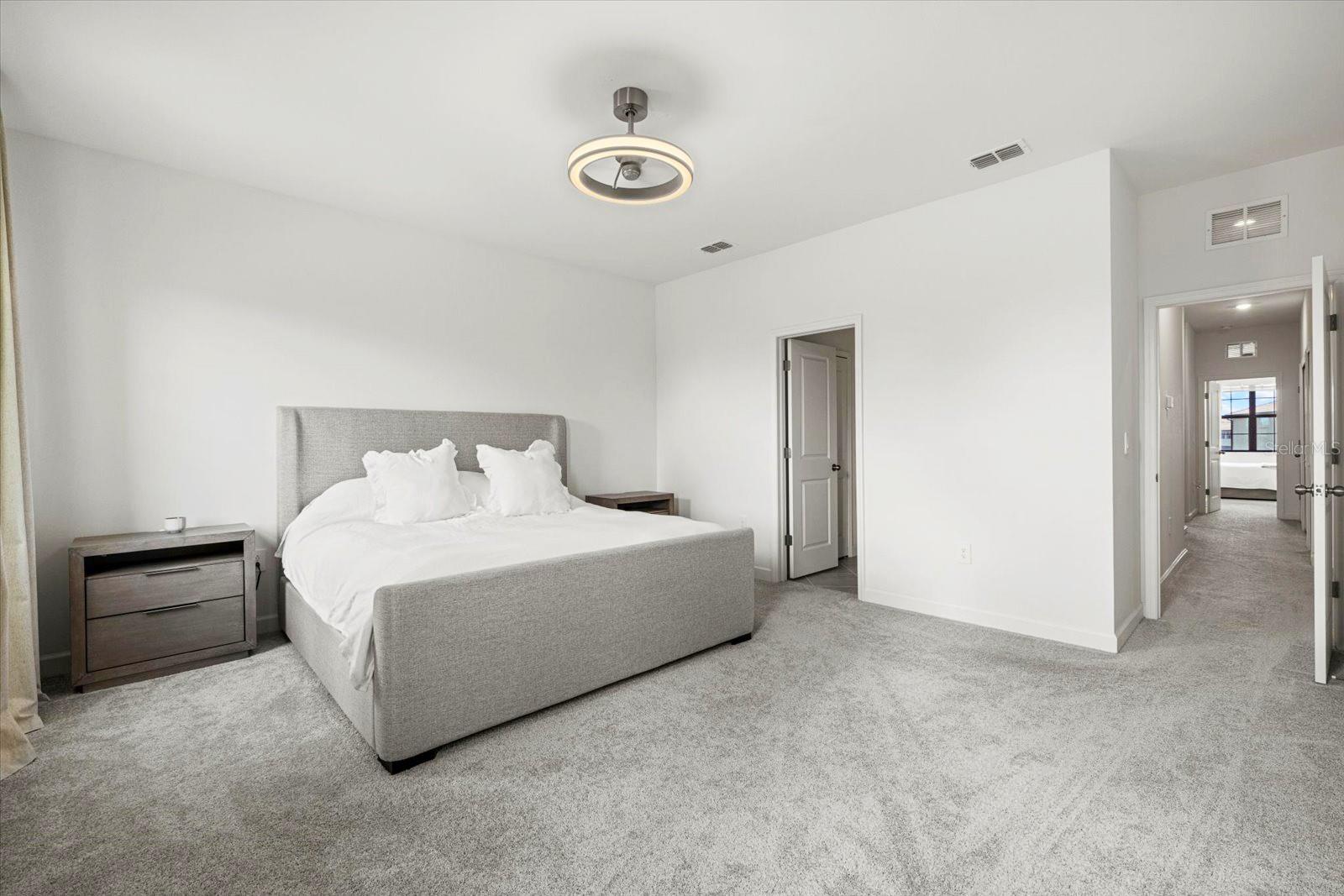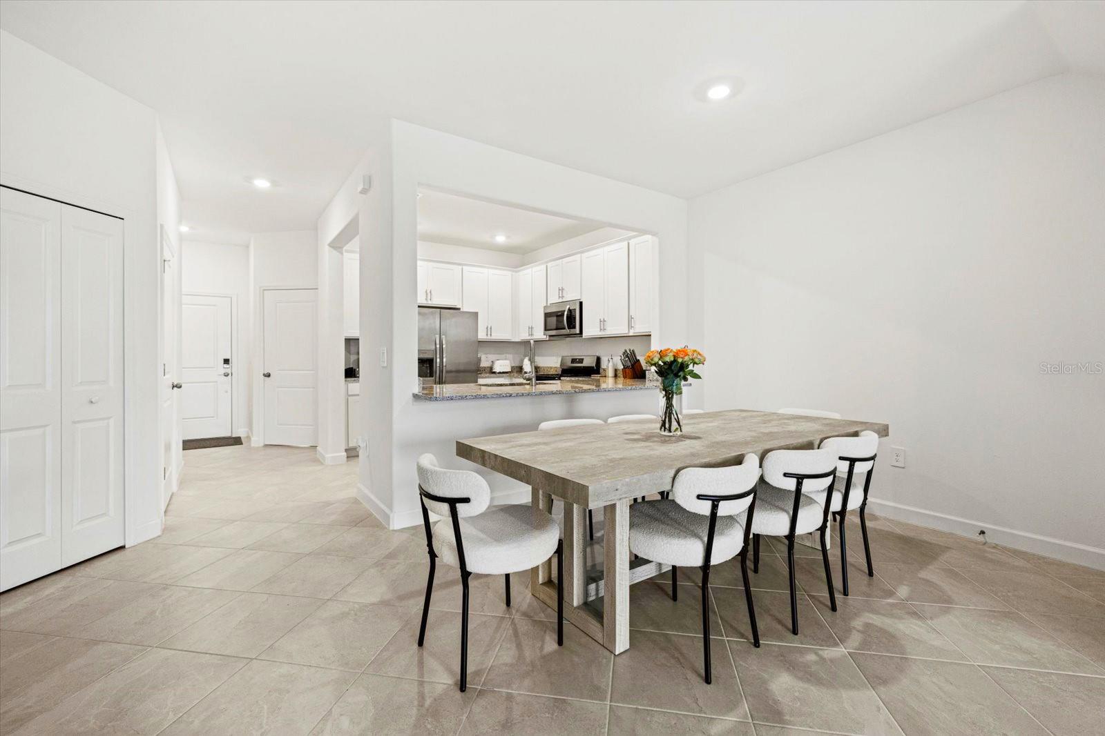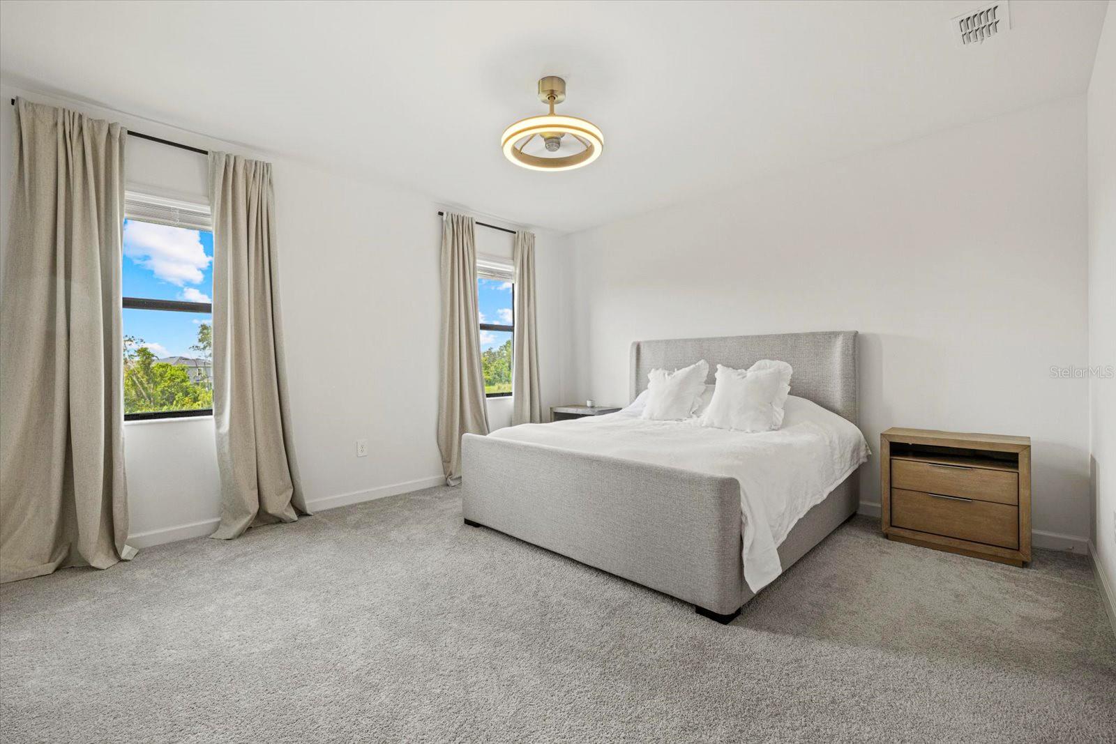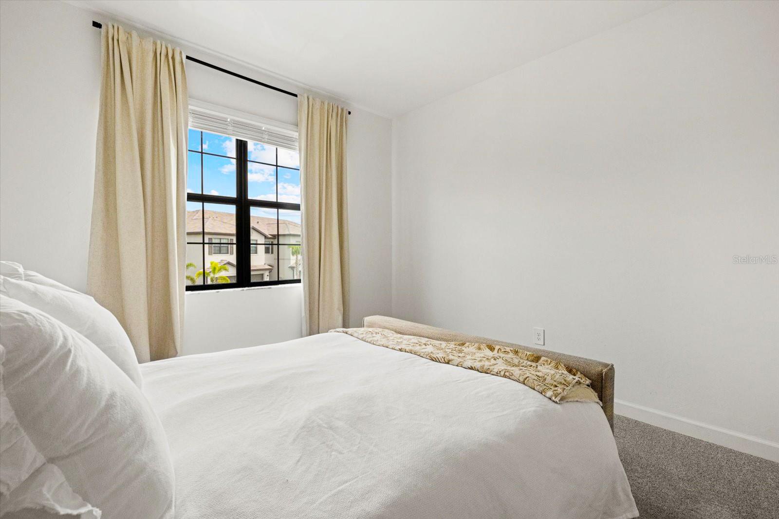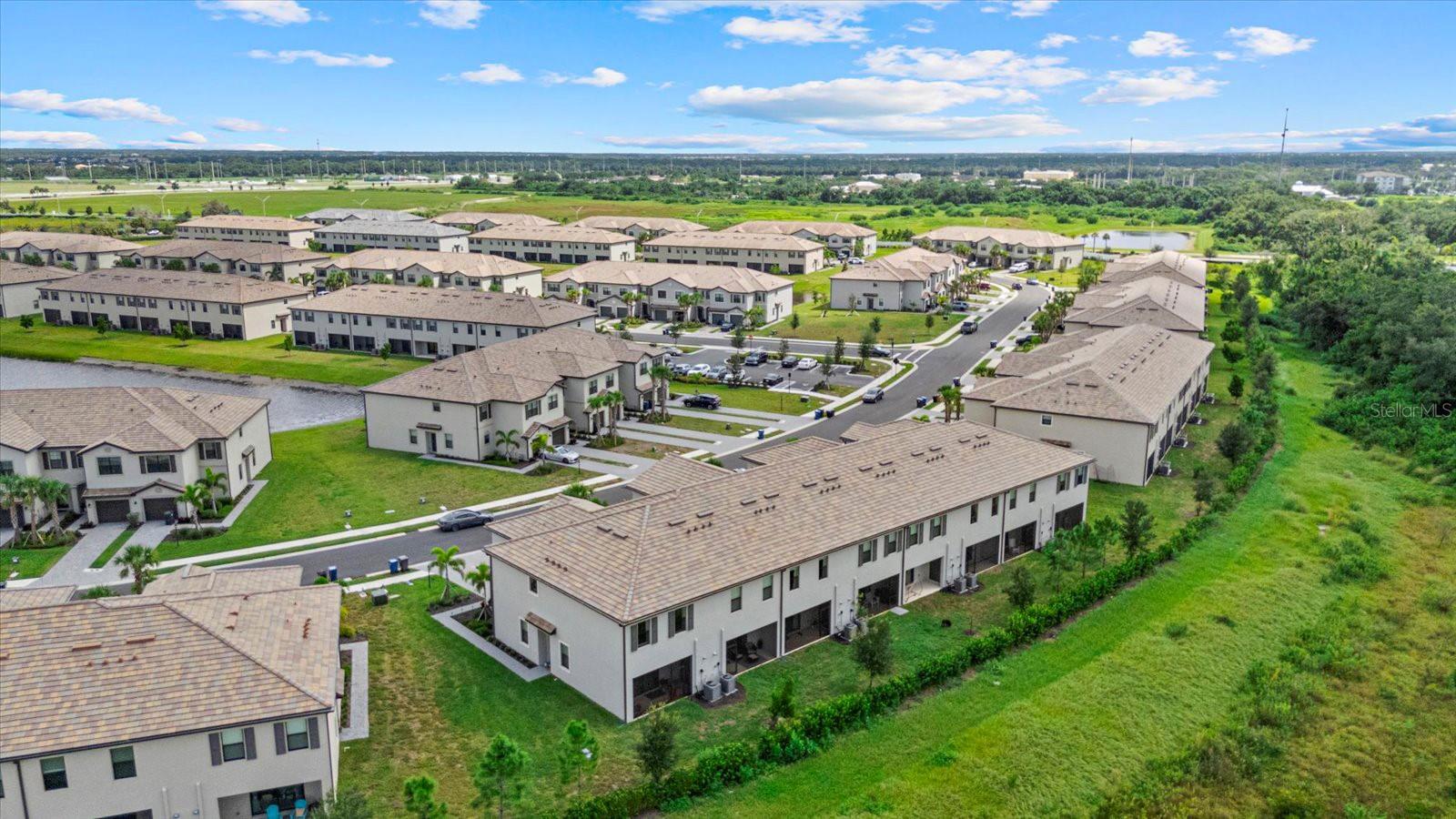 Built in 2024, resort style community living. Townhome boasts 1925 sq. ft. plus 9.4 ft high ceilings on the second floor! Large living area with an open floor plan in the main living area with a half bath on the 1st floor for your convenience. Screened in Lanai facing the private preserve trees and a large, grassed backyard for your privacy and view at the beautiful sunsets at your relaxed evenings! Second floor offers you the large primary bedroom with two walk-in closets, and a double sink vanity. The additional two front guest bedrooms look at the lake across the street and share a large second bathroom. The laundry room is upstairs in the hallway, equipped with washer and dryer. Lots of storage closets both downstairs and upstairs. Attached one car garage and a long driveway for your parking. Living in Lorraine Lakes community in Lakewood Ranch is all about the lifestyle. The resort style clubhouse and rich amenities is what brings your life relaxation and joy! Seller is motivated.