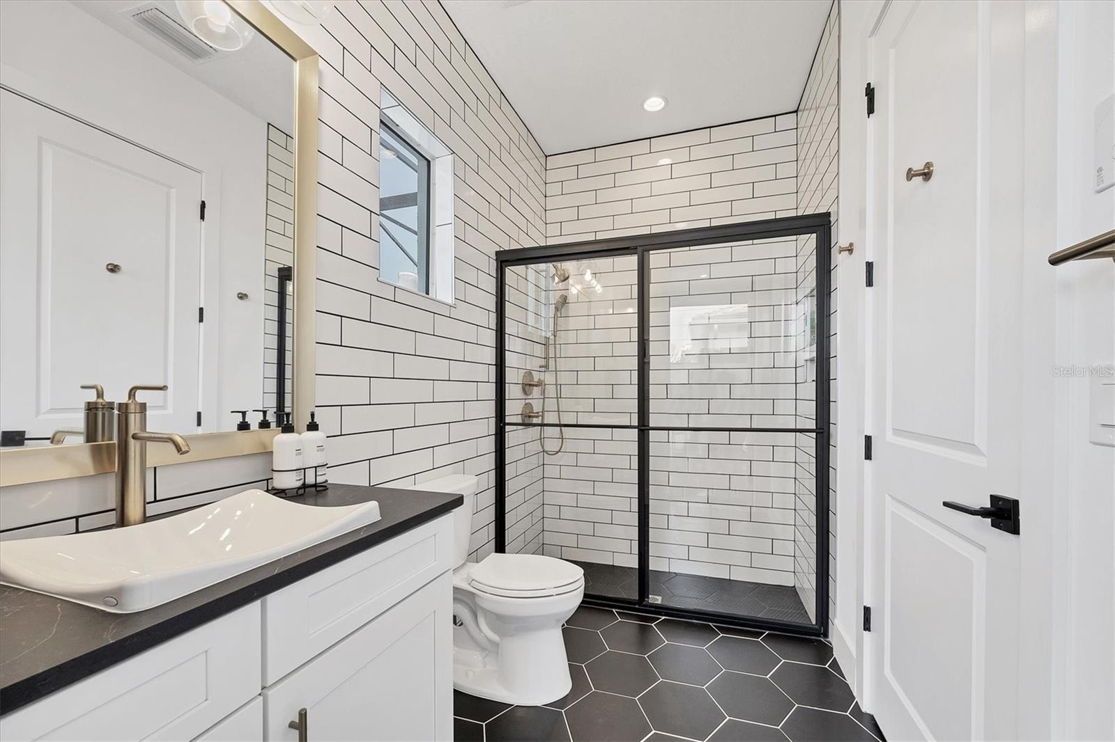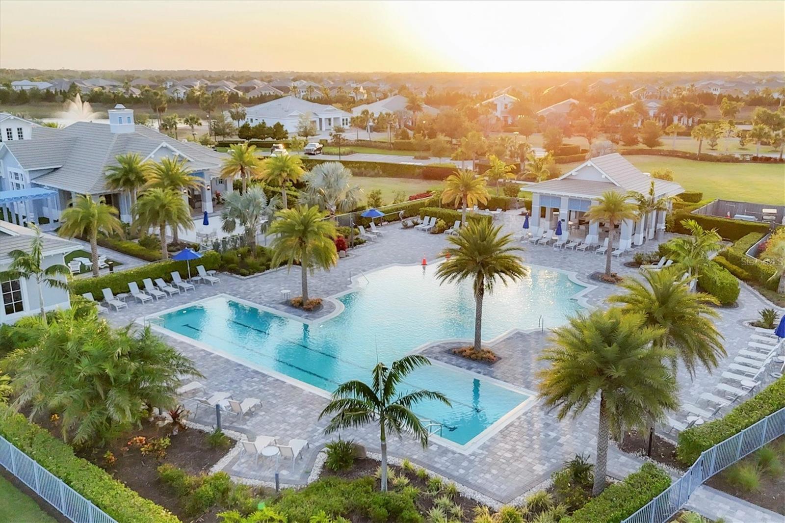 Enter into refined luxury in The Isles at Lakewood Ranch, where this impeccably appointed three-bedroom, four-bath residence offers an unparalleled blend of elegance and functionality. A paver driveway leads you past lush, meticulously landscaped grounds to a welcoming front porch with seating, framed by double-glass entry doors that set the tone for the exquisite craftsmanship found throughout. Upon entry, soaring ceilings and designer lighting illuminate wood-style tile flooring beneath your feet that spans throughout. The foyer—adorned with custom shiplap walls—flows seamlessly from a built-in garage drop zone into an expansive, open-plan living area. Here, intricate beam and ceiling details crown the space, while expansive sliders open to the lanai, blurring the line between indoor and outdoor living. An adjacent dining area provides an intimate setting for gatherings. At heart of the home, the chef’s kitchen is a study in sophistication with KitchenAid appliances, including a double oven and gas cooktop, beautifully contrasted by quartz countertops and floor-to-ceiling cabinetry. A generous center island, ideal for meal preparation and casual entertaining, anchors the room. The sumptuous primary suite offers a serene retreat, complete with a deep soaker tub, quartz countertops at the long double vanity, marble-inspired tile flooring, a glass-encased shower and a sprawling custom walk-in closet. Two guest suites, each featuring walk-in closets and en-suite baths, provide privacy and comfort. A versatile flex space, also equipped with an en-suite bath and pool access, invites use as a den, bonus room or additional guest quarters. Outside your screened lanai, entertain effortlessly in the outdoor kitchen or unwind by the heated saltwater pool and spa, complete with sun shelf and cascading waterfall. Additional quality features include a whole-home water filtration system, integrated security and impact-resistant glass, ensuring comfort and uncompromising peace of mind. Beyond your doorstep, The Isles at Lakewood Ranch delivers a lifestyle of leisure and wellness. This prestigious, gated community features a beautifully appointed clubhouse with social gathering spaces, a resort-style pool, state-of-the-art fitness center, and lighted tennis and pickleball courts. Miles of scenic recreational and biking trails meander through lakeside parks and playgrounds, while year-round community events foster neighborly camaraderie. Experience luxury living at its finest in The Isles at Lakewood Ranch.