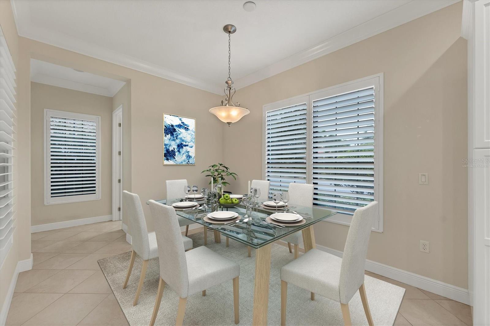 One or more photo(s) has been virtually staged. LUXURIOUS NEAL SIGNATURE home offering the BEST SQUARE FOOT PRICE IN HADDINGTON OF LAKEWOOD RANCH COUNTRY CLUB EAST, an exceptional value! OPEN CONCEPT design, perfect for indoor and outdoor living, creates an inviting atmosphere for family gatherings, entertaining friends or enjoying personal relaxation in an INTIMATE & PRIVATE OUTDOOR SETTING. The SECLUDED POOL GROTTO is enhanced by a NEW MURAL POOL SCREEN adding a refined visual and artistic element that elevates the outdoor space. The architectural design optimizes the corner site welcoming you to a light filled Great Room with pocketing slider and Dine-in Kitchen overlooking your sparkling HEATED SALT WATER POOL and unique CORAL STONE PAVER LANAI, added in 2022, along with convenient Pool Bath access. The ultimate entertaining space features expansive single level island, wood cabinets with crown molding, roll out shelves, under cabinet lighting, gleaming granite countertops and GE Cafe Stainless Steel Appliances. A separate formal dining room is ideal for your special occasions. Refined interior finishes include neutral décor, tray ceilings, crown molding, custom decorative inset shelves, 10' and 12' ceilings, 8' doors, tile, updated luxury vinyl floors in all bedrooms, built-in closets and PLANTATION SHUTTERS. The owners suite serves as a retreat providing outdoor access to the lanai and pool, dual built-in closets, split vanities, roomy walk-in shower, separate soaking tub and private water closet. The study provides versatile space for a home office, game room or hobbies, and the desirable split bedroom and bath design ensures privacy for family and guests with 2 additional bedrooms and full bath. Spacious Laundry Room features front load washer and dryer, upper and lower cabinets, drop-in utility sink and linen closet. The 3 CAR INSIDE LOAD GARAGE includes AIR CONDITIONED COMFORT for you, your specialty vehicles or golf cart, upgraded epoxy finished floor, storage cabinets, 2 hanging storage racks and insulated garage door. For your peace of mind, the home features a 2-stage 16 SEER HVAC with REMO HALO UV & AIR IONIZATION SYSTEM, insulated Low-E Windows, RADIANT ATTIC INSULATION, FOAM INSULATED BLOCK WALLS, a KOHLER 20KW NATURAL GAS GENERATOR. Front impact windows, storm shutters, tile roof, paver driveway, landscape lighting and 1 YEAR AMERICAN HOME SHIELD WARRANTY complete this wonderful home. This quiet sanctuary is a rare opportunity with endless possibilities. Relax in your private setting with maintenance free landscape, or take advantage of the recreational opportunities included in Country Club East. Amenities include the "Retreat" featuring Resident Clubhouse with gathering room, fitness center, resort style pool, and there's an additional clubhouse, 2 pools and spa within the community. Live in the spectacular Country Club East setting where golf, sports and social memberships are optional, located in the #1 Multi-Generational Community in the country. You will find boutique shopping and dining, farmer's market and an abundance of events at Lakewood Ranch Main Street and Waterside Place. This PREMIERE LOCATION is just minutes to recreational pursuits, shopping & dining at UTC Shopping Mall, Nathan Benderson Rowing Park, the new MOTE SEA Aquarium, I-75 to travel north and south and close proximity to SRQ Airport, downtown Sarasota's Bayfront, a multitude of cultural venues and our gorgeous Gulf Coast Beaches!