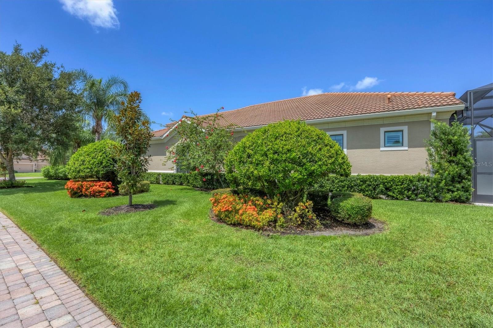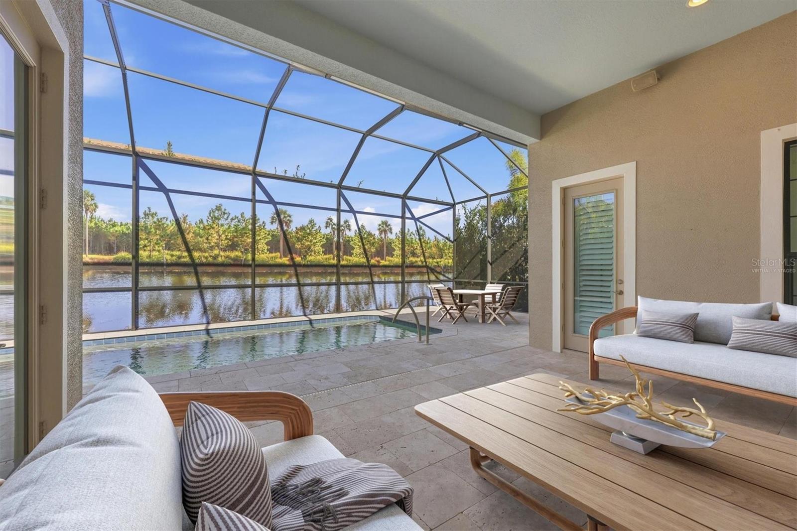 One or more photo(s) has been virtually staged. LUXURIOUS NEAL SIGNATURE home offering the BEST SQUARE FOOT PRICE IN HADDINGTON OF LAKEWOOD RANCH COUNTRY CLUB EAST, an exceptional value! OPEN CONCEPT design, perfect for indoor and outdoor living, creates an inviting atmosphere for family gatherings, entertaining friends or enjoying personal relaxation in an INTIMATE & PRIVATE OUTDOOR SETTING, ENHANCED by a NEW MURAL POOL SCREEN adding a refined visual and artistic element that elevates the outdoor space. The architectural design optimizes the corner site with a light filled Great Room, pocketing slider and Dine-in Kitchen overlooking your sparkling HEATED SALT WATER POOL and unique CORAL STONE PAVER LANAI added in 2022 along with convenient Pool Bath access. The ultimate entertaining space features expansive single level island, wood cabinets with crown molding, roll out shelves, under cabinet lighting, gleaming granite countertops and GE Cafe Stainless Steel Appliances. A separate formal dining room is ideal for your special occasions. Refined interior finishes include neutral décor, tray ceilings, crown molding, custom decorative inset shelves, 10' and 12' ceilings, 8' doors, tile, updated luxury vinyl floors in all bedrooms, built-in closets and PLANTATION SHUTTERS. The owners suite serves as a retreat providing outdoor access to the lanai and pool, dual built-in closets, split vanities, roomy walk-in shower, separate soaking tub and private water closet. The study provides versatile space for a home office, game room or hobbies, and the desirable split bedroom and bath design ensures privacy for family and guests with 2 additional bedrooms and full bath. Spacious Laundry Room features front load washer and dryer, upper and lower cabinets, drop-in utility sink and linen closet. The 3 CAR INSIDE LOAD GARAGE includes AIR CONDITIONED COMFORT for you, your specialty vehicles or golf cart, upgraded epoxy finished floor, storage cabinets, 2 hanging storage racks and insulated garage door. For your peace of mind, the home features a 2-stage 16 SEER HVAC with REMO HALO UV & AIR IONIZATION SYSTEM, insulated Low-E Windows, RADIANT ATTIC INSULATION, FOAM INSULATED BLOCK WALLS, a KOHLER 20KW NATURAL GAS GENERATOR. Front impact windows, storm shutters, tile roof, paver driveway, landscape lighting and 1 YEAR AMERICAN HOME SHIELD WARRANTY complete this wonderful home. This quiet sanctuary is a rare opportunity with endless possibilities. Relax in your private setting with maintenance free landscape, or take advantage of the recreational opportunities included in Country Club East. Amenities include the "Retreat" featuring Resident Clubhouse with gathering room, fitness center, resort style pool, and there's an additional clubhouse, 2 pools and spa within the community. Live in the spectacular Country Club East setting where golf, sports and social memberships are optional, located in the #1 Multi-Generational Community in the country. You will find boutique shopping and dining, farmer's market and an abundance of events at Lakewood Ranch Main Street and Waterside Place. This PREMIERE LOCATION is just minutes to recreational pursuits, shopping & dining at UTC Shopping Mall, Nathan Benderson Rowing Park, the new MOTE SEA Aquarium, I-75 to travel north and south and close proximity to SRQ Airport, downtown Sarasota's Bayfront, a multitude of cultural venues and our gorgeous Gulf Coast Beaches!