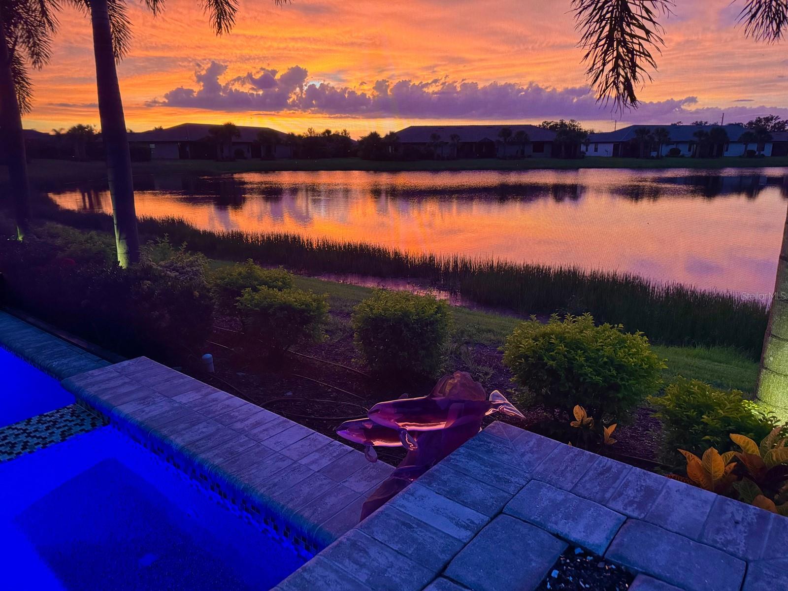 Filled to the brim with clever and beautiful upgrades, this fully FURNISHED home on a prime lakefront lot is the crowning jewel of Del Webb, Lakewood Ranch's premier 55+ active adult community. Starting with this spacious single level floor plan, the owners made numerous upgrades enhancing the beauty; and then expanded on those upgrades throughout 2022 to 2025 improving the form, function and appearance of this residence even more. From the moment you enter you will be greeted by upscale front landscaping with rocks and lights, large lake views, wood-look porcelain plank flooring throughout, an open floor plan ideal for entertaining and custom upgrades in every room that make this home truly one of a kind. The central great room boasts a 2023 feature wall with custom built-in cabinetry and under-lit floating shelves, a full porcelain wall with 85” TV, built in sound system, electric fireplace and solar skylights, plus coffered ceiling and wall of sliding glass doors to the lanai. The opulent formal dining room features a showstopping custom dry bar added in 2023 with granite counters, crackle glass display cabinets, and custom handpainted backsplash, plus 2023 crystal chandelier. The chef’s kitchen shines with 2023 Calacatta quartz island counter, 2023 crystal pendants, custom two-tone cabinetry with additional lit upper glass displays, walk-in pantry, and adjacent dinette. The stainless-steel appliance suite includes 2021 induction cooktop (pre-plumbed for future gas cooktop if desired), dishwasher, 2023 Advantium built-in microwave and wall oven, and refrigerator. Through the sliding glass doors, take in the gorgeous lake views from the 2021 paver lanai with summer kitchen, pool and motorized hurricane screens. Enjoy meals alfresco from the outdoor kitchen with stainless steel grill, dual-drawer bar fridge and side burner. Lounge by the lakeside in your custom 2021 pool with large sunshelf, raised spa, fire bar, water features and surrounded by panoramic screen enclosure with additional integrated sunshade for privacy on the east side. Inside the primary bedroom is your private oasis with sunset lake views, large walk-in closet with custom shelving and spa-like bathroom with oversized walk-in shower. Guests will cherish the two guest bedrooms and two full guest bathrooms outfitted with luxe upgrades. When you’re ready for privacy, retreat to the study with dual walls of desks and storage. Also included in this impeccable residence is a laundry room with 2023 floor-to-ceiling storage cabinetry and large folding counter, along with an expanded 3-car garage with its own air conditioner and workshop space. Enjoy premium peace of mind with a 2023 Kohler whole-house GENERATOR and 2023 whole-house storm power and roller shades. Additional upgrades include blackout window treatments, 2023 gas pool heater and salt cell and 2023 upgraded front landscaping. Offered fully FURNISHED, this residence is ready for you to move in right away! Del Webb is a premier 55+ active adult, gated community with extensive resort-style amenities and social activities including an expansive clubhouse, restaurant, fitness center with classes, resort-style pool, lap pool and spa, outdoor and events areas, dog park, tennis and pickleball courts, social clubs and events, full-time lifestyle director and more! Lakewood Ranch is the top multi-generational community in the country for seven years in a row with plentiful shopping, dining, parks and nearby beaches.