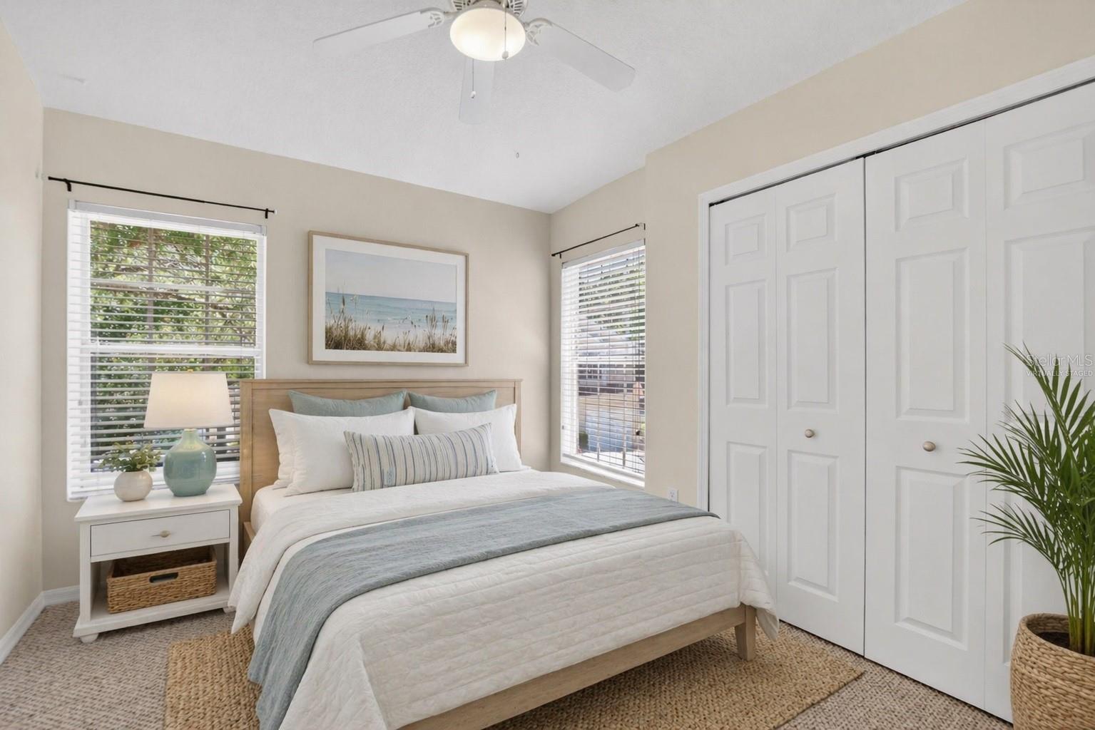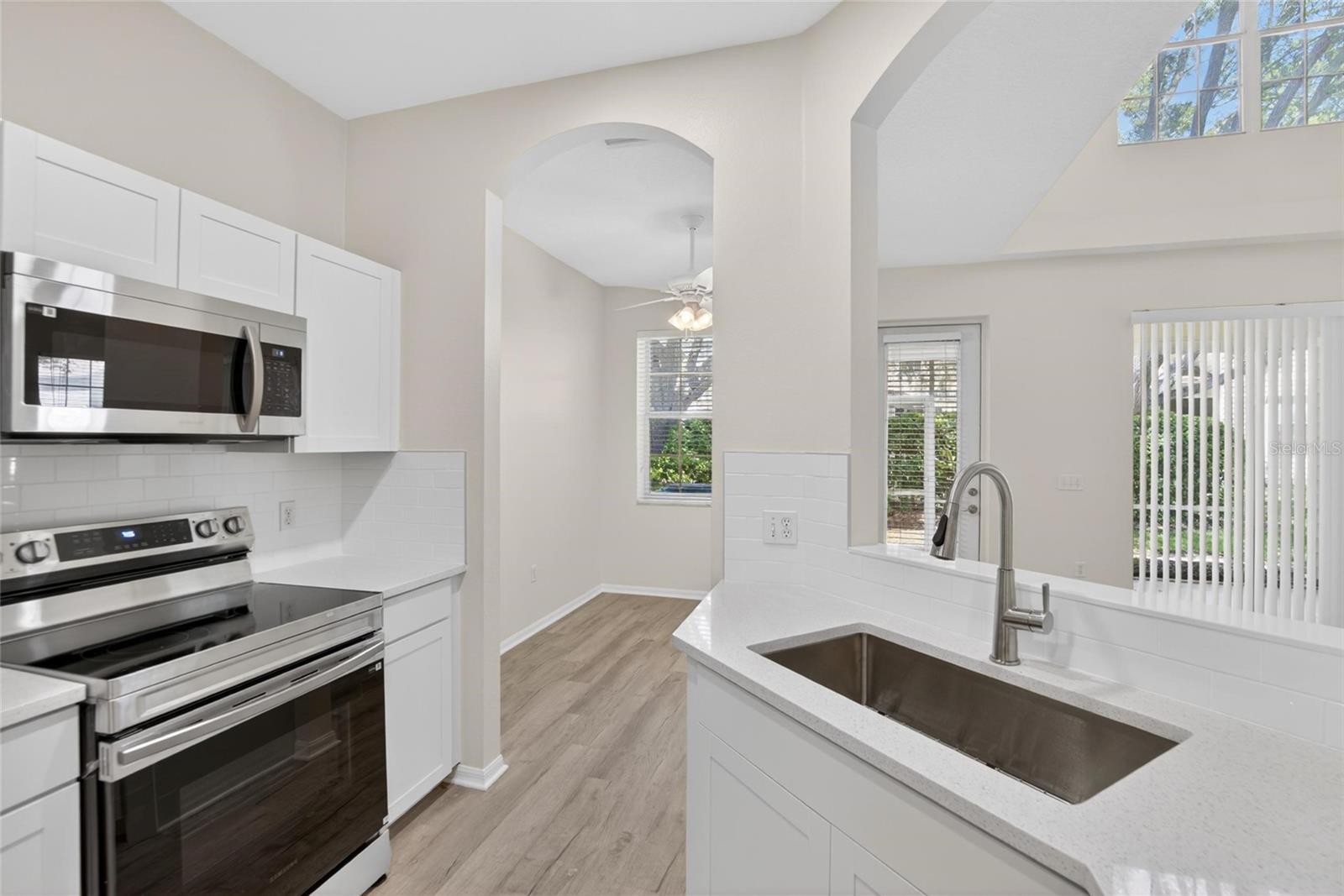 One or more photo(s) has been virtually staged. Completely updated and move-in ready, this beautifully updated end-unit townhouse offers 1,691 square feet of thoughtfully designed living space in the heart of Lakewood Ranch. With 2 bedrooms, 2.5 bathrooms, and a rare two-car garage, this home delivers a level of space and convenience that’s hard to find in this highly sought-after area. The main level features a bright, open-concept layout where the kitchen, dining, and living spaces flow effortlessly together, ideal for everyday living. New luxury vinyl plank flooring runs throughout, creating a cohesive, modern aesthetic. The kitchen has been tastefully updated with shaker-style cabinetry, quartz countertops, a sleek single-basin stainless steel sink, and a full suite of new stainless steel appliances. A conveniently located half bath on the main floor adds everyday functionality while providing easy access for guests. Upstairs, the spacious primary suite and second bedroom are complemented by a versatile loft, perfect as a home office, fitness space, media lounge, or easily converted into a third bedroom. The secondary bathroom has been refreshed with new flooring, an updated vanity, new lighting, and a new toilet. The primary bathroom offers a spa-inspired feel with updated flooring, dual vanities, and a beautifully tiled walk-in shower. Step outside to your private patio, where mature landscaping and tranquil wooded views create a peaceful outdoor retreat. Ideally situated on a quiet, tree-lined street, this home is just minutes from Braden River Elementary and Middle School, Summerfield Park, and all the amenities of Lakewood Ranch. Enjoy close proximity to Lakewood Ranch Medical Center, UTC’s premier shopping and dining, top-rated golf courses, and an abundance of outdoor recreation. Plus, you’re just a short drive from Sarasota’s vibrant downtown and the area’s renowned Gulf Coast beaches.