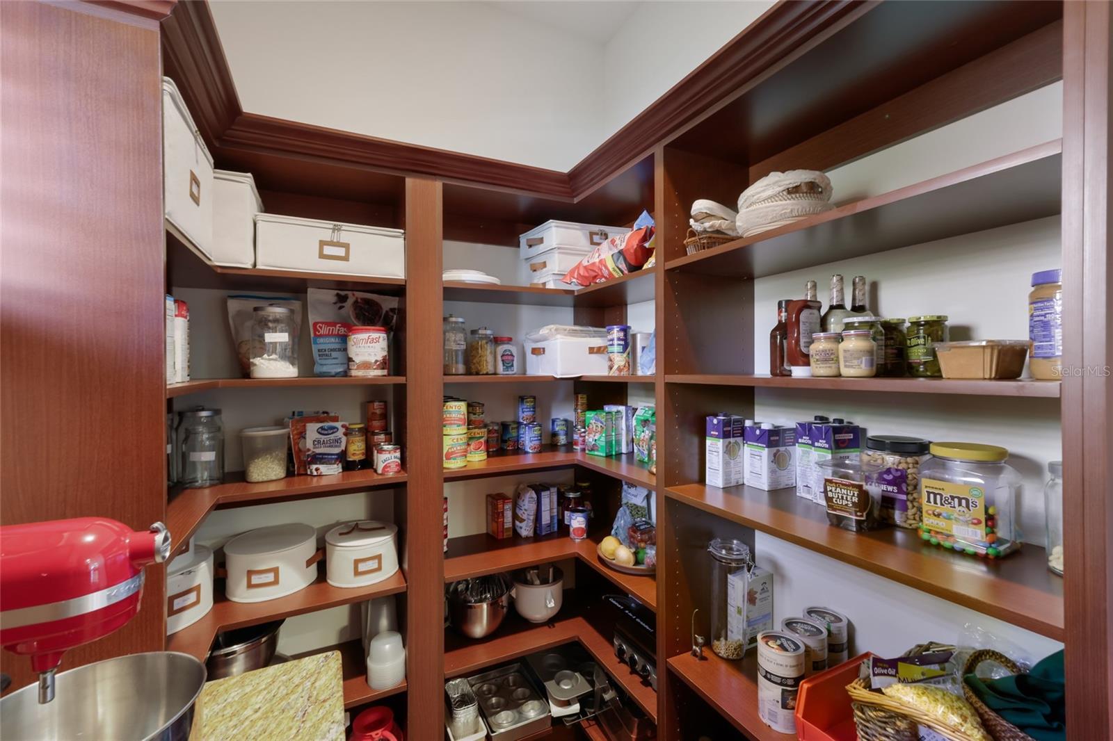 Set on nearly a half acre at the end of a quiet cul-de-sac with no homes on one side, this custom residence in Country Club East offers privacy, quality craftsmanship, and refined comfort throughout. Built with hurricane-impact windows and doors, the home features three bedrooms plus a private office complete with a walk-in storage closet. Rich wood flooring, plantation shutters, tray ceilings, crown moldings, architectural details and custom built-ins add warmth and character throughout. The kitchen serves as the true heart of this home showcasing double built-in Viking wall ovens, a Viking gas cooktop, built-in Viking microwave, warming drawer, center island, breakfast bar, hidden pantry with appliance counter, and a dinette framed by aquarium windows. The primary suite is a peaceful retreat with a tray ceiling, double glass doors opening to the lanai, two custom-organized walk-in closets, and a spacious en suite bath featuring dual vanities, a walk-in shower, private water closet, and linen closet. One guest bedroom includes a built-in Murphy bed and an en suite bath, while the second guest room offers pocket slider access to the pool and lanai. Outdoor living is equally impressive with a private pool, spa, and fully equipped outdoor kitchen, creating seamless indoor-outdoor enjoyment. The home also offers a three-car garage and an exquisite laundry room with a utility sink, marble counters and beautiful cabinetry. Secret Harbor is an exclusive enclave within Country Club East offering maintenance-free living. Residents of Country Club East enjoy access to The Retreat fitness center and resort-style pool, and the Lakewood Ranch Golf & Country Club offers several levels of optional membership.
