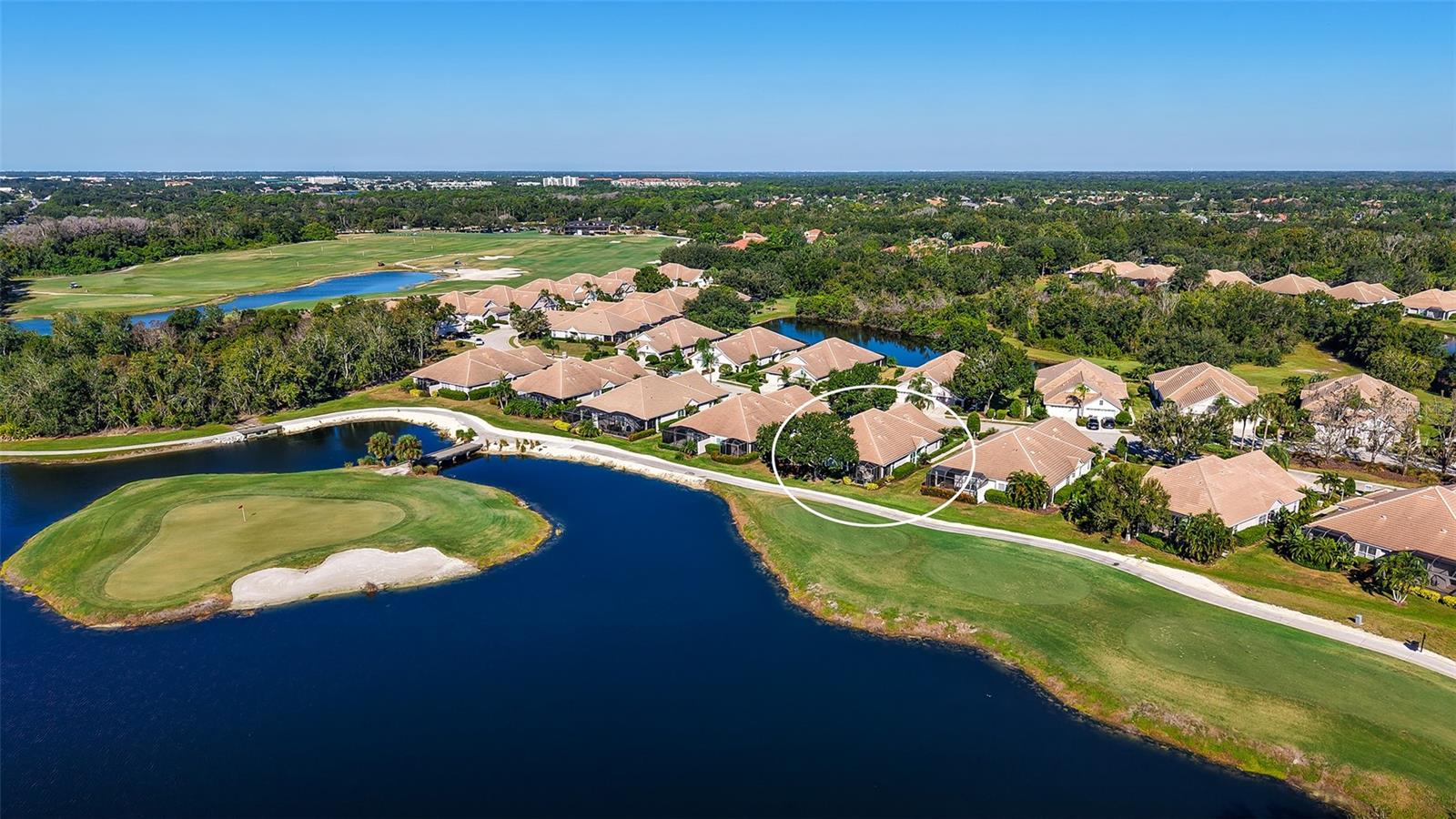 Experience the relaxed lifestyle you've been longing for in this stunningly UPDATED Weston villa, on a PREMIUM LOT in the maintenance-free Lakewood Ranch Country Club Village. Offering a breathtaking water and golf course views, this beautifully updated home is designed for seamless indoor-outdoor living. Enjoy an open and inviting layout, where natural light pours in through NEW HURRICANE DOOR AND WINDOWS, illuminating the beautiful bamboo wood flooring. The gourmet kitchen, featuring updated white cabinetry, quartz countertops and a tiled backsplash, flows effortlessly into a spacious dining and great room, ideal for entertaining. The primary suite offers a picturesque water view and an ALLURING BATH featuring walk-in shower with waterfall tile design, dual sinks and mirrors, quartz countertop and large closet. A separate den with French doors and a built-in desk and wardrobe cabinet, provides the ideal home office, den or room for extra guests. Go onto your expanded lanai to take in the serene scenery and sweeping views of the private Legacy Course's 17th fairway. This home also includes newer appliances, LED recessed lighting, ceiling fans, light fixtures, gutters and more. Weston's maintenance includes Spectrum TV and internet, pressure washing the roof, painting of exterior, lawn and sprinkler care, annual backflow testing, as well as heated pool and spa. For a separate fee you can join LWRGCC with 72 holes of golf, three clubhouses, tennis, pickleball and more. There are a multitude of shopping, dining, health care and entertainment options close by, as well as the best beaches in Florida. Look no further!