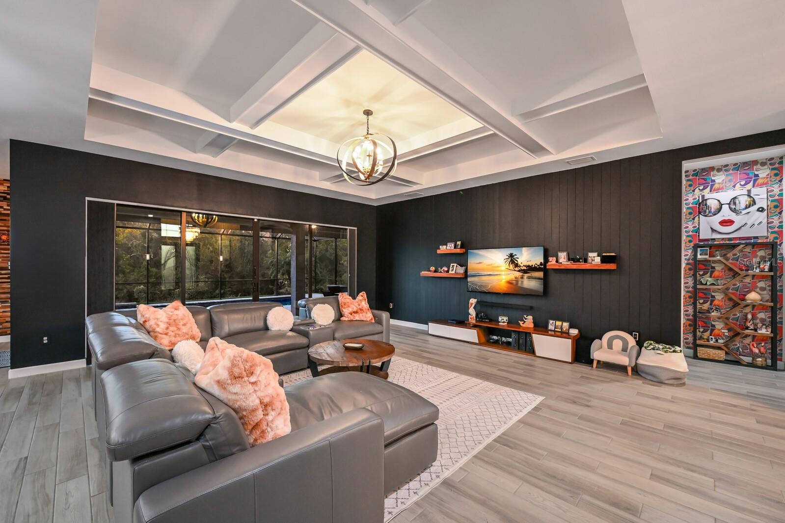 STEP into this STUNNING 3 bedroom, 3 bathroom, 3 car garage Sunset model by Lennar, located in the highly sought-after GATED community of Lorraine Lakes in Lakewood Ranch!! This home has undergone a complete REMODEL and is truly one-of-a-kind, offering MODERN LUXURY, comfort, protection, and PRIVACY with every possible upgrade you could imagine. As you step through the GRAND double front doors, you’re greeted by an ASTONISHING chandelier and ELEGANT entryway that gives you a glimpse of the home’s open concept floor plan. The living room features a beautiful COFFERED ceiling, a CUSTOM shiplap feature wall, and four panel sliding glass doors with CUSTOM SHADES for privacy that open to the lanai and pool area, creating the perfect space to unwind after a long day. The modern, UPGRADED kitchen is a SHOWSTOPPER, showcasing ceiling-to-floor cabinets with pull out drawers, pull out spice racks, a built-in oven/air fryer, gas cooktop with a STYLISH hood, modern backsplash, a walk-in pantry, a built-in coffee bar, and a large WATERFALL EDGE island with seating that’s perfect for everyday meals or entertaining guests. The cabinets extend into the dining area, which includes a wood accent wall and sliding doors offering beautiful views of the backyard. The primary suite is privately located on one side of the home, featuring sliders leading to the lanai, a tray ceiling with CUSTOM WOOD ACCENTS, two spacious WALK-IN CLOSETS, and a LUXURIOUS ENSUITE bathroom complete with dual sinks, a large tiled walk-in shower featuring two shower heads, a rain head, and a built-in shower seat for a true spa-like experience. On the other side of the home, one bedroom features a custom BUILT-IN WALL SEAT with storage, while another bedroom includes its own PRIVATE bathroom that conveniently opens to the lanai, making it perfect for use as a POOL BATH. There is also a spacious STUDY/DEN, ideal for a home office, playroom, or fitness space. The laundry room includes cabinetry, a sink, upgraded washer and dryer, and a custom built-in mudroom. Step outside to your private backyard OASIS with a fully screened lanai featuring a HEATED SALTWATER POOL AND SPA, custom WOOD CEILING, and LANAI CAGE LIGHTING that enhances the ambiance. The OUTDOOR KITCHEN comes equipped with a refrigerator and cabinets, ideal for entertaining family and friends while enjoying views of the breathtaking sunsets. For extra protection and peace of mind, this home includes MOTORIZED HURRICANE SHUTTERS on both the front door and lanai, and ATTIC INSULATION for enhanced energy efficiency. Additional upgrades include LUXURY VINYL FLOORING throughout, CUSTOM CLOSETS, PLANTATION SHUTTERS, a whole-home WATER SOFTENER SYSTEM, and a garage equipped with TRX flooring, CEILING RACKS, and CABINETRY for ample storage. The EXTENDED PAVER WALKWAY, upgraded landscaping, and outdoor lighting complete the home’s refined curb appeal. Located in Lorraine Lakes, this resort-style community offers a clubhouse, multiple community pools, a state-of-the-art fitness center, tennis, pickleball, basketball, and volleyball courts, a splash park, and even an on-site restaurant so you can enjoy Florida living to the fullest without ever leaving your neighborhood. Lakewood Ranch is known for their A+ rated school system and is perfectly located just a short ride to downtown Sarasota, St. Pete, world class shopping, fine dining and the FAMOUS Gulf beaches! Don't wait to make this your home and begin your FLORIDA Lifestyle!