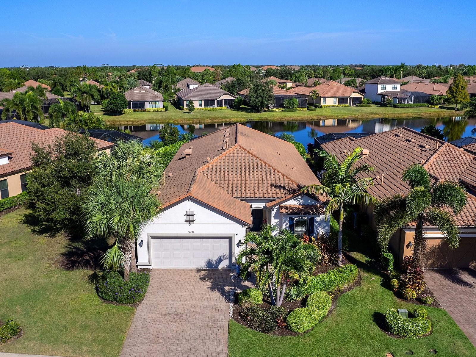 This beautifully upgraded Lazio-model home by Taylor Morrison is in the sought-after community of Esplanade Golf and Country Club in Lakewood Ranch, Florida. Built in 2014 and offered as non-golf bundled, this residence keeps HOA fees lower while allowing residents optional pay-to-play golf access. On a serene water-view lot, this three-bedroom, three-bath home showcases an open-concept floor plan filled with natural light. Large sliding glass doors and oversized windows with custom shutters frame picturesque views of the mature landscape and water. The gourmet kitchen has been updated with new quartz countertops, an oversized navy-accented island, and an extended café featuring a dry bar and wine refrigerator. Additional upgrades, totaling over $90,000, include new tile flooring throughout (no carpet), updated exterior paint and trim, and numerous interior enhancements. The great room seamlessly connects the family room, dining area and kitchen to the expansive lanai, your private outdoor oasis. Enjoy a heated saltwater pool and spa, along with a well-appointed outdoor kitchen complete with stainless grill, hood, bar refrigerator and sink. The private primary suite offers peaceful views and includes an en-suite bath with an oversized walk-in shower, dual-sink granite vanity and a large custom-designed walk-in closet. A second bedroom also features a private en-suite bath and built-in closet. The third bedroom showcases a beautiful, recessed alcove with window, ideal for a desk and is conveniently off the foyer, adjacent to the guest bath. Additional highlights include an oversized laundry room with abundant storage, laundry sink and newer washer/dryer, plus a 4-foot garage extension with overhead storage racks, ideal for larger vehicles or extra gear. This move-in-ready home blends luxury, comfort, and resort-style living in one of the area’s desired communities with amenities including a beach entry pool and spa, pool side dining at the Bahama Bar, state-of-the-art gym and exercise rooms, tennis and pickleball courts, golf, the Koquina Day Spa, a lifestyle director for community events, The Barrel House Restaurant and Bar, and more! The home is also within proximity to SRQ Airport, University Town Center Mall and shops, dining, Lakewood Ranch Medical Center, Main Street and Waterside shops and dining, Sarasota Polo Club, Lakewood Ranch Public Library and top-rated schools.