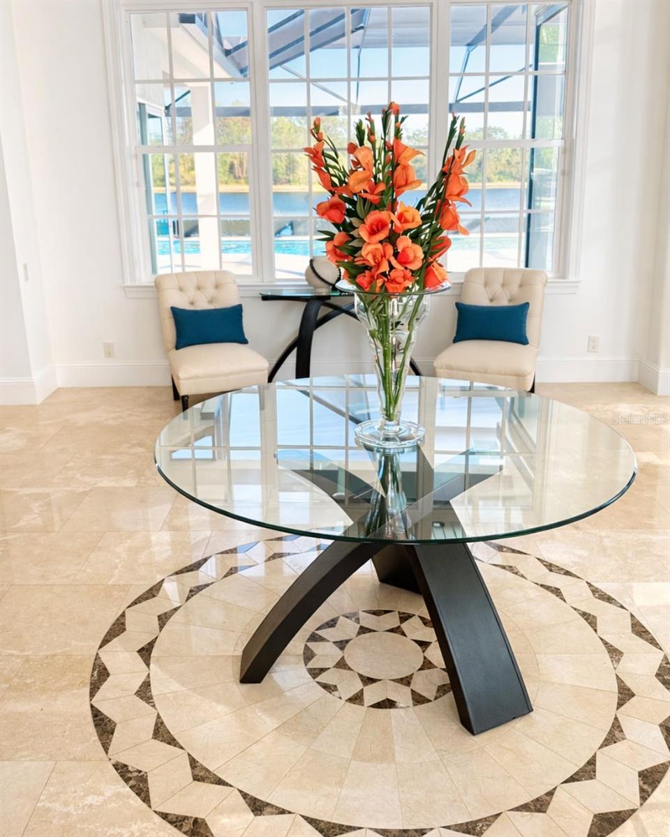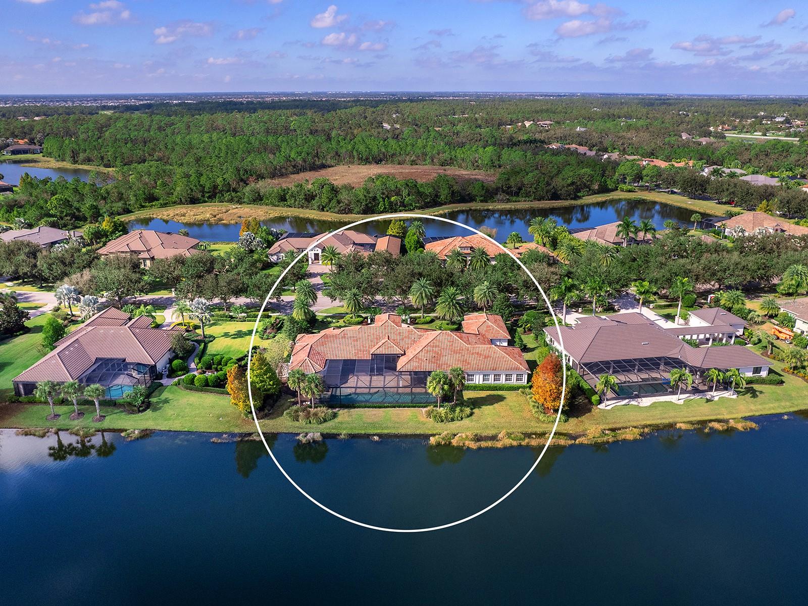Poised to capture sweeping southeast-facing lake views, this impeccably designed Arthur Rutenberg residence presents a refined interpretation of indoor-outdoor living within the prestigious Concession community. Thoughtfully sited amid lush landscaping, the home blends architectural elegance with everyday comfort, creating an atmosphere that feels both elevated and effortless from the moment you arrive. Iron-and-glass double doors open to a luminous interior where coffered ceilings, polished travertine floors, and expansive pocketing sliders draw the eye outward to the pool and long water views beyond. The great room is both dramatic and inviting, offering generous space for entertaining while maintaining a natural connection to the outdoors. Anchoring the home, the gourmet kitchen is as functional as it is striking, featuring custom cabinetry with under- and over-cabinet lighting, a substantial floating island, quartz countertops, a discreet walk-in pantry, a Wolf gas cooktop, a beverage cooler, and premium stainless-steel appliances. Just beyond, the formal dining room and adjoining bar provide an elegant setting for elevated gatherings and intimate dinners alike. A private office offers a refined workspace. A versatile, spacious bonus room makes the perfect theatre room, golf simulator, or fitness area overlooking the lake, creating an inspiring backdrop for an elevated lifestyle. Three generously sized guest suites are thoughtfully positioned to ensure privacy, separate from the serene owner’s retreat. The primary suite serves as a true sanctuary, complete with a sitting area, expansive walk-in closets, and a spa-inspired bath with dual vanities, a soaking tub, and a walk-in shower. Outdoors, the expansive lanai becomes a natural extension of the living space, finished with travertine pavers, a fully equipped outdoor kitchen, and a resort-style saltwater pool and spa with sun shelf and fountains, all overlooking the tranquil lake. Whether hosting guests or enjoying a quiet evening at home, the setting offers a sense of everyday escape. The home has been thoughtfully enhanced with a suite of recent upgrades focused on comfort, efficiency, and peace of mind, including new air-conditioning systems, a whole-house generator, upgraded security with Ring doorbell, a Culligan reverse osmosis kitchen system, and a designer sound system. Outdoor enhancements include double-sealed travertine, a new patio cage, electric hurricane shades, accent lighting, wiring for an outdoor television, refreshed landscaping, and updated irrigation with front landscape lighting. Additional improvements include new flooring in a guest bedroom, upgraded electrical in select rooms, garage ceiling storage racks, and added utility connections. New carpet to be installed in 2026. The Concession, home to the PGA Tour World Golf Championship and Senior PGA Championship is one of the most prestigious golf communities in the country and provides a serene environment.
