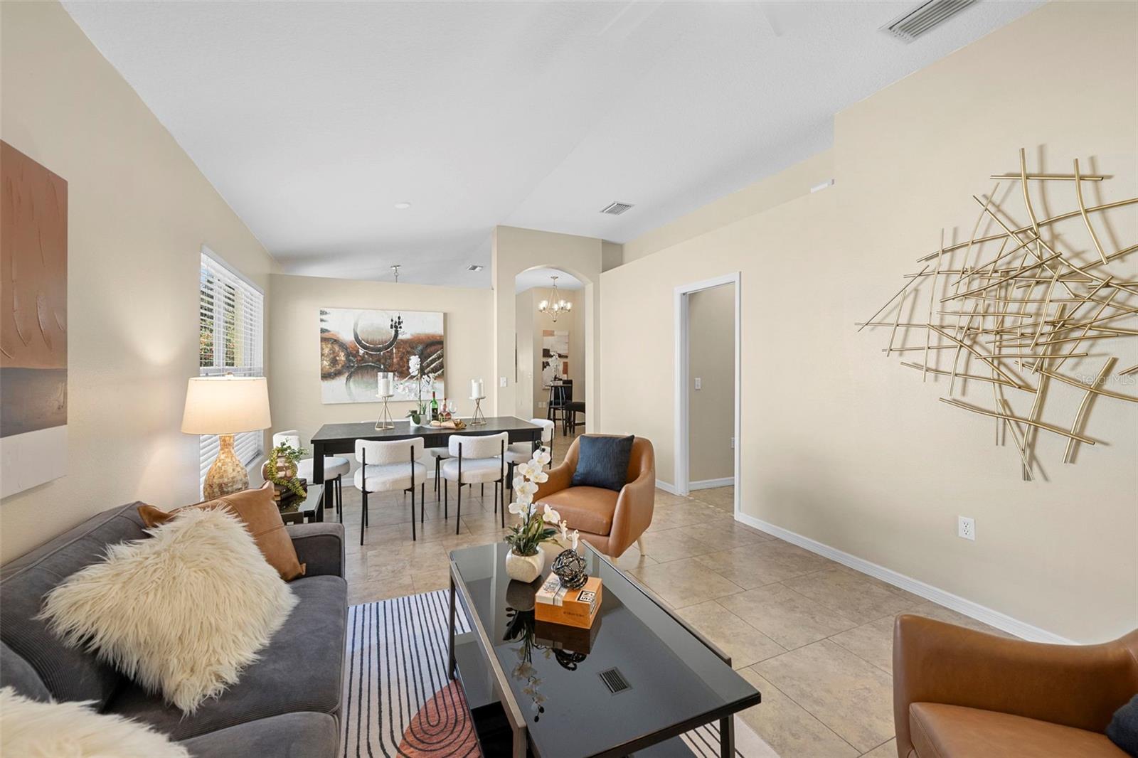 Welcome to 11914 Winding Woods Way — a beautifully updated home in the heart of Summerfield at Lakewood Ranch! This charming 3-bedroom, 2-bathroom residence offers the perfect blend of comfort, style, and Florida living. Thoughtfully designed with vaulted ceilings and large, sun-filled windows, the home feels bright and airy from the moment you step inside. The combined living and dining room creates a welcoming space for gathering, while the completely renovated open-concept kitchen serves as the true heart of the home. Featuring a spacious island, crisp white cabinetry, and newer appliances, the kitchen flows seamlessly into the family room—ideal for everyday living and entertaining. Step through to the screened lanai and enjoy tranquil views of the lush, private garden backyard—a peaceful setting to unwind or dine outdoors. The primary suite offers a relaxing retreat with a generous bedroom, walk-in closet, private walk-out to the lanai, and a beautifully updated 3-piece ensuite with a glass-enclosed shower. Two additional bedrooms, each with built-in closets, are complemented by an updated 4-piece bathroom for family or guests. Additional highlights include fresh light fixtures and fans throughout, a convenient main-floor laundry room, and an attached 2-car garage. Nestled in the desirable Summerfield community of Lakewood Ranch, this home is surrounded by walking trails, parks, and natural beauty—perfect for an active, outdoor lifestyle. Just minutes away, enjoy all the amenities of downtown Lakewood Ranch including dining, boutiques, entertainment, and year-round events. A wonderful opportunity to own a beautifully updated home in one of the area’s most loved communities. Welcome home!