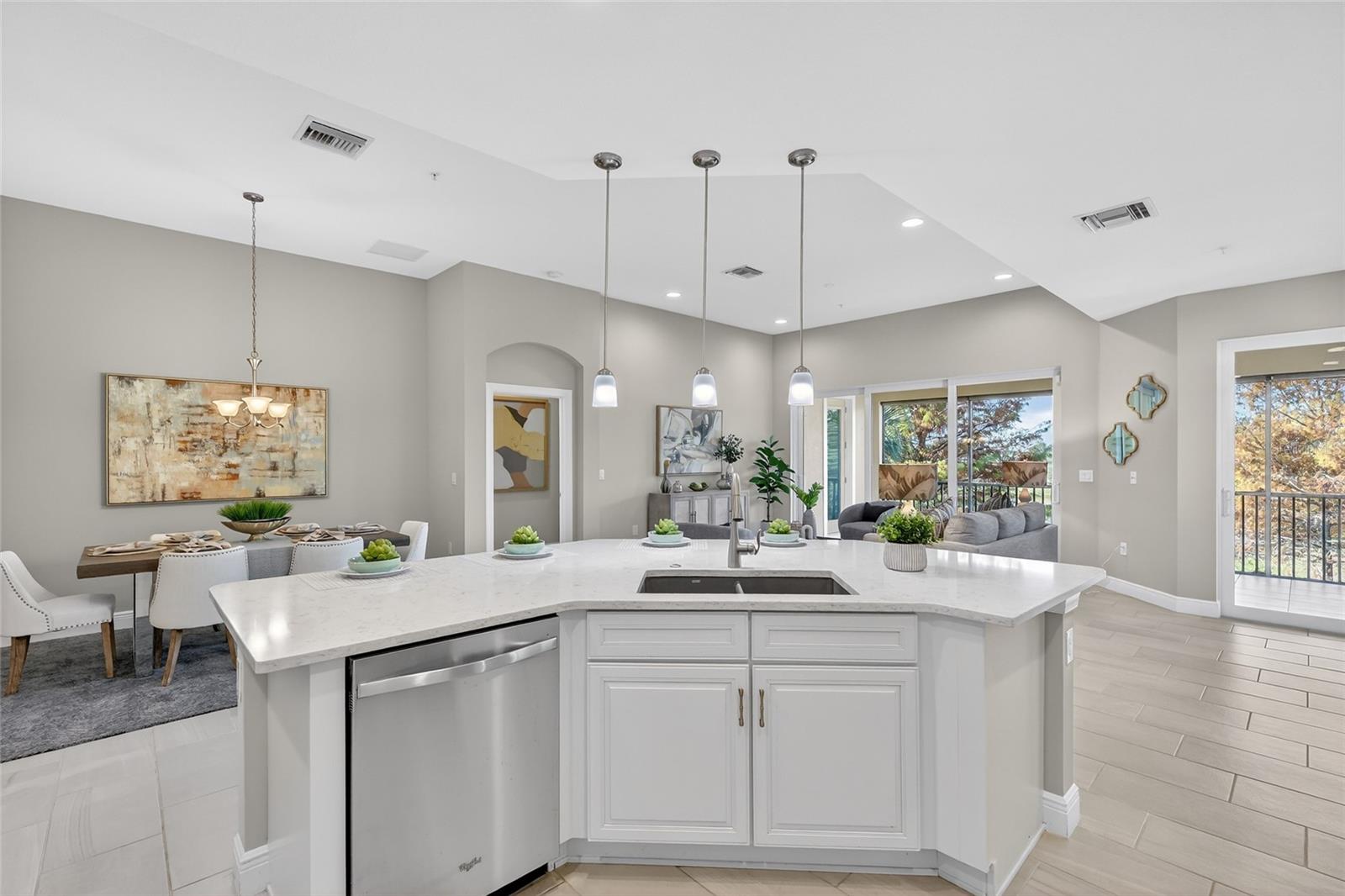 Now is your opportunity to own a top-floor residence with private in-unit elevator and lake view in the highly sought-after Clubside community of Country Club East—where convenience, light, and privacy rise to the occasion. This spacious condo offers three bedrooms, two baths, and an oversized den, perfectly suited for a home office, media room, or overflow guests. Hurricane-impact windows provide peace of mind, while a rare private in-unit elevator—one of the most desirable features in Clubside—delivers effortless access directly to your home, opening to a gracious upper-level landing that sets the tone for easy living. Inside, the expansive open-concept floor plan is bathed in natural light, enhanced by its end-unit position and elevated vantage point. The living and dining areas flow seamlessly, framing serene lake views that bring a sense of calm to everyday life. Whether hosting friends or enjoying a quiet morning coffee, the space feels airy, relaxed, and unmistakably Florida. Located within the gated enclave of Country Club East, Clubside residents enjoy access to multiple resort-style pools, a fitness center, and clubhouse amenities, all just steps from home. Optional membership to the Lakewood Ranch Country Club unlocks championship golf, dining, tennis, pickleball, and an active social calendar. Just minutes from shopping, dining, medical facilities, and everything Lakewood Ranch is known for, this exceptional home offers a lock-and-leave lifestyle that feels elevated, effortless, and endlessly inviting—where paradise isn’t a vacation, it’s the address.