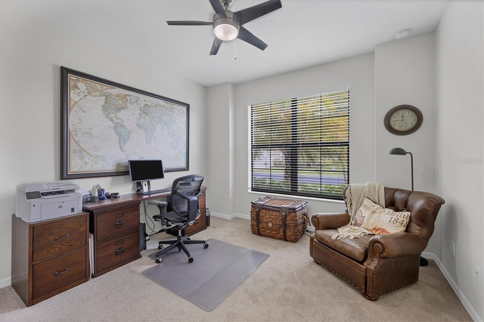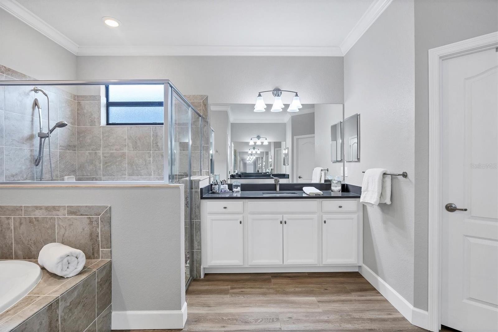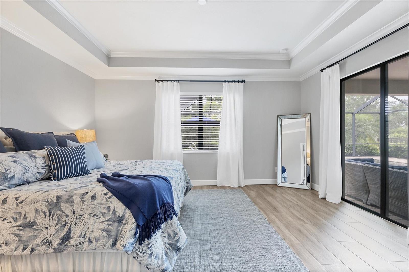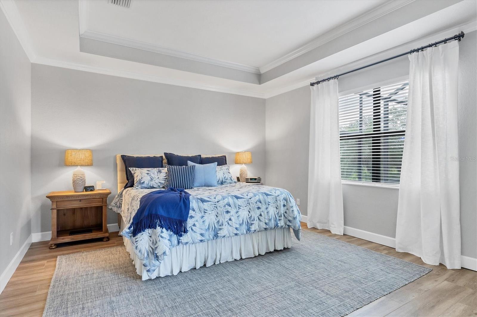 This GORGEOUS 3 bedroom, 3 bath plus den home in the sought after gated community of Polo Run has been tastefully upgraded throughout. Stately double entry front doors open to a sweeping open, airy floor plan that leads to expansive glass sliders revealing a luxurious outdoor gathering area overlooking a large pebble-tec® finished, gas heated pool and spa beyond in a private, tranquil preserve setting. High tray ceilings with crown moldings and upgraded porcelain warm wood-tone plank tile floors run throughout the home exuding elegance and luxury. The heart of this home is the gourmet kitchen with a massive center island with gorgeous white quartz countertops, KitchenAid double wall ovens each with convection capability, a 5-burner gas cooktop with a chic Z-Line stainless-steel hood, designer white tiled backsplash, custom pull-out drawers in all the lower cabinets and a counter depth side-by-side stainless steel refrigerator complete this Chef’s delight! Adjoining the kitchen the spacious family room has a gorgeous custom stacked stone-faced TV wall with a built-in Dimplex 74” fireplace with changing light and heat settings creating a delightful ambiance for entertaining or quiet relaxation. The master bedroom has 2 impressive walk-in closets with custom shelving leading to a spacious ensuite bathroom complete with his and her separate vanities, a soaking tub, large walk-in shower and private water closet. One guest bedroom has an ensuite bathroom offering comfort and privacy for guests. There is a second guest bedroom plus a bonus room that can be a den/office/craft room or currently an exercise/yoga room. The laundry room has a large washer/dryer and sink leading to an oversized 3 car garage with custom overhead storage. Polo Run is a beautifully maintained lifestyle community with an array of amenities including a tastefully decorated clubhouse, impressively equipped exercise room, aerobics room, pickleball, tennis and basketball courts, bocce ball, and playground all overlooking a resort-style heated pool and lovely lake beyond. There is also a dog park and expansive walking trails offering something for residents of all ages. Each home is equipped with solar panels, one of the first solar-powered communities in Lakewood Ranch. Lawn maintenance, irrigation and mulching are included in the low HOA fees allowing time to enjoy all the amenities as well as the thriving master-planned community of Lakewood Ranch, the #1multi-generational community in the U.S. since 2018 with easy access to I-75, nearby metro areas like Tampa and Sarasota, world-class beaches, high-end retail at neighboring University Town Center, 5-star dining as well as favorite locals eateries, weekend markets, abundant entertainment venues, professional sports, cultural attractions and airports. This home is truly one-of-a-kind, meticulously designed exuding warmth, luxury and sophistication in a community that has it all.