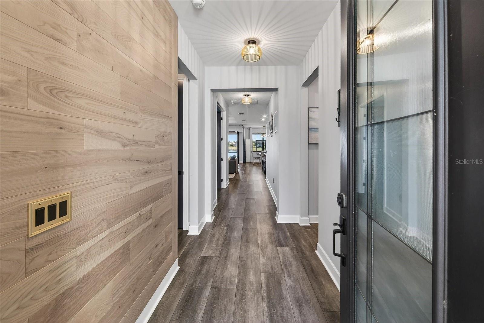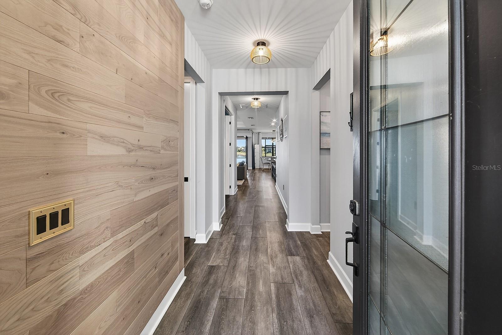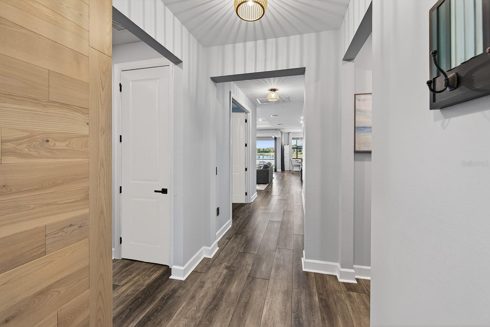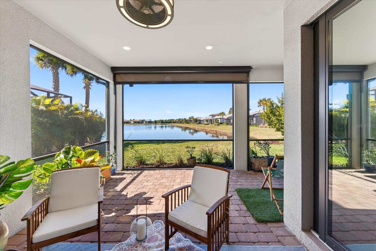 UPGRADES GALORE---STUNNING MYSTIQUE MODEL WITH SPECTACULAR WATER VIEWS! Why wait to build when this nearly new 2023 Mystique Model is move-in ready and packed with premium upgrades? Perfectly positioned on a coveted, unobstructed water-view lot, this immaculate home delivers exceptional style, comfort, and craftsmanship---designed to showcase the very best of Florida living. This captivating residence features 3 bedrooms, 2 bathrooms, and a versatile den, all within an open, entertainer-friendly floor plan. From the moment you arrive, professionally landscaped grounds with a custom border set the tone. Step through the modern full- glass front door and take in the breathtaking water views that immediately create a serene, welcoming ambiance. A striking wood- plank accent wall at the entry adds warmth and a relaxed coastal vibe. Luxury medium-toned vinyl plank flooring with cork backing flows throughout, offering both elegance and comfort. The great room is a true showstopper, highlighted by a tray ceiling and zero-corner pocket sliding doors that open to an expansive lanai---perfectly blending indoor and outdoor living. The lanai features a motorized hurricane shade, ceiling fans, a TV hookup, and space ready for the outdoor kitchen of our choice. And best of all, enjoy unforgettable Florida sunsets night after night. The chef’s kitchen is both beautiful and functional, featuring stainless steel appliances including an LG refrigerator, microwave, gas stove, and gas oven with Air Fryer capability (all under warranty). A large center island with designer pendant lighting anchors the space, while the walk-in pantry is enhanced with custom oak wood slat shelving. No detail was overlooked. Upgrades include quartz countertops throughout, custom cabinet hardware, designer lighting inside and out, marble windowsills, custom drapery treatments, UV- tinted windows and doors, custom interior paint, high-end ceiling fans, custom oak closet systems, a water filtration system, water softener, 8- foot interior doors, and 5-inch baseboards. The owner’s suite is a luxurious retreat with tranquil water views and a spa-inspired ensuite featuring dual vanities, quartz countertops, and an oversized walk-in shower with a rain-style showerhead and floor-to-ceiling tile. The custom walk-in closet offers exceptional storage with oak wood shelving. A privately located second bedroom features a charming bay window, while the adjacent bath includes a tub/shower combination with tile to the ceiling. A third bedroom is tucked away---ideal for guests. The flexible den is perfect for a home office, gym, or creative space. The laundry room impresses with a sink, generous cabinetry, ample counter space, and additional closet storage. A convenient drop-zone near the garage entry adds everyday functionality. The oversized 2-car garage includes a 4-foot extension, epoxy flooring, overhead storage and bike racks, and an EV charger---a rare and valuable bonus. This exceptional Mystique Model offers luxury, thoughtful design, and premium upgrades rarely found in a move-in ready home. Schedule your private showing today and experience this extraordinary waterfront opportunity firsthand.