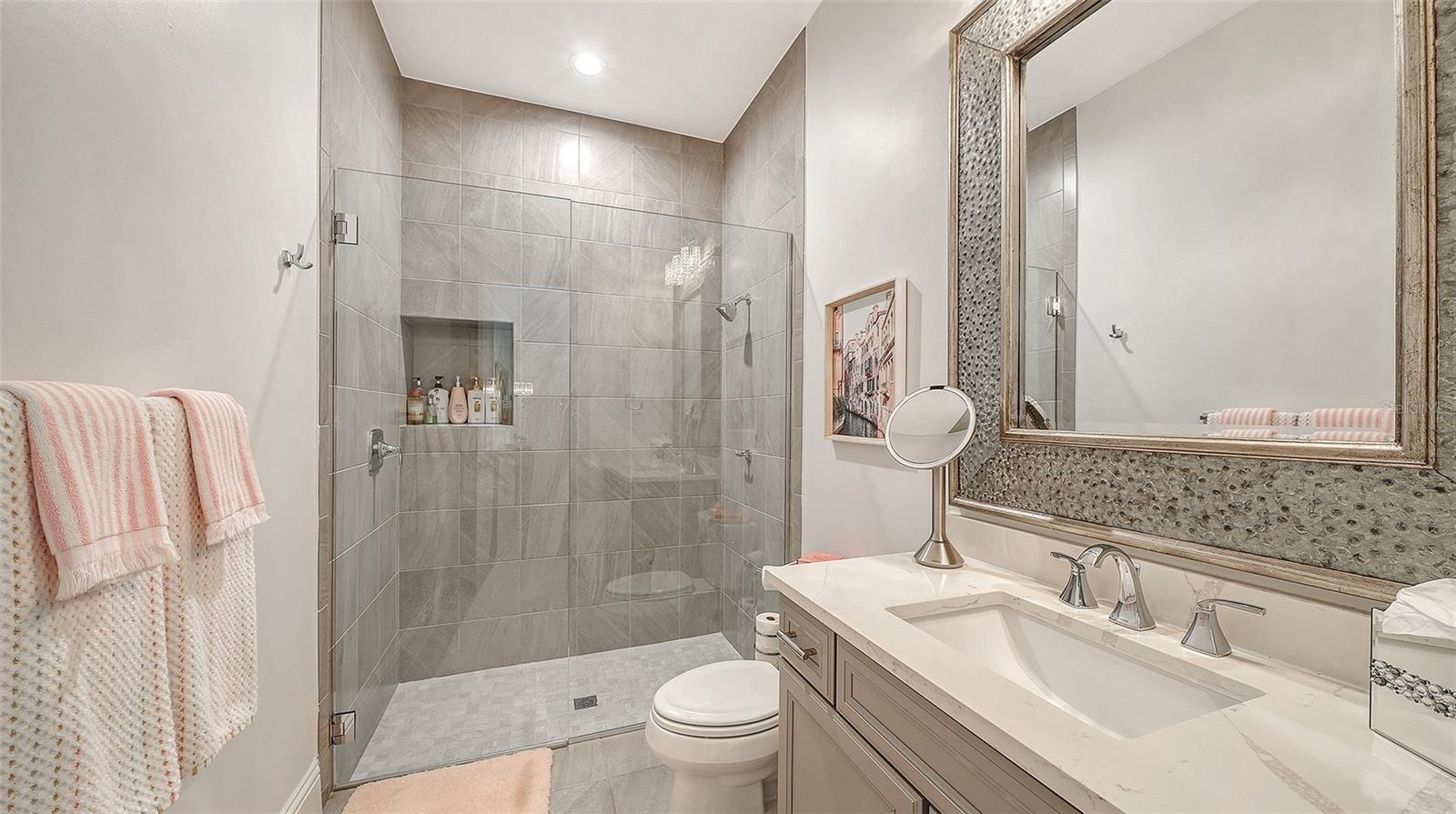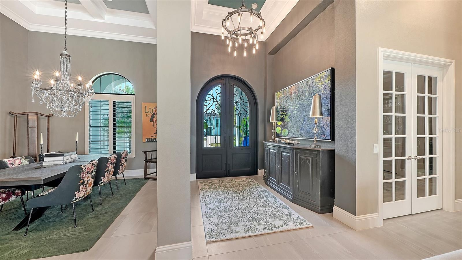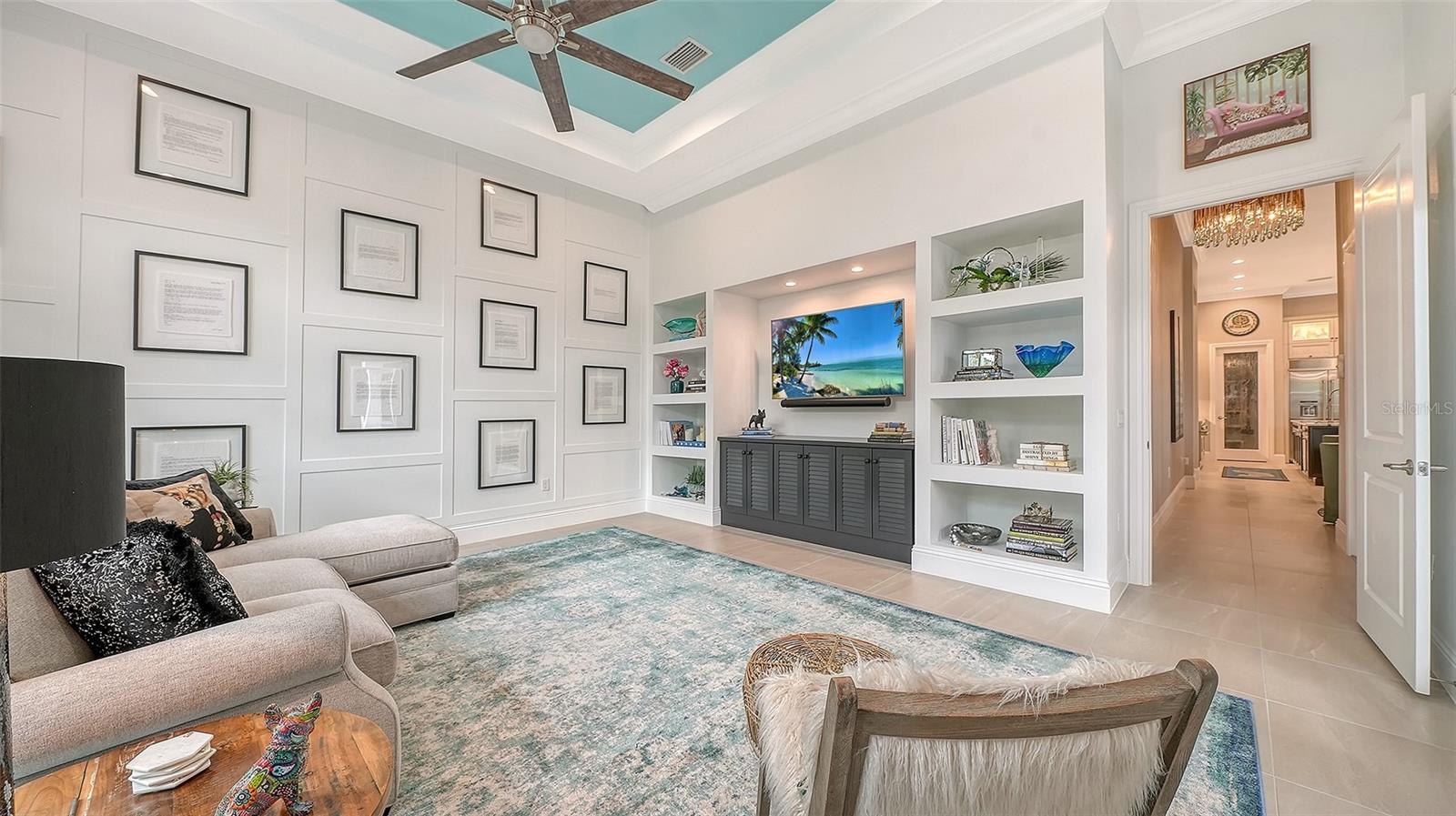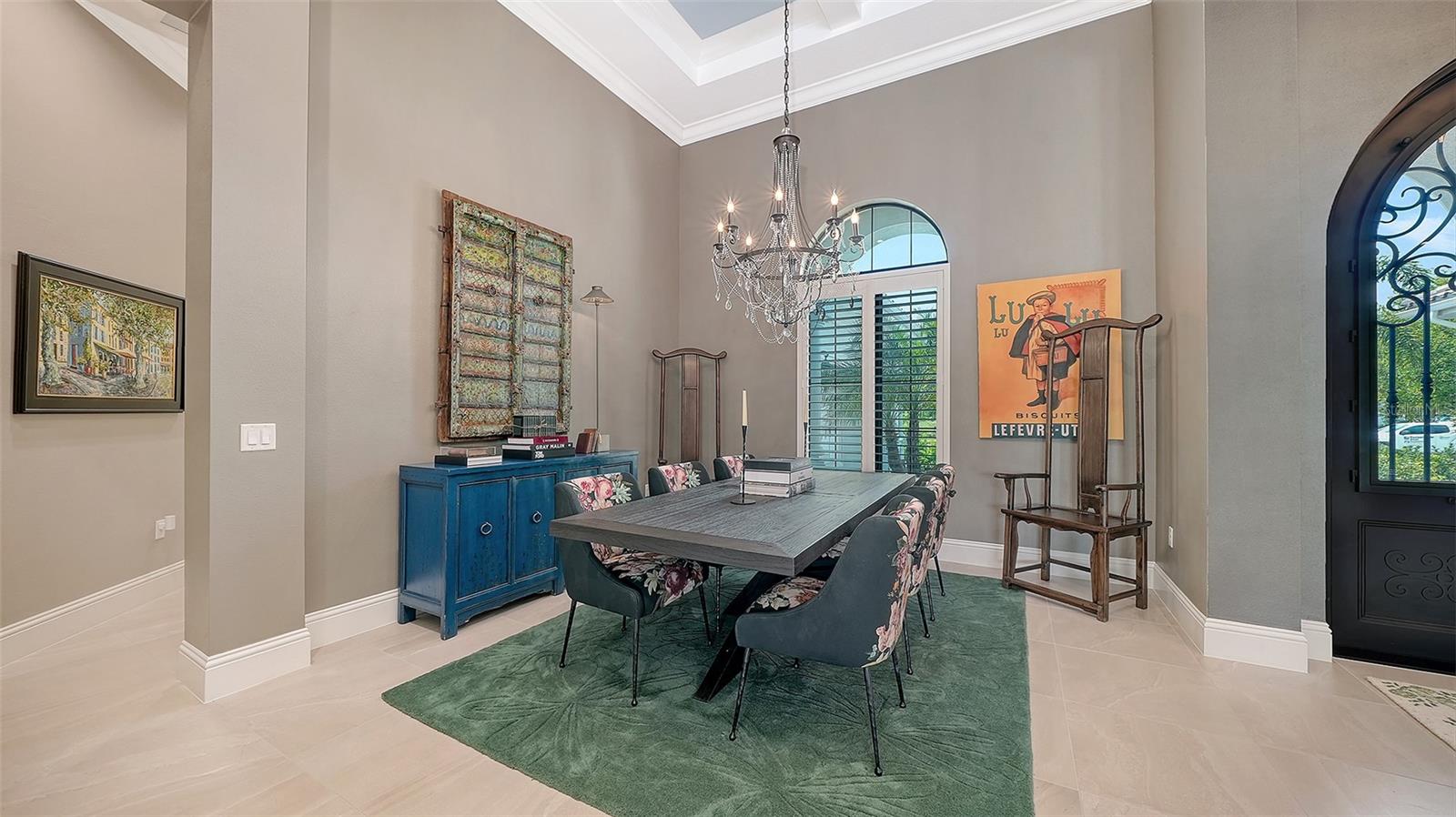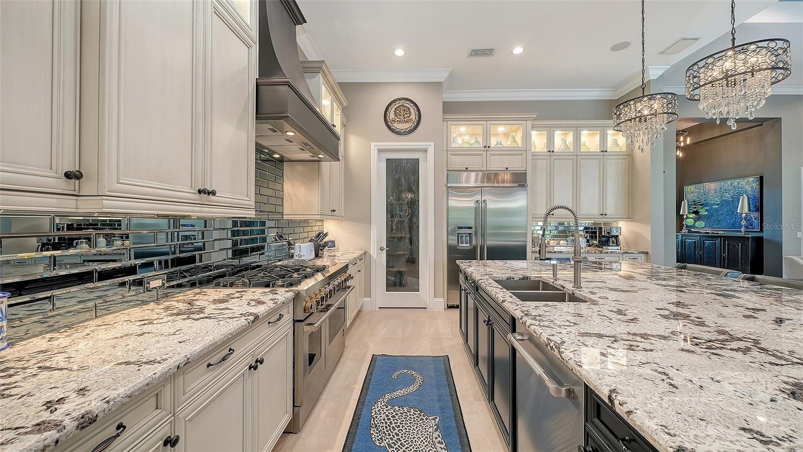 Exquisitely customized Stock Signature residence set on an expansive, ultra-private two-thirds acre homesite within the prestigious, guard-gated enclave of The Lake Club. Architecturally distinctive and masterfully curated, this 3-bedroom, 4.5-bath estate showcases exceptional craftsmanship, designer finishes, and an extensive collection of recent high-end upgrades. The resort-inspired grounds are newly landscaped and thoughtfully designed with aluminum fencing, specialty plantings, ambient landscape lighting, and a full irrigation system, offering a tranquil, secluded setting. Hurricane-impact windows and sliding doors, paired with a bespoke solid iron entry door, provide both refined elegance and superior security. The panoramic pool enclosure showcases the resort-style saltwater pool and spa, enhanced with café lighting, programmable LED pool and spa illumination, and a fully appointed outdoor kitchen with beverage cooler and sink, creating an ideal environment for sophisticated alfresco entertaining. Interiors are defined by dramatic architectural ceiling treatments, custom millwork, designer chandeliers, rich crown molding, recessed lighting, and thoughtfully designed window treatments. The entire residence has been freshly repainted inside and out, presenting a pristine and flawless offering. The gourmet kitchen is a showpiece, featuring illuminated upper cabinetry, a striking smoked mirror glass backsplash, custom range hood, seamless one-piece granite island, updated sink and faucet, refined hardware, under-cabinet and pendant lighting, and newly refinished cabinetry. Living and entertaining spaces are enriched with custom crafted built-ins, tailored lighting, plantation shutters in the dining room, plush new carpeting in guest suites, and two private executive offices with custom cabinetry and French doors. The versatile bonus room offers elegant flexibility as a media room or additional guest suite. The sumptuous primary suite includes a reimagined, expanded couture closet with custom cabinetry, new carpeting, glass entry doors, and designer lighting. The spa-inspired primary bath boasts new quartz countertops, dual sinks, upgraded fixtures, illuminated custom mirrors, and artfully updated tile. A dramatic, designer powder room provides a striking statement of luxury. Notable enhancements include a whole-house water softener and filtration system, a whole-house Kohler generator and an epoxy floor coated 4-car garage! Residents of The Lake Club enjoy a world-class lifestyle with a grand clubhouse, fine dining and bar, two resort-style pools, state-of-the-art fitness center, Har-Tru tennis courts, pickleball, fishing, and scenic walking trails. Ideally positioned in Lakewood Ranch’s most exclusive neighborhood, this exceptional estate is moments from premier shopping, dining, top-rated schools, and the Gulf Coast’s renowned beaches.