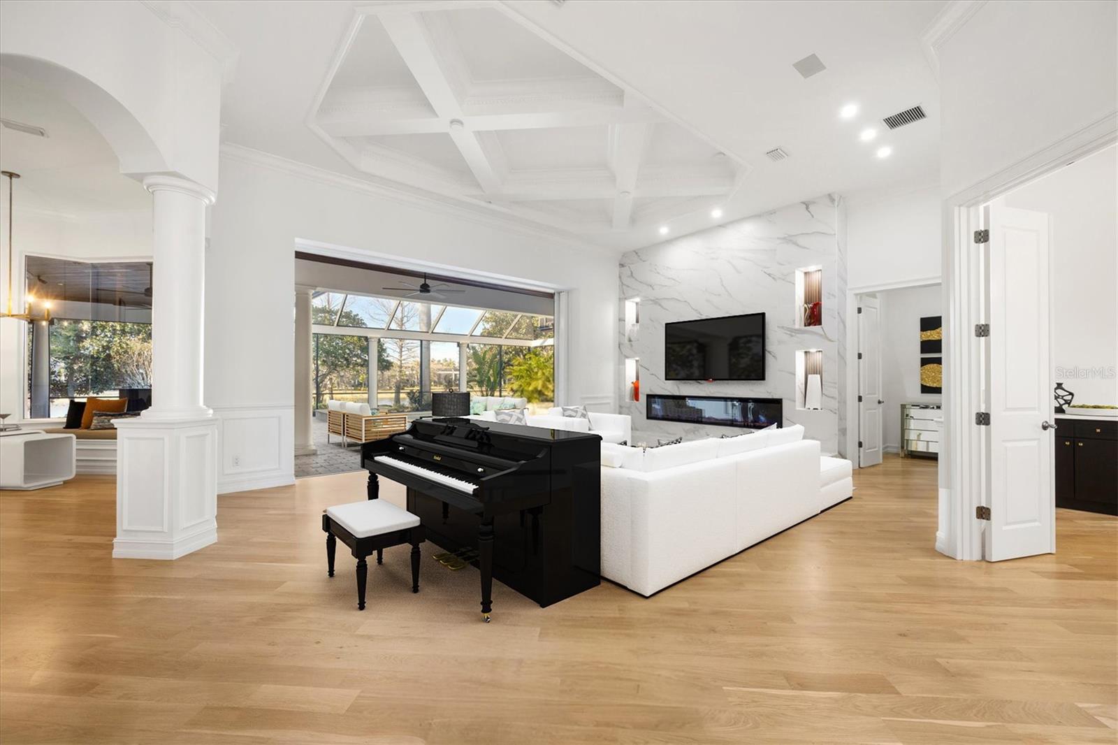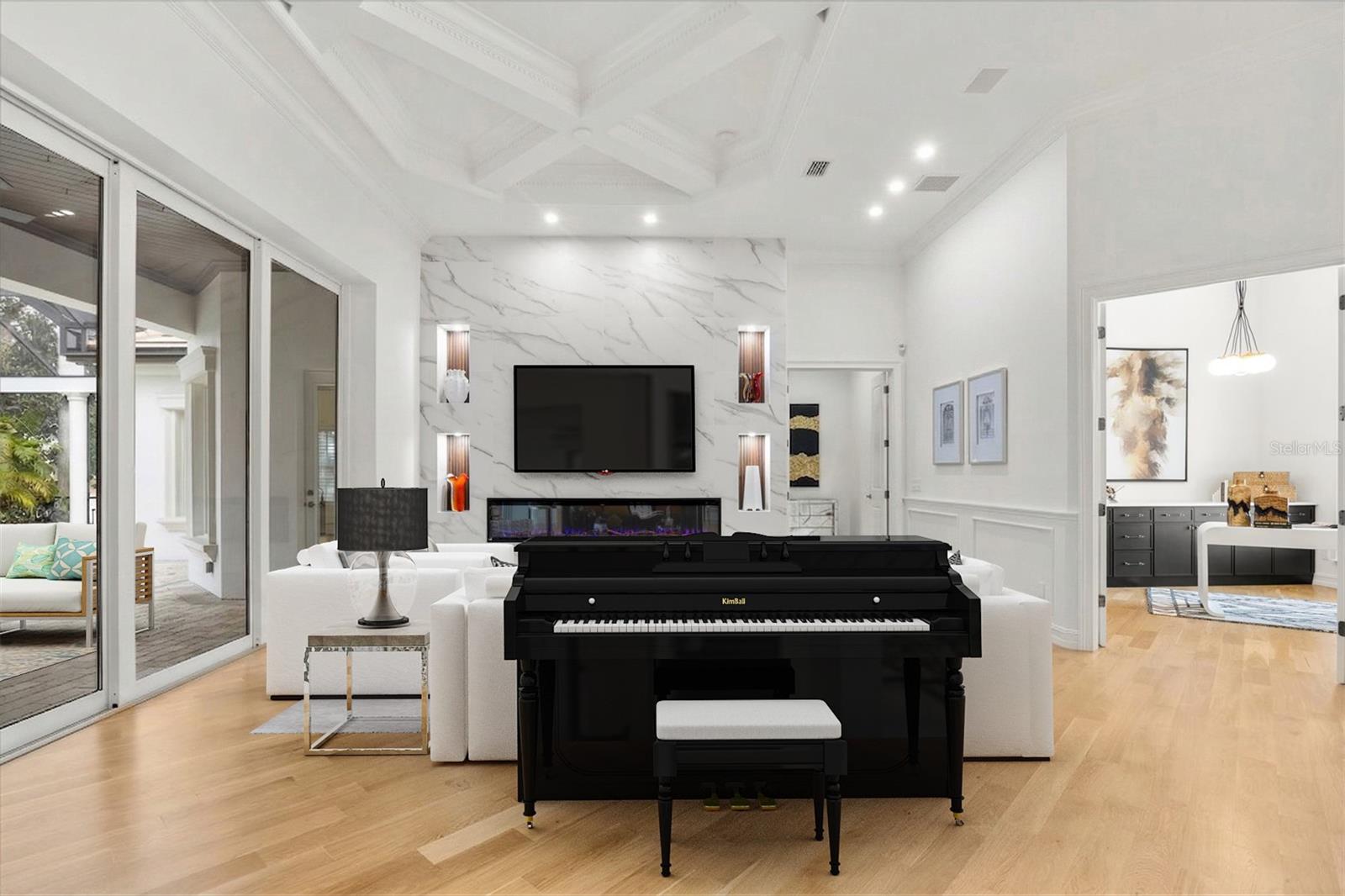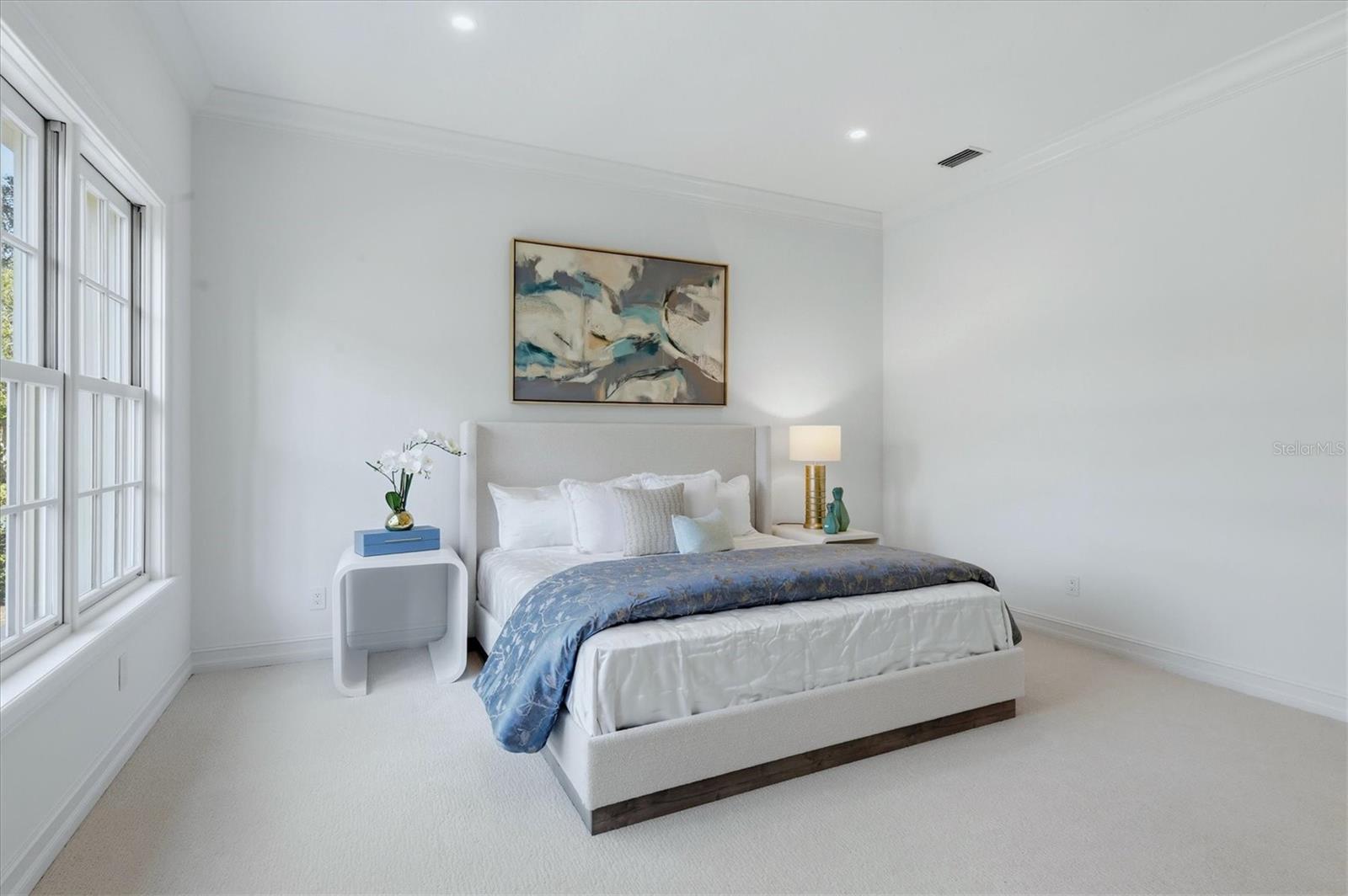 One or more photo(s) has been virtually staged. If you are looking for the BEST VALUE in the Lakewood Ranch, look no further than 7921 Waterton Lane, an exquisite luxury residence in the coveted gated community of THE LAKE CLUB in Lakewood Ranch, where timeless architecture, refined interiors, and shimmering lakefront views create a lifestyle of unmatched serenity and sophistication. Perfectly positioned on one of the community’s most serene streets—and former PRUETT MODEL ON MODEL ROW, walking distance to the world-class amenities! This meticulously maintained residence now offers FOUR bedrooms with their own bathroom! The dedicated office could easily serve as a fifth bedroom option! From the moment you arrive, the home’s stately presence with circular drive, set the tone for the elegance that awaits inside. A grand foyer welcomes you with soaring ceilings, sun-splashed living spaces, and a seamless indoor–outdoor flow that celebrates Florida’s most coveted attribute: year-round resort-style living. The open-concept great room is framed by expansive impact glass sliders showcasing tranquil lake vistas, while refined architectural details—new feature wall with fireplace, crown moldings, coffered ceilings, new designer lighting, and new custom built-ins—enhance the home’s elevated aesthetic. The heart of the home is the gourmet chef’s kitchen, where top-tier appliances, including DOUBLE OVENS, WARMING DRAWER, A SUBZERO COMMERCIAL 2022 FULL REFRIGERATOR & FULL FREEZER, WINE CELLAR FOR 300 BOTTLES, rich cabinetry, a generous center island, new pendant lighting and a walk-in pantry come together to create both beauty and practicality. Whether hosting intimate dinners or entertaining large gatherings, this culinary space offers the perfect backdrop for unforgettable moments. Adjacent, the dining area and living room maximize lake views, creating a soothing ambiance that carries throughout the residence. The primary suite is nothing short of indulgent—complete with panoramic water views, generous sitting room with refreshed built-ins and MORNING BAR WITH DISWASHING DRAWERS MICROWAVE AND MINI FRIDGE, dual custom closets with custom built-ins, separate dressing areaand a spa-inspired bath featuring a large soaking tub, walk-in shower with dual shower heads, dual water closets and dual vanities. Step outside to your private lakefront oasis, where gentle breezes and sparkling water create a calming retreat. The sweeping lanai enhanced with travertine pavers and panoramic screens, offers covered lounging and dining areas, ideal for relaxing afternoons and sunset gatherings. With ample space for future enhancements, this outdoor haven invites you to savor Florida living at its best! Just beyond your doorstep lies everything The Lake Club is celebrated for. Enjoy a short walk to the grand clubhouse, private restaurant, resort pools, state-of-the-art fitness center, tennis facilities, vibrant pickleball courts, dog park and playground! Miles of walking trails, charming bridges, and stunning lakes weave throughout this master-planned paradise, placing luxury living and wellness at the forefront. 7921 Waterton Lane is more than a home—it is a lifestyle of elegance, convenience, and tranquility in Lakewood Ranch’s most elite enclave. Here, every detail has been curated for comfort, beauty, and connection to the breathtaking natural surroundings. Indulge in the privilege of lakefront living within one of Florida’s premier residential communities.