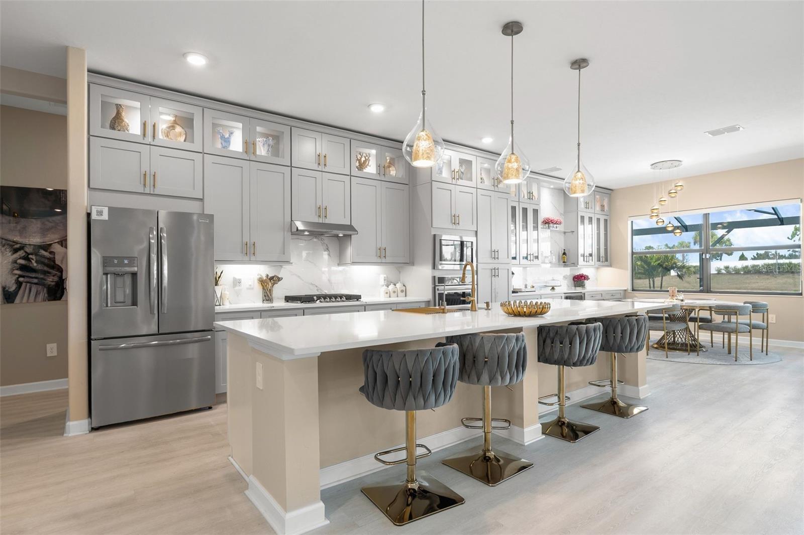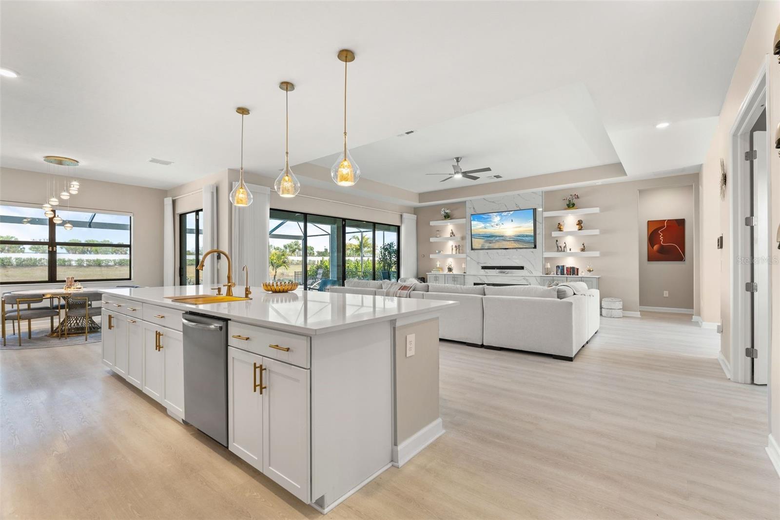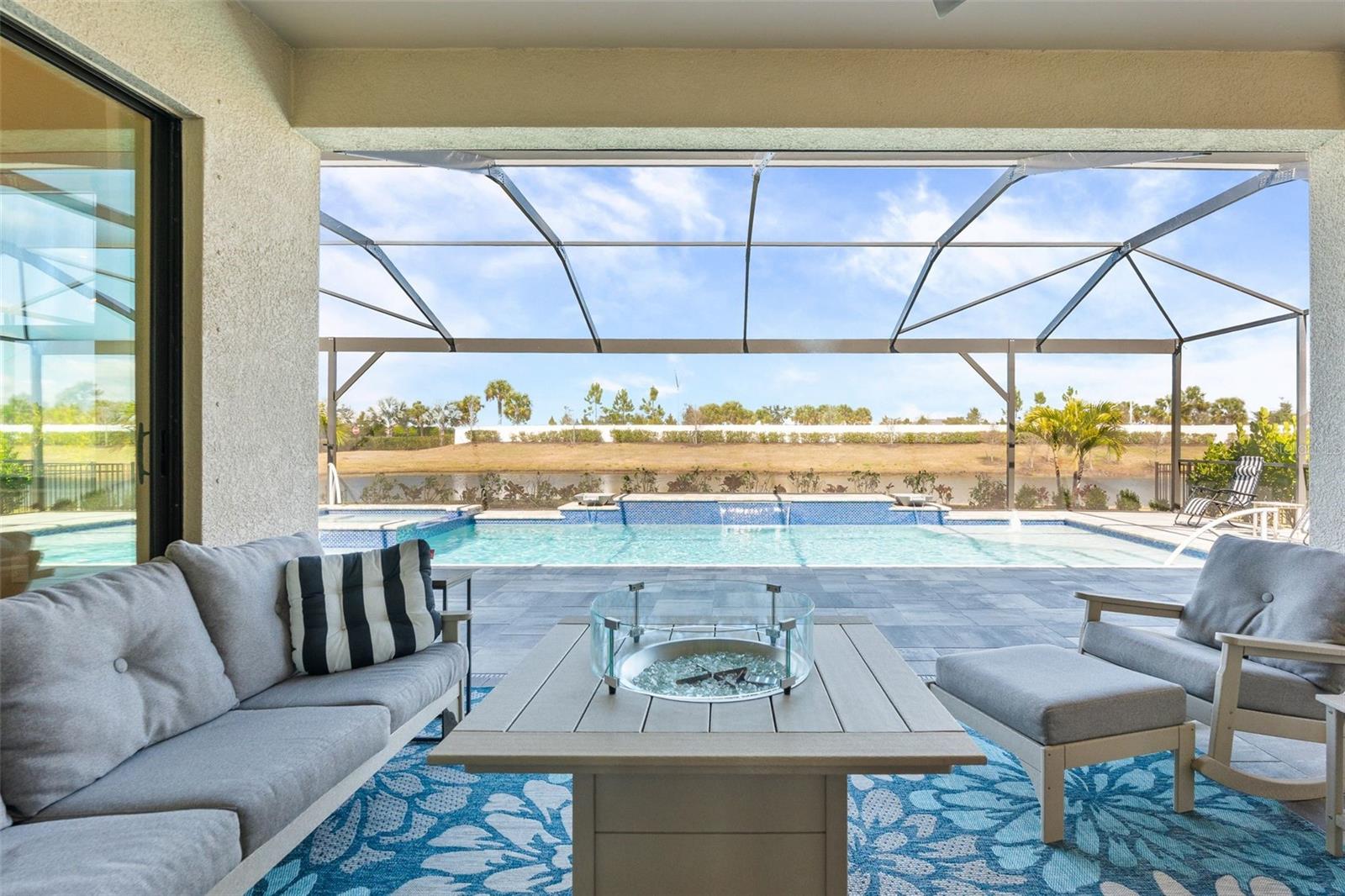 Welcome Home! Located in the highly desirable Lorraine Lakes at Lakewood Ranch, this fully remodeled 3-bedroom, 3-bath home with a den offers one of the community’s most sought-after layouts—the Sunset floor plan. The den provides flexibility and can easily function as a fourth bedroom, home office, or guest space. This home has been completely upgraded beyond the builder’s finishes. The custom kitchen was redesigned with an extended bar that opens into the dining area, creating a more functional and inviting layout for everyday living and entertaining. New luxury vinyl plank flooring runs throughout the home, and the living room features a striking accent wall with an electric fireplace that can be used for ambiance or heat. All three bathrooms have been fully renovated with modern finishes. A custom pool with a water feature was added after closing and anchors the spacious lanai, which offers multiple outdoor seating areas. The backyard overlooks a peaceful pond and is positioned close to the community gate for quick and convenient access. A hurricane screen protects the rear lanai, and the front door is hurricane-impact rated. Additional features include a full reverse osmosis water filtration system, a three-car garage with excellent storage space, and the rare benefit of being sold fully furnished—everything stays, allowing new owners to move right in with just their suitcases. Lorraine Lakes offers a full resort-style lifestyle with amenities that include multiple pools (including a resort pool), playgrounds, splash pads, tennis, pickleball and basketball courts, a clubhouse, café, full indoor/outdoor restaurant, state-of-the-art fitness center, arcade, multipurpose workout rooms, and a full-time events director who plans activities for residents year-round. Ideally located near Sarasota, downtown Lakewood Ranch, Waterside Place, Gulf Coast beaches, shopping, dining, and with easy access to Interstate 75 for travel to St. Petersburg and Tampa. Zoned for excellent schools and set within a gated community, this home offers both comfort and convenience in one of Lakewood Ranch’s most popular neighborhoods.