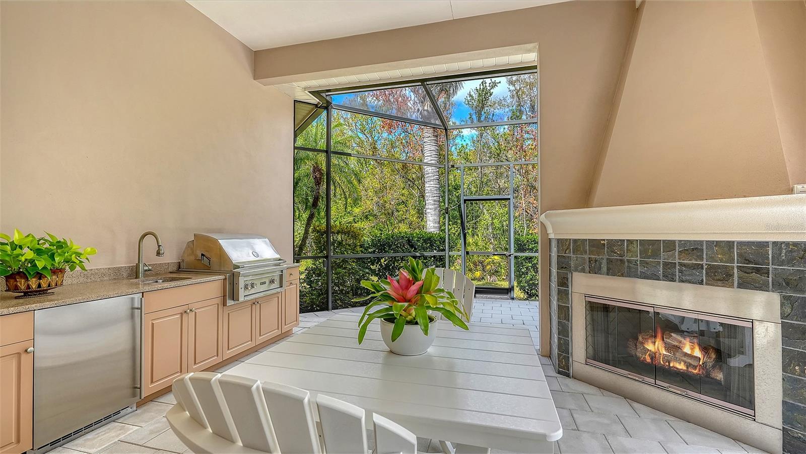 Pristine and timeless design, this Arthur Rutenberg styled and built home is nestled in the Quail Creek neighborhood in Lakewood Ranch Country Club. Set on a generous corner homesite just shy of half an acre on a quiet cul-de-sac, the property enjoys preserve views and a huge lanai with heated saltwater pool and spa. 4 bedrooms plus an office/den (or optional 5th bedroom), 3 full baths and 1 half bath, this thoughtfully designed split floor plan offers both privacy and functionality. Elegant yet inviting with soaring 12-foot ceilings, crown molding, tray ceilings, and elegant columns. Two separate living areas provide flexibility for everyday living and entertaining. Two fireplaces - gas in the living room and a wood-burning fireplace on the lanai. The chef’s kitchen is a true showpiece, appointed with custom solid wood cabinetry, granite countertops, travertine backsplash, large center island with prep sink, breakfast bar seating, and premium stainless-steel appliances including a Sub-Zero refrigerator and Wolf gas range and convection oven. A butler’s bar connects seamlessly to the formal dining room, complemented by an oversized walk-in pantry. The expansive family room boasts two walls of pocketing sliding glass doors, blending indoor and outdoor living. The primary suite is a serene retreat with private lanai access, two custom walk-in closets, and a spa-inspired bath featuring separate vanities, soaking tub, and a walk-in shower. Two guest bedrooms are privately tucked behind a pocket door with a shared full bath, while an additional bedroom and full bath are located at the rear of the home for added privacy (would make a great 2nd primary suite). Step outside to the beautifully appointed lanai featuring a summer kitchen with built-in stainless gas grill, refrigerator, and sink. Enjoy two covered seating areas, fireplace, saltwater heated pool, and spa. Pool resurfaced (2019), heater (2020) and pump and control board (2023). Perfect for year-round entertaining. Spacious laundry room with ceiling-height cabinetry, utility sink and washer and dryer. 3-car garage with epoxy flooring. A/C systems replaced in Dec 2022 and Dec 2024. Located behind the gates of Lakewood Ranch Country Club, residents enjoy access to championship golf, tennis and pickleball courts, state-of-the-art fitness center, resort-style pools, fine dining, and a vibrant social calendar. Just minutes from top-rated schools, The Mall at UTC, Lakewood Ranch Main Street, Waterside Place, and the renowned beaches and cultural attractions of the Sarasota/Bradenton area. An exceptional property that embodies Florida living at its finest.