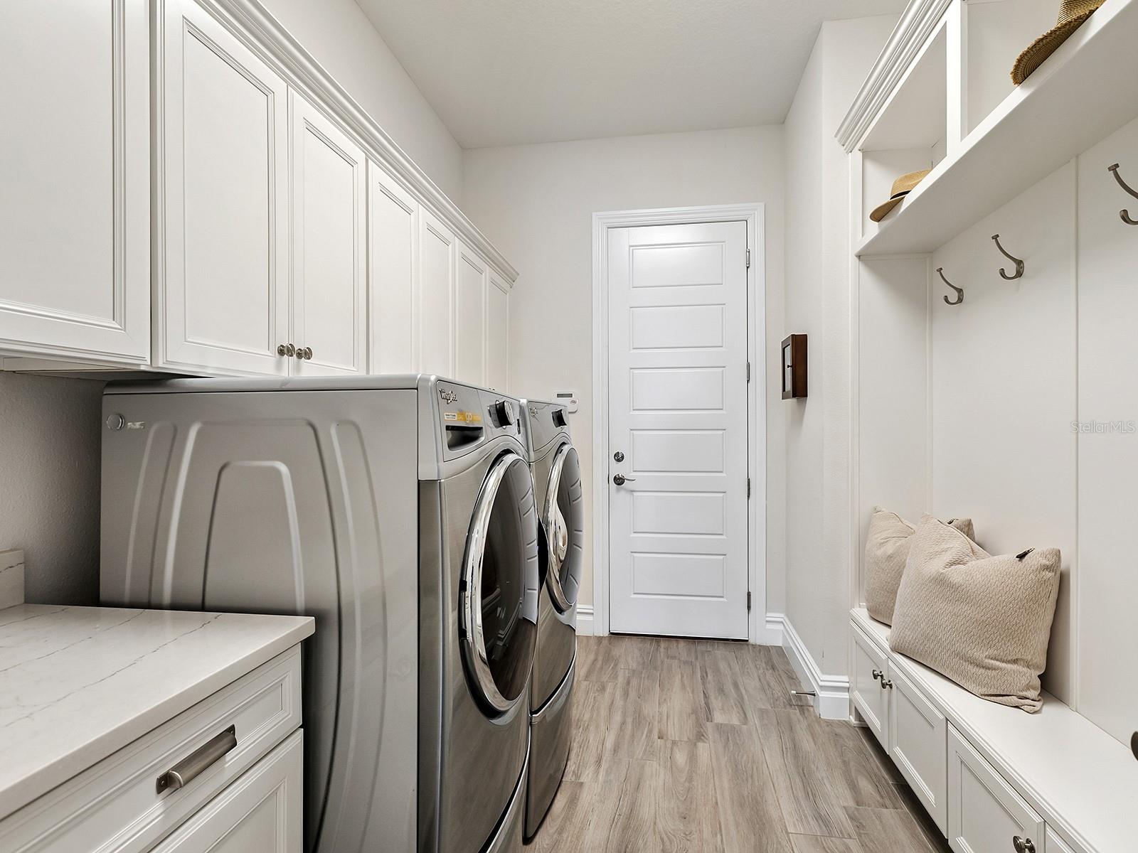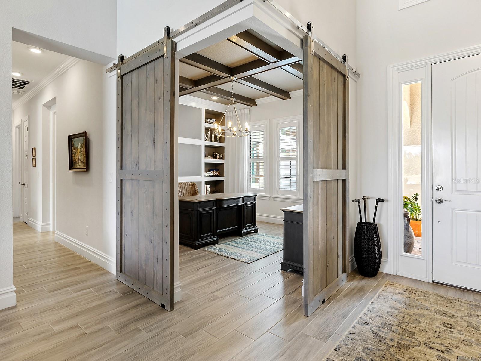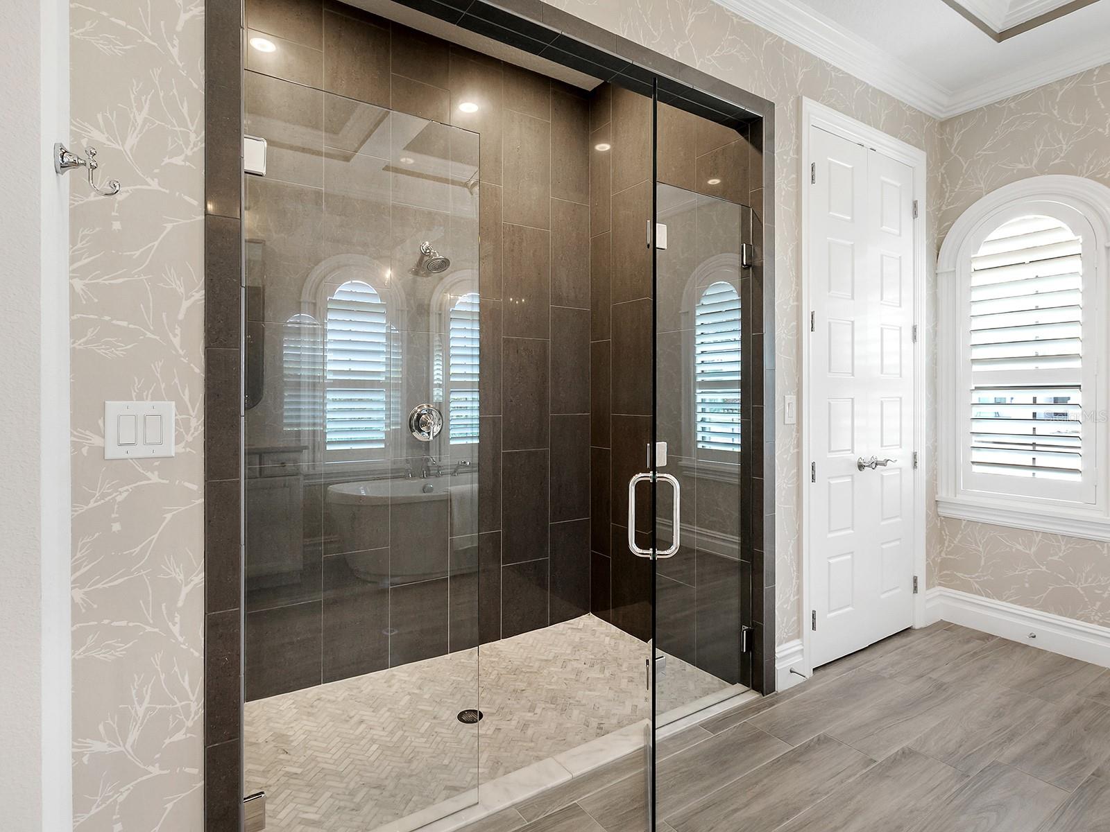 Exquisite, lakeside living is within reach at Country Club East in Lakewood Ranch! Located in the Collingtree section, this home is the former award-winning Toriana model home, representing the very best that Cardel Homes has to offer with sublime upgrades adorning every room. The meticulous landscaping (grounds maintenance included in HOA) welcomes you home with towering palms, wide paver driveway and custom Mizner-inspired exterior. In the foyer with 16' coffered ceiling you’re met with the first glimpses of elegant upgrades present throughout the entire home including wood look porcelain plank tile flooring, bright and light filled interior with lots of windows and sliders, warm accents, custom window treatments, and designer light fixtures. The central great room showcases a feature wall with custom molding and sconce lighting; and tray ceiling with crown molding, exposed beams, and large modern ceiling fan that also extends into the kitchen creating a cohesive entertaining floor plan. The upgraded kitchen sparkles with a central island of extra-thick stone counters and counter height seating; abundant cabinetry including extra uppers, soft close drawers, pull-outs, and vertical storage; stainless steel apron sink; and walk-in pantry with shelving. Chefs will love using the upgraded stainless steel appliance suite with Wolf gas cooktop, Wolf built-in microwave and wall oven set, and Sub-Zero refrigerator. Enjoy your meals in the formal dining with a full wall of windows that maximize the lake views for an elegant dining experience every day. Through sliding glass doors is the expanded paver lanai with over 90 feet of northern lake views, taking advantage of soft sunlight throughout the day while remaining cooler than other exposures. The main covered entertaining area off the great room offers an expertly equipped outdoor kitchen and two spaces to relax and dine; while the second off the bonus room has a cozy fireplace and remote-controlled hurricane and shade screens. The heated pool and spa with water feature are perfectly positioned to take in the lake views. The primary suite is a comforting and expansive space with tray ceiling, separate seating area, dual walk-in closets, French door leading to the lanai, and vestibule entry with morning bar. The en-suite primary bath offers his and hers dual vanities, designer wallpaper, triple tray ceiling, freestanding tub, oversized walk-in shower with frameless glass and floor-to-ceiling tile. Guests will savor their own accommodations with two guest bedrooms and two full guest bathrooms. When you need to work or crave some privacy, the study is the ideal place with custom disappearing corner barn doors, exposed beam ceiling, and built-in shelving. The rear bonus room with sliding glass doors to the lanai is truly a versatile space that can be used as a media room, play room and more. Additional spaces include a laundry room with extra cabinetry and mudroom built-ins, and oversized 2-car garage that has a large storage area. Enjoy the country club lifestyle in gated Country Club East with 3 community pools, fitness center, clubhouse, walking trails, social events and more. If you’re looking for additional amenities, membership to Lakewood Ranch Golf and Country Club is available for access to 3 Clubhouses, 4 championship 18-hole golf courses, fitness center with pool, tennis and pickleball courts. Lakewood Ranch is the top multi-generational community in the country for 8 years in a row.