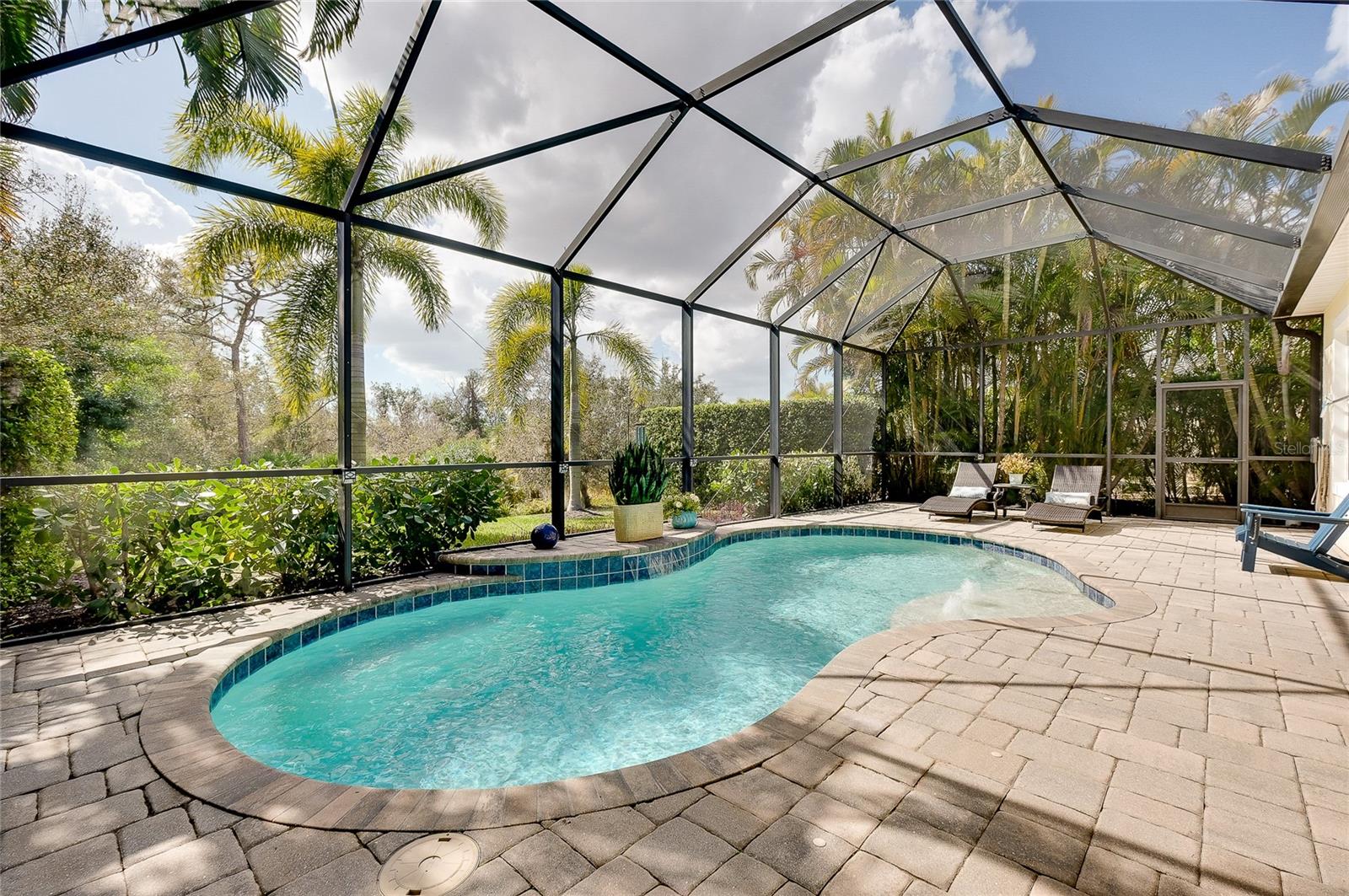 Located in the maintenance-free enclave of Edenmore behind the gates of Lakewood Ranch Country Club. This exceptional Neal Avignon floor plan offers refined living on an oversized 13,647 sq. ft. homesite with private serene preserve views. Designed to maximize natural light, the home features graceful curved architectural details and an elegant open flow. With over 2,000 sq. ft., the great room floor plan includes 3 bedrooms, 2.5 baths, and a versatile bonus room/den. The open-concept kitchen is beautifully updated with stainless steel appliances, natural stone countertops, a butler’s pantry with wine refrigerator, and a charming breakfast nook—perfect for both everyday living and entertaining. The spacious primary suite offers French doors opening to the lanai, large two closets, dual vanities, and a walk-in shower. Pocketing sliding glass doors (upgraded with solar film) create seamless indoor-outdoor living and open to an expansive lanai featuring an outdoor kitchen and a saltwater pool with solar heating and custom color lighting. Additional highlights include a brick paver walkway with lush landscaping, etched glass front door, crown molding, tray ceilings, gas hookup, laundry room with upper cabinetry and utility sink, and an extended two-car garage with dedicated golf cart space. Edenmore offers maintenance-free living with a private community pool. Lakewood Ranch Country Club residents also enjoy access to scenic paths around Lake Uihlein leading to Lakewood Ranch Main Street. Optional club membership provides championship golf, tennis, dining, and vibrant social amenities.
