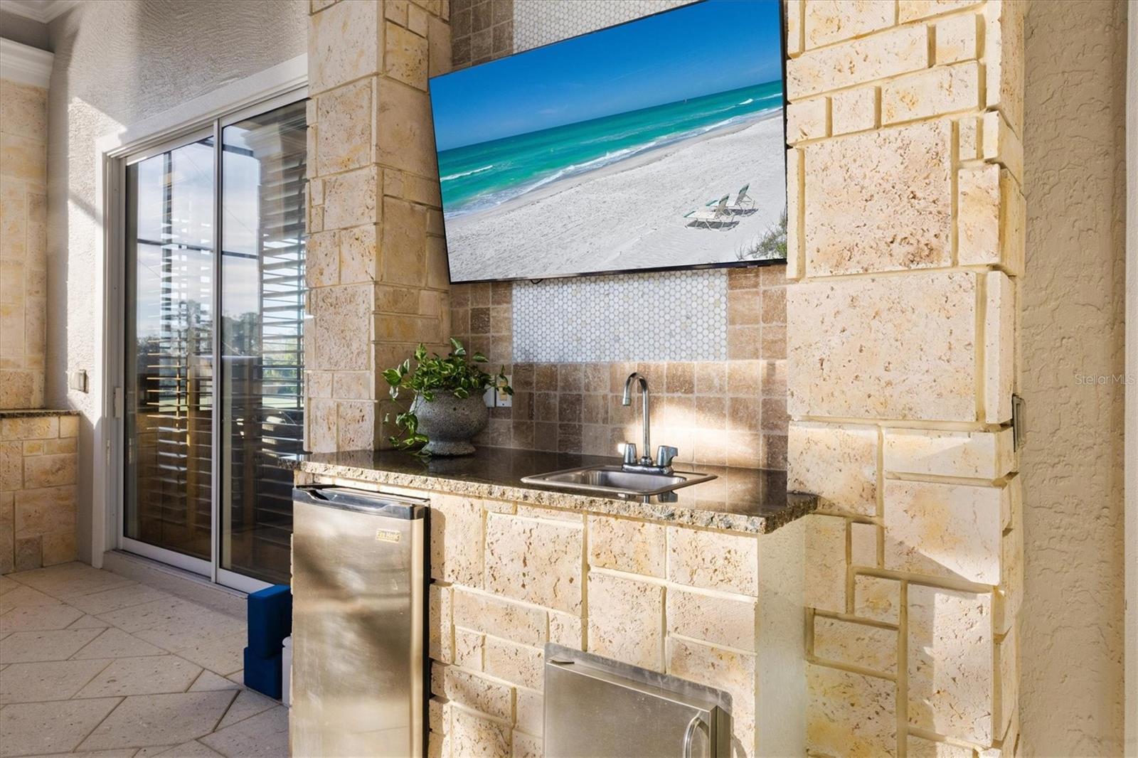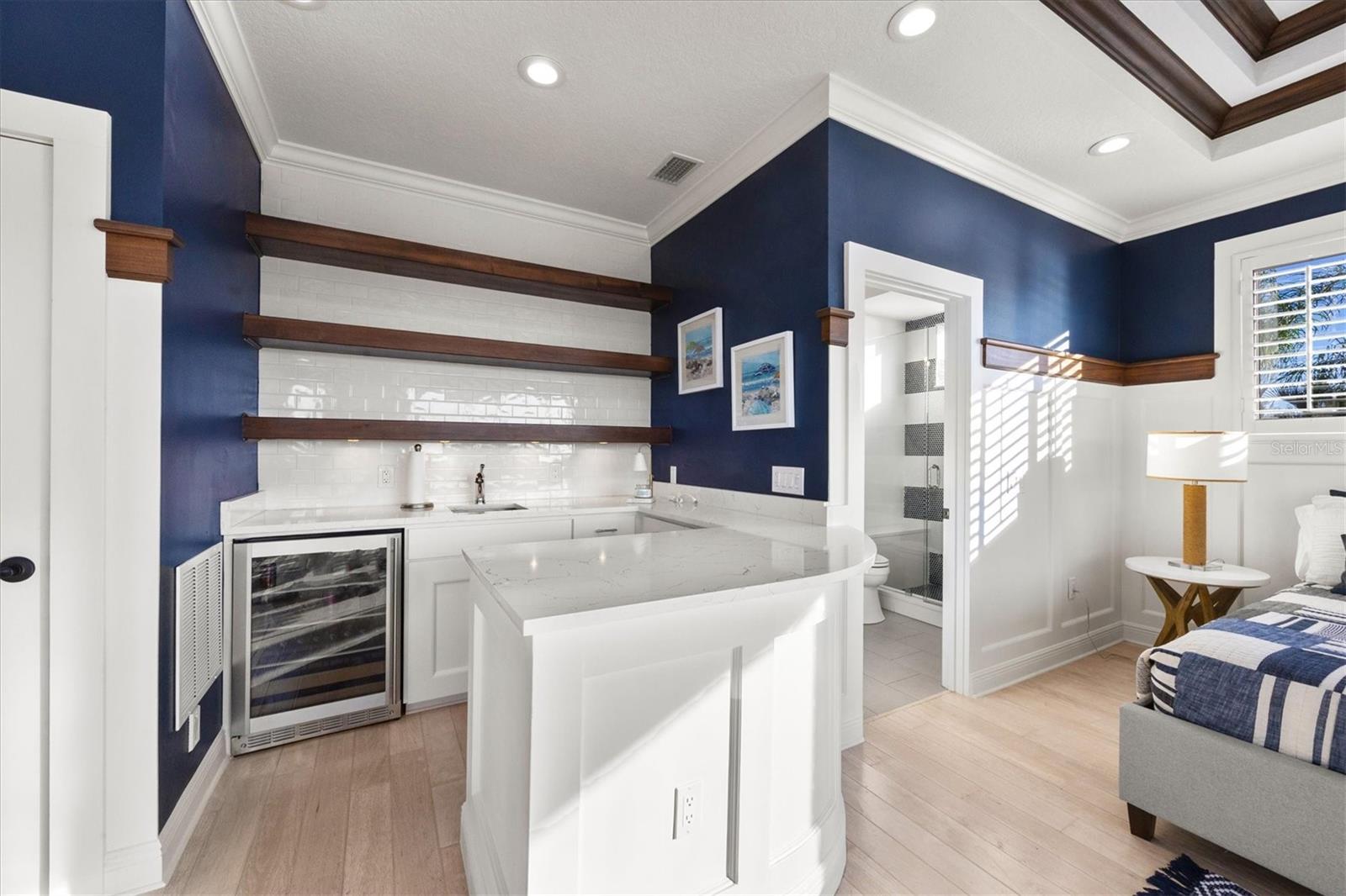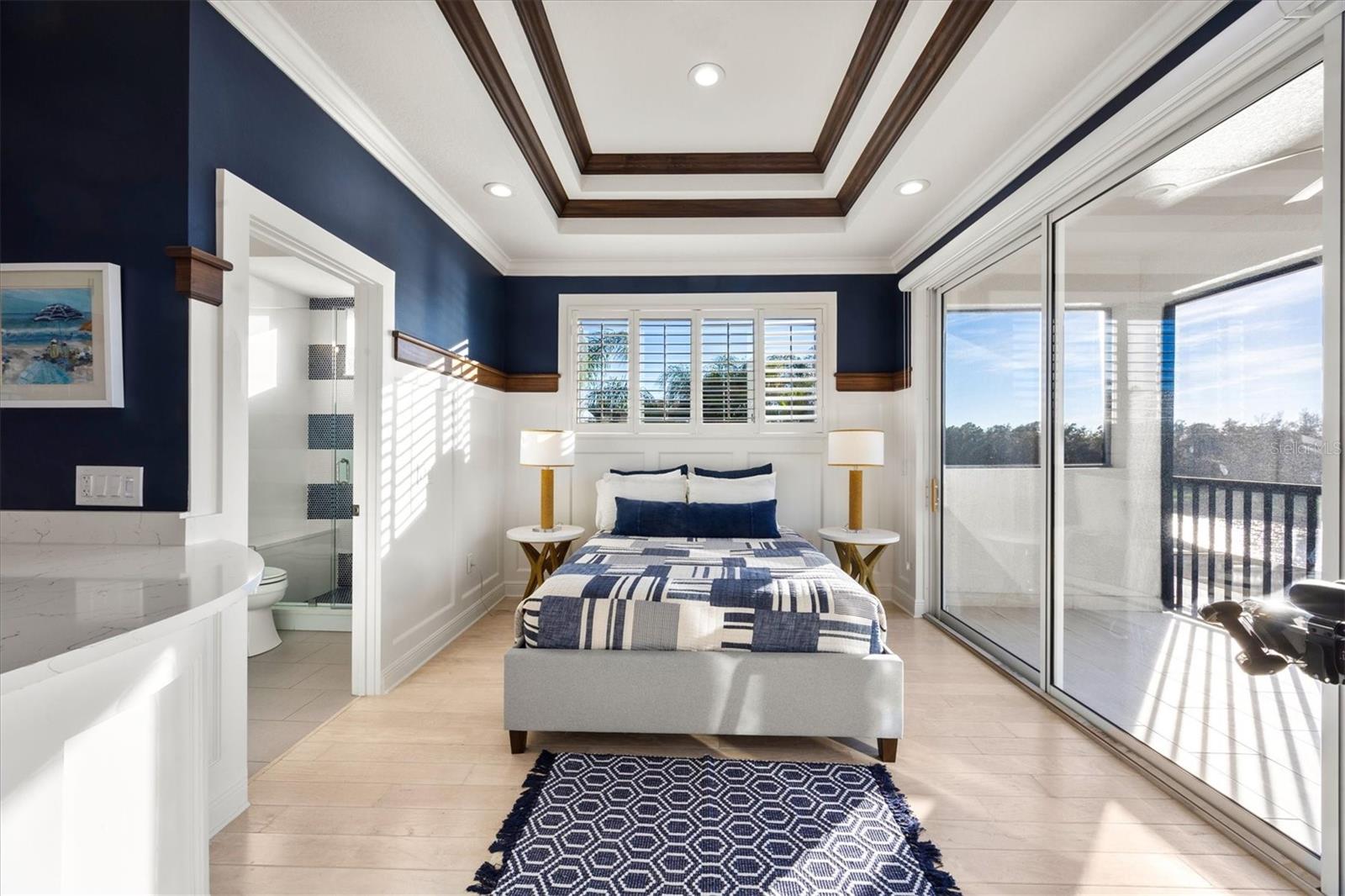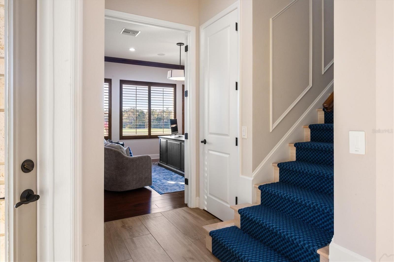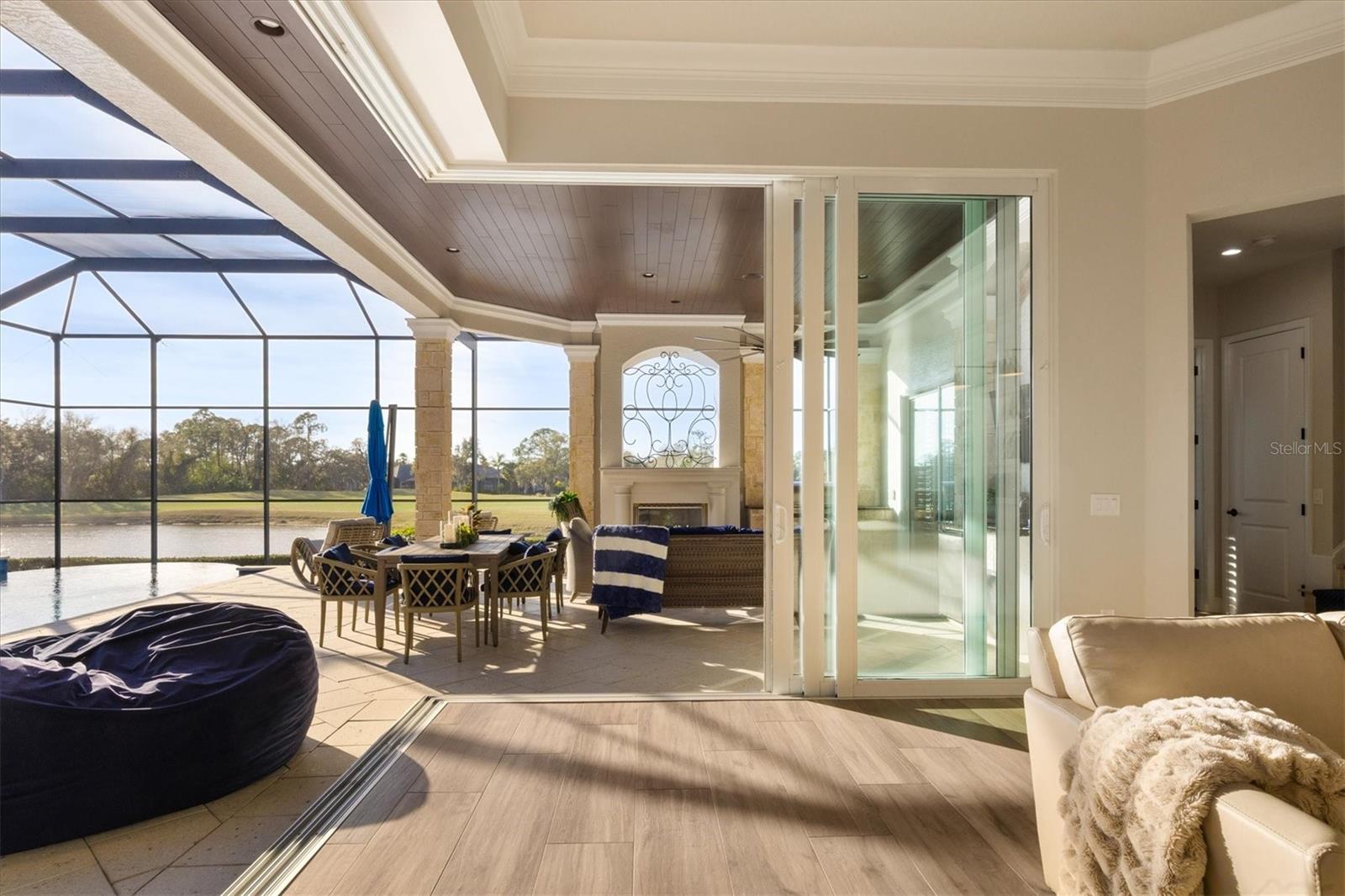 Located within the prestigious, maintenance-free Greystone enclave of the Lakewood Ranch Country Club, this completely remodeled residence offers three bedrooms, four-and-a-half baths, a private office, and an expansive upstairs bonus guest retreat — all positioned to capture sweeping, unobstructed golf course views. Meticulous landscaping and a pavered driveway create a striking first impression, leading to a welcoming front porch and custom wood entry door. Inside, stunning wood-look plank porcelain tile flows seamlessly throughout the main living areas, complemented by architectural details at every turn — tray ceilings, crown molding, designer lighting, and refined millwork that elevate the home with timeless elegance. A formal seating area framed by an aquarium window overlooks the sparkling pool and lush fairways beyond welcoms you home. Architectural wood beams accent the ceiling while a gas fireplace with coastal detailing creates a warm focal point. A dedicated formal dining room provides an elegant setting for hosting gatherings both intimate and grand. The heart of the home is a beautifully appointed chef’s kitchen featuring quartz countertops, updated appliances, a generous prep island, breakfast bar seating, abundant cabinetry, and a dry bar with wine refrigerator. An inviting breakfast nook, enhanced by an aquarium window, captures tranquil views of the lanai and golf course. The adjacent family room is rich with character, showcasing warm wood tones in tongue-and-groove planks within the tray ceiling, custom built-ins, and disappearing corner sliders that fully open to the lanai — seamlessly blending indoor and outdoor living. The oversized primary suite serves as a private sanctuary, complete with tray ceiling detailing, dual walk-in closets, and a spa-inspired bath offering a soaking tub, walk-in shower, and split vanities. Two additional guest bedrooms each feature their own en-suite bath, ensuring privacy and comfort for family and visitors. The bright, oversized office is both functional and refined, highlighted by a rich, warm, wood built-in wall with shelving and custom cabinetry — a sophisticated and inspiring workspace. Upstairs, the expansive bonus room with full bar and full bath offers exceptional flexibility as a guest suite, fourth bedroom, or entertainment retreat, complete with its own private balcony overlooking the picturesque golf course. Outdoor living is nothing short of spectacular. The oversized lanai features a rich wood plank ceiling, gas fireplace, fully equipped outdoor kitchen, and generous spaces for dining, lounging, and entertaining. A heated pool and spa are perfectly positioned to capture breathtaking panoramic golf course views, creating a private resort-style setting. Residents of Lakewood Ranch Country Club enjoy an elevated country club lifestyle with championship golf courses, tennis and pickleball courts, fitness facilities, resort-style pools, fine and casual dining, and a vibrant social calendar — all within close proximity to shopping, dining, top-rated schools, and the Gulf Coast’s world-renowned beaches.