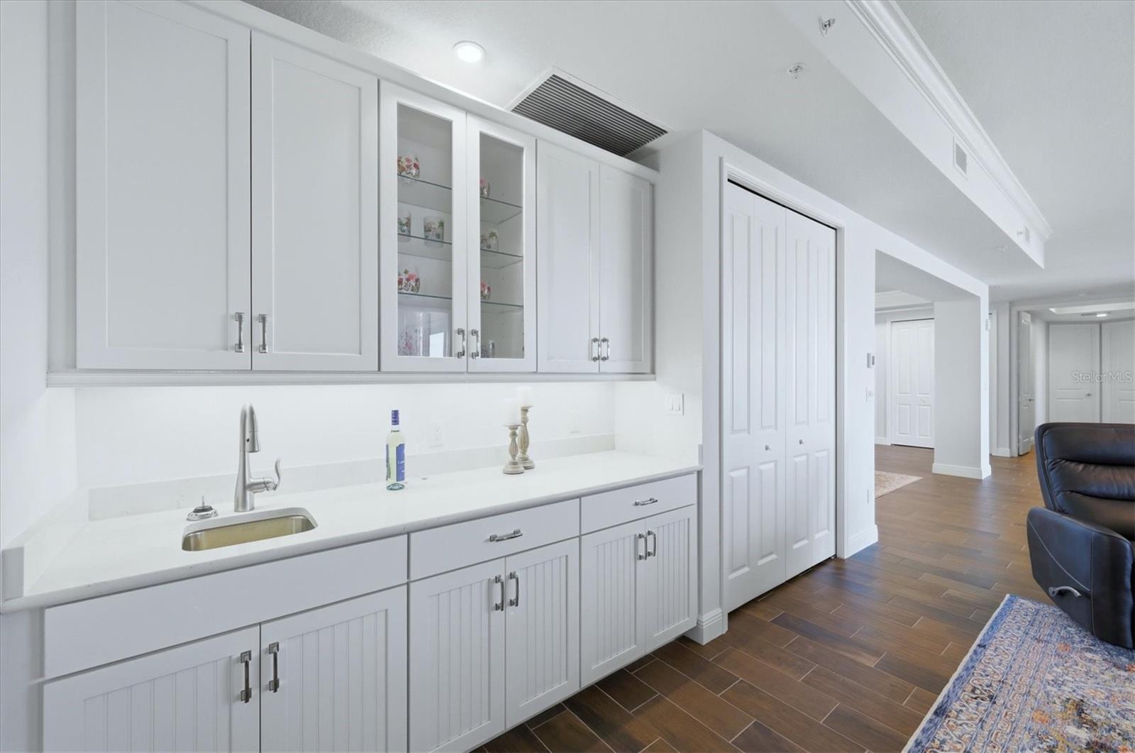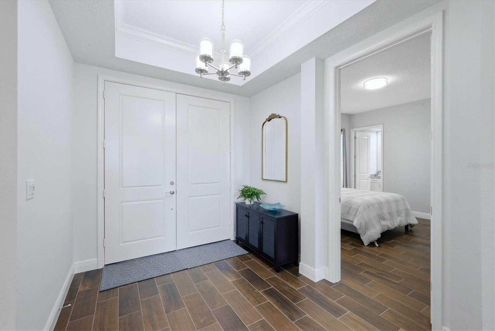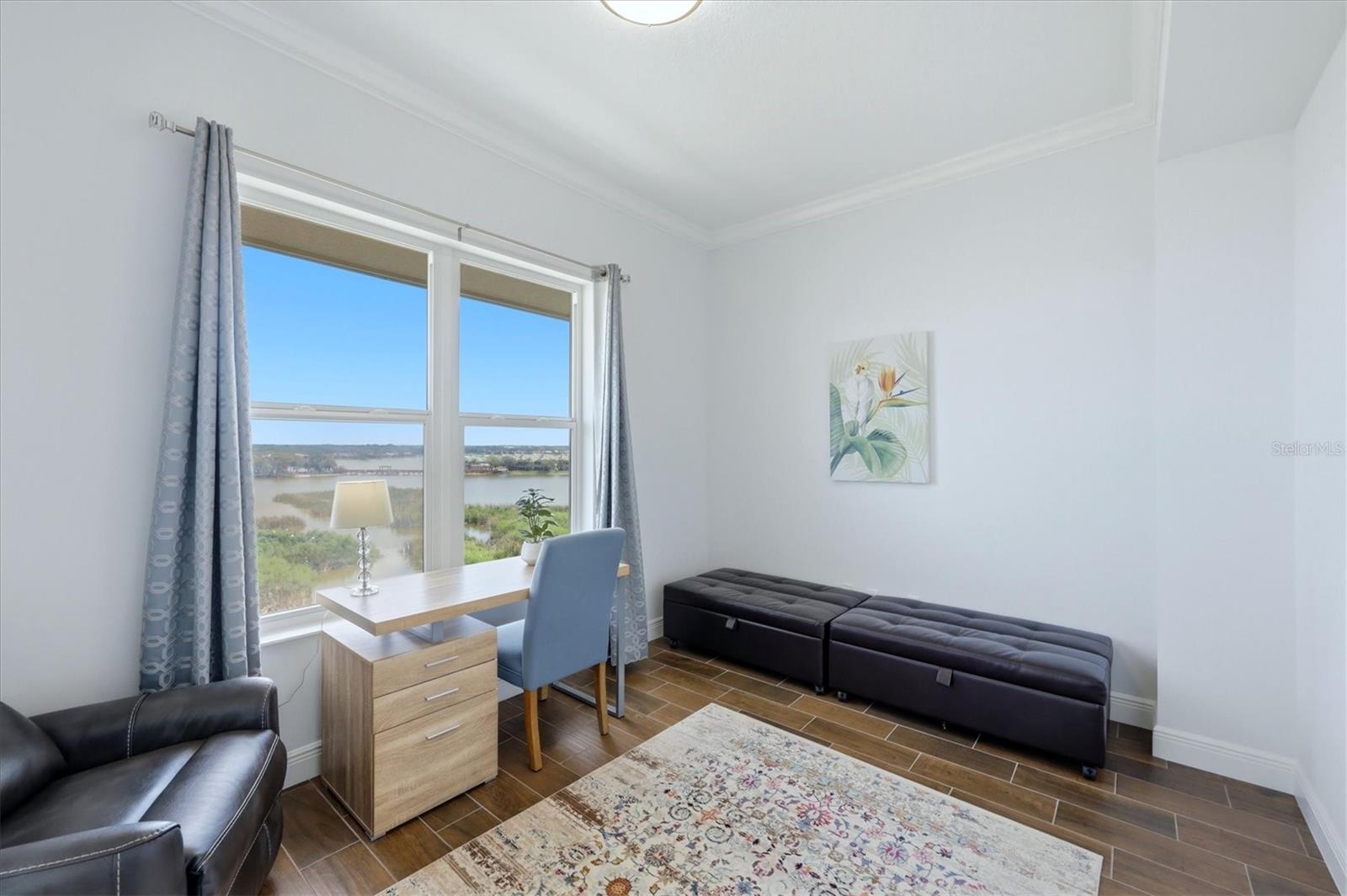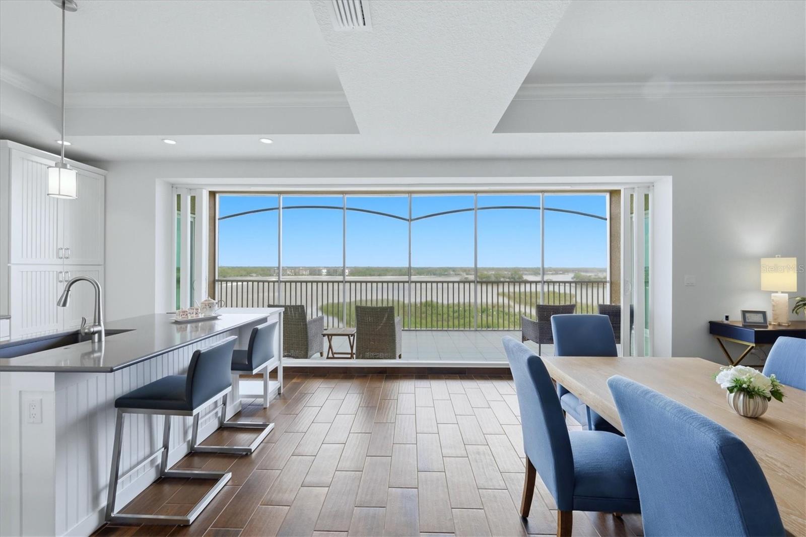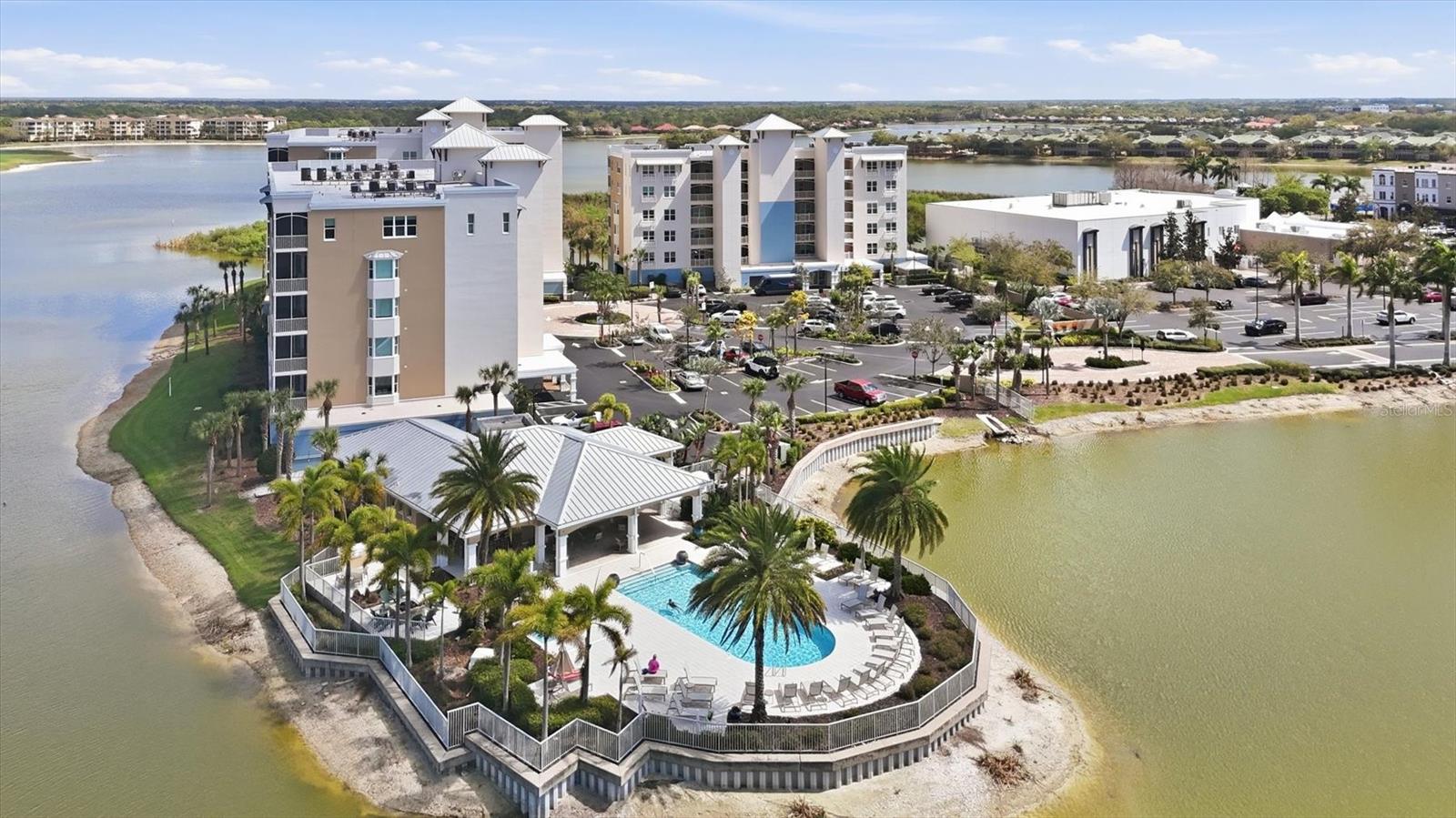 Rare penthouse opportunity at Waterfront at Main in Lakewood Ranch. This stunning 3-bedroom, 3.5-bath + den residence offers elevated luxury living with expansive water views and an exceptional location just steps from Lakewood Ranch Main Street. Designed with an open, light-filled floor plan, the home features high ceilings, designer finishes, and floor-to-ceiling sliding glass doors that open to a spacious screened balcony overlooking Lake Uihlein; perfect for enjoying breathtaking sunrises and tranquil waterfront scenery. The gourmet kitchen is beautifully appointed with quartz countertops, custom cabinetry, premium stainless steel Monogram appliances, and a large center island ideal for entertaining. The spacious primary suite serves as a private retreat with balcony access, walk-in closets, and a luxurious spa-inspired bath with dual vanities and a walk-in shower. Each additional bedroom includes its own en-suite bath, providing comfort and privacy for family or guests, while a convenient powder bath serves the main living area. Additional highlights include a separate den/study area, storage locker, and secure under-building parking. Residents enjoy resort-style amenities including a lakefront pool and spa, fitness center, clubhouse, outdoor fire pit, and gated entry. Ideally located just steps from restaurants, shopping, entertainment, and community events on Main Street, this penthouse offers the perfect blend of luxury, convenience, and vibrant Lakewood Ranch living.