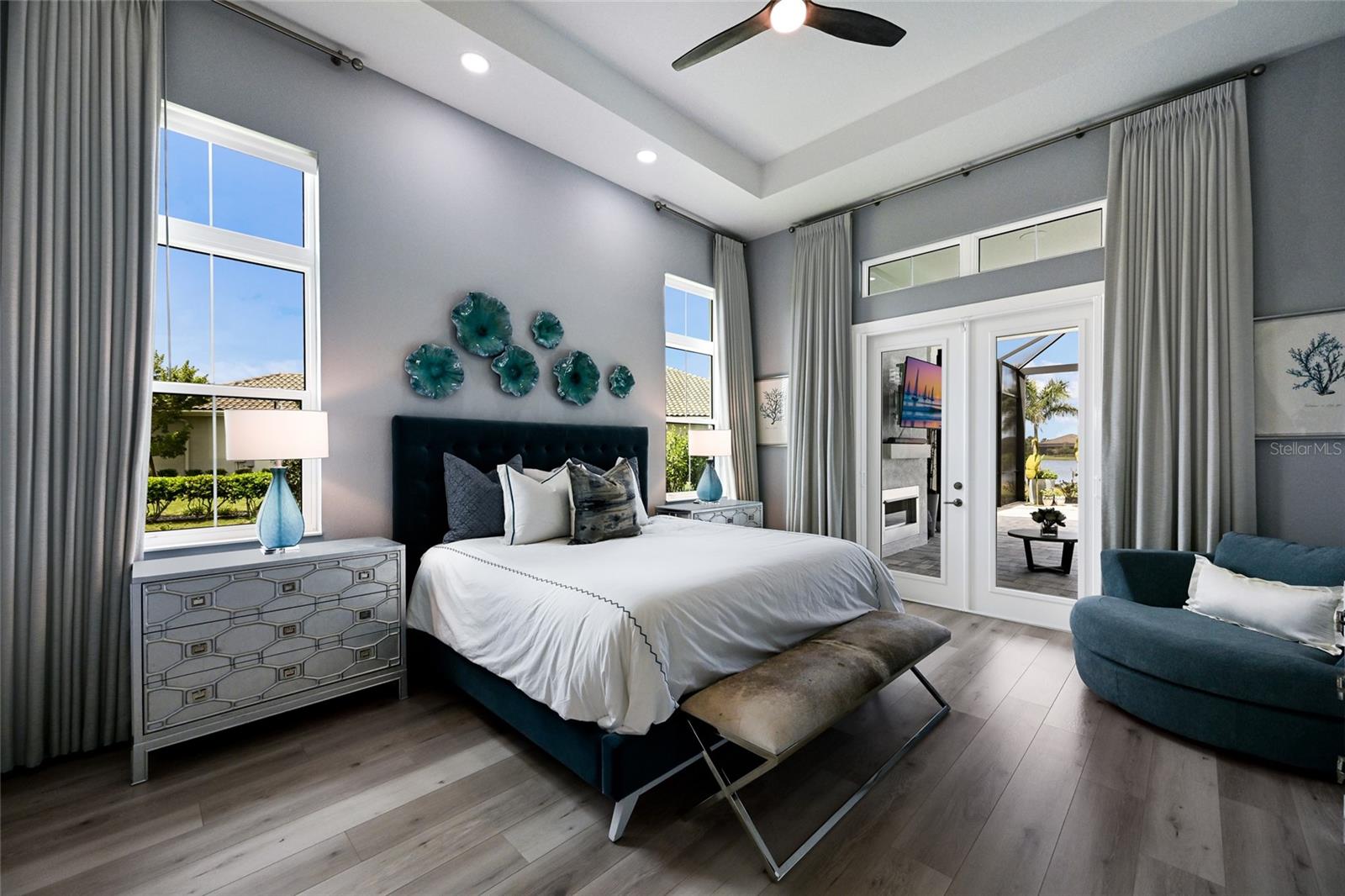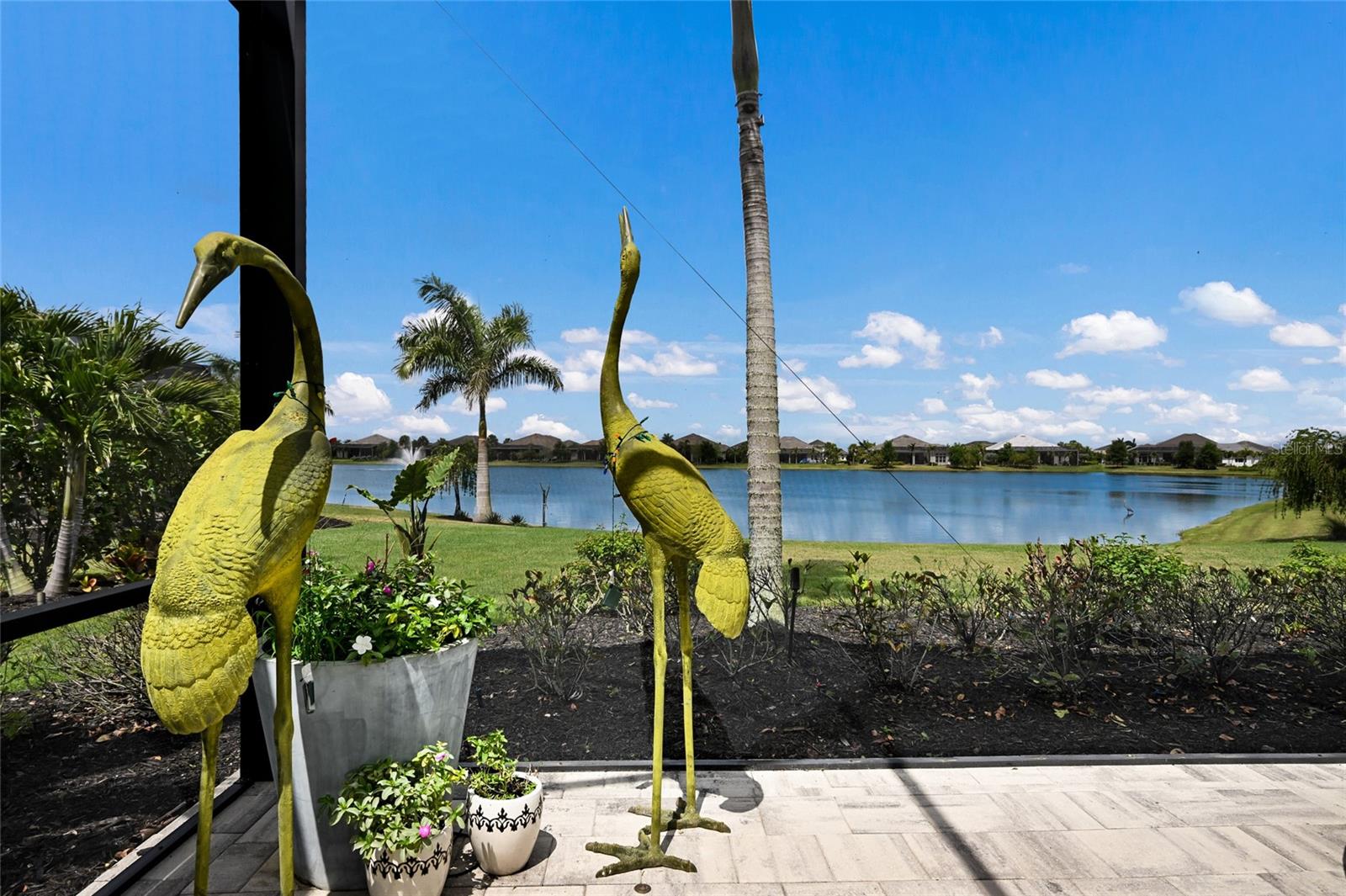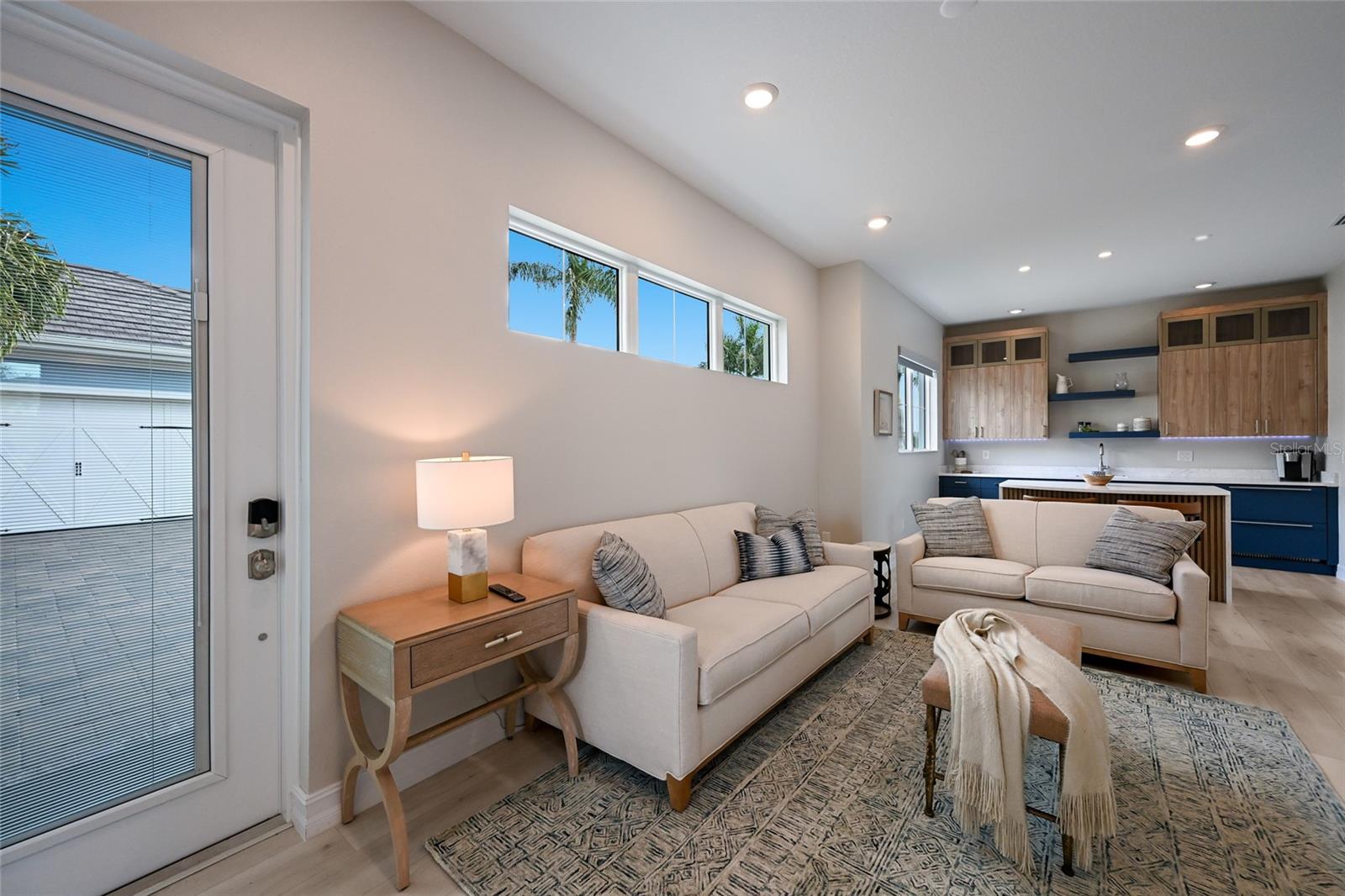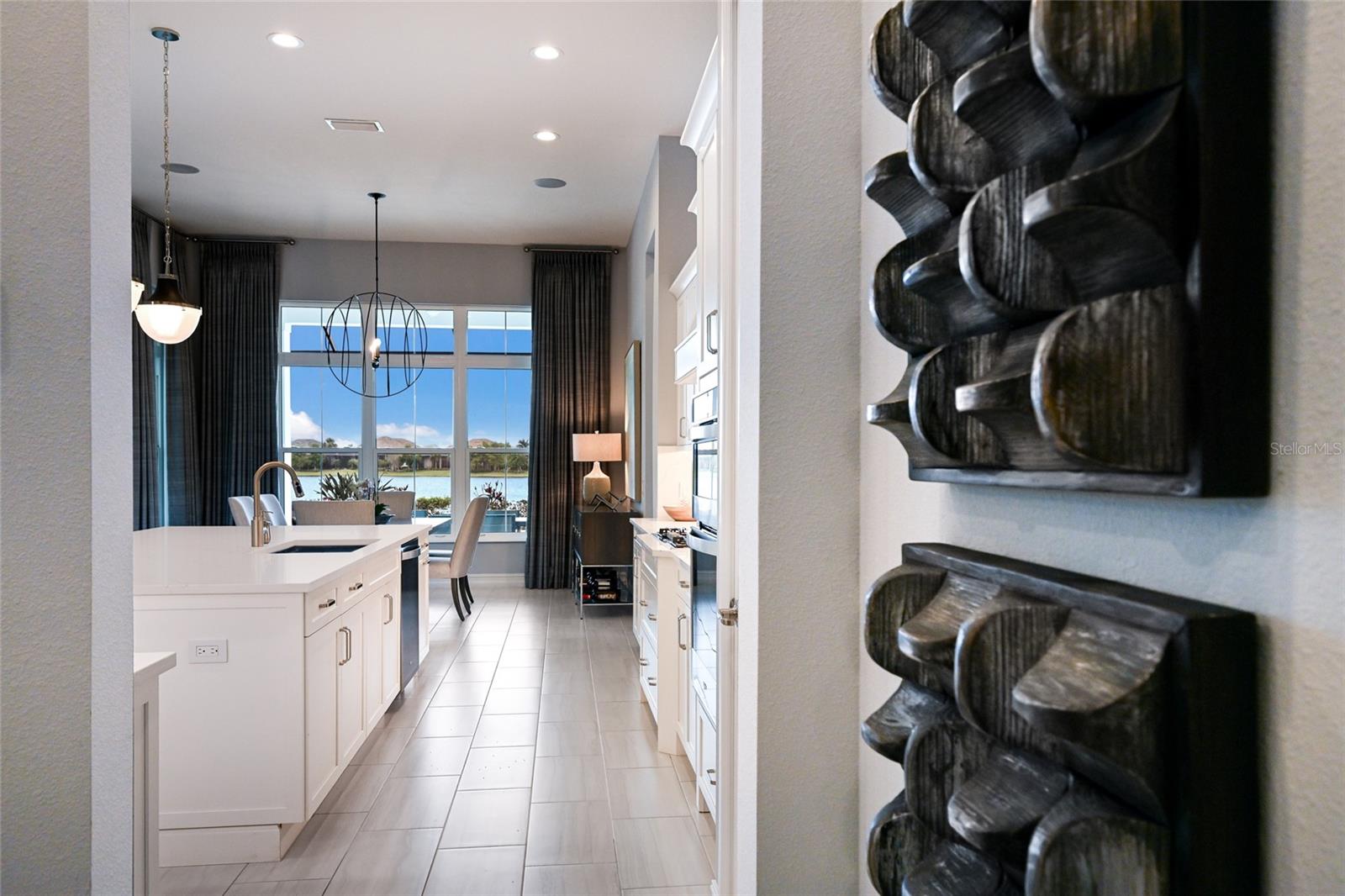 Private estate with a separate guest house positioned on one acre inside the exclusive gated community of The Lake Club with breathtaking lakefront westerly sunset views offers an unparalleled opportunity for flexible luxury living. This exceptional property offers a highly sought-after layout in Lakewood Ranch featuring a 3 bedroom, 3 full bath main residence complemented by a fully independent 2 bedroom, 2 full bath private casita, ideal for extended family, guests, or a dedicated work-from-home retreat. Added in 2024, the newly built separate entry living quarters also boasts a living area, a den and its own kitchenette complete with microwave, refrigerator drawers and dishwasher. Meanwhile, the main house is a stylishly open one-story great room plan plus a study that epitomizes the indoor-outdoor living experience with thoughtfully planned living spaces, accentuated volume ceilings, skillfully selected finishes, and, of course, all IMPACT windows/doors/sliders. The expansive outdoor retreat elevates with a panoramic screened lanai, extensive open and under cover spaces, soaring ceilings, full summer kitchen, PebbleTec heated saltwater pool/spa with sun shelf, and an inviting gas fireplace. Ten foot impact disappearing glass sliders seamlessly connect the outdoor oasis to a luxuriantly welcoming great room, dining area and gourmet kitchen crowned with coffered ceiling, accent wall, and designer light fixtures creating a sophisticated open continuity of space. Off the dining room, the gourmet kitchen further accentuates with wood cabinetry, soft-close dove-tail drawers, newly installed quartz counters and backsplash, stainless steel appliances, wine fridge, and walk-in pantry. The residence also offers an impressive office behind double-entry doors just off the entry foyer. The owner’s quarters positioned on a private wing in the main residence offers double tray ceilings, large scale windows, direct lanai access, two oversized walk-in customized closets, and a spa-like bath with dual station vanity, an oversized shower with designer tile, a large soaking tub, and separate water closet. There are two additional guest suites in the main house, each on a separate wings of the home generous in size with luxury plank vinyl flooring, one offering an ensuite full bath, while the third guest room is just off the home’s pool bath bath. Other notable highlights of this stunning residence includes a brilliantly finished laundry room with cabinetry and sink, tankless water heater, all impact windows and doors, smarthome automation, and an oversized three car air-conditioned garage with epoxy flooring and storage. This rare offering beckons a lifestyle fulfilled in The Lake Club, where residents enjoy access to a wealth of amenities, including two resort-style heated pools, Grande Clubhouse with fine dining and bar area, a fitness center, spa, tennis courts, pickleball, a playground, dog park, and services of a full-time concierge and activities director.