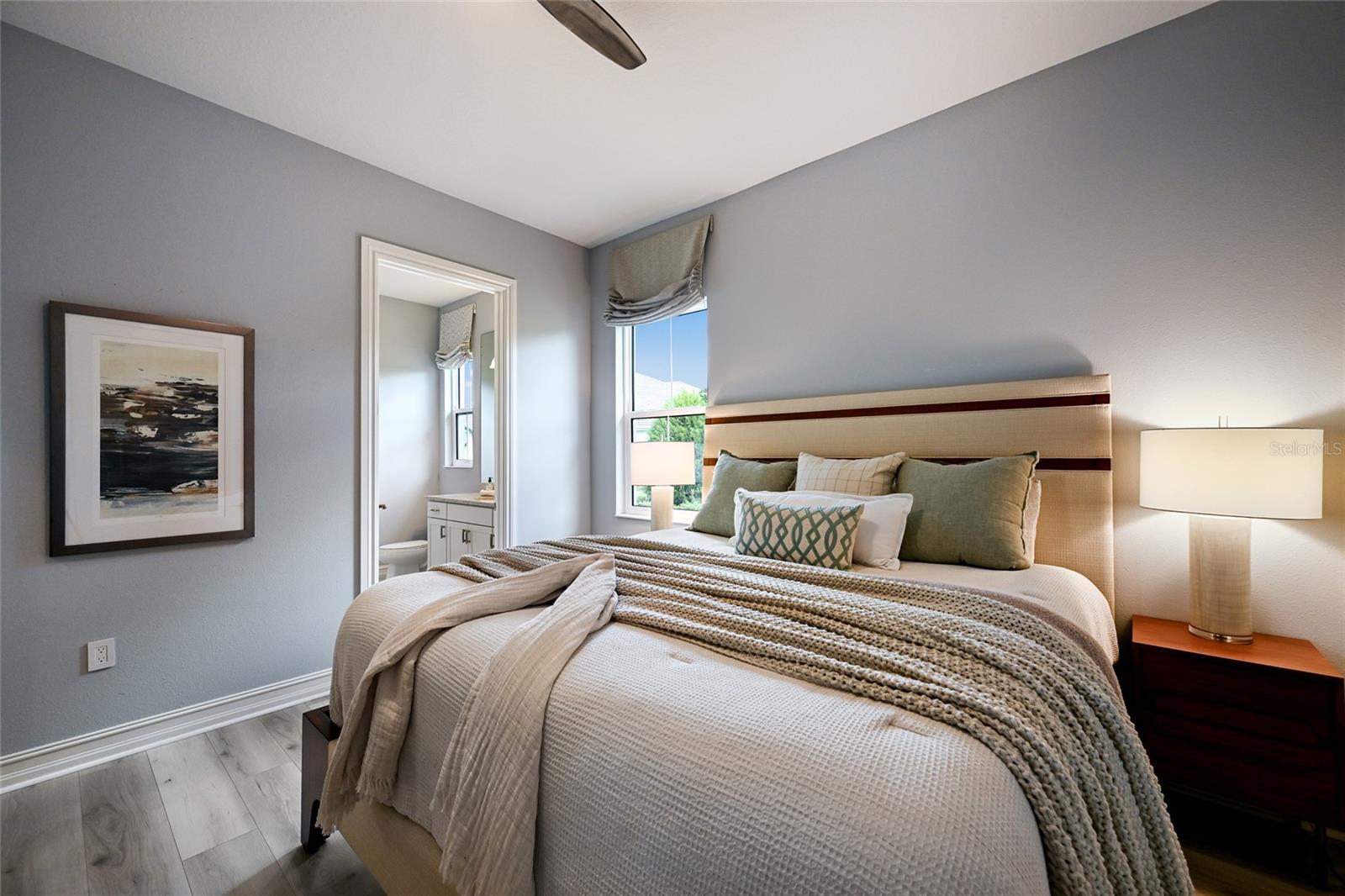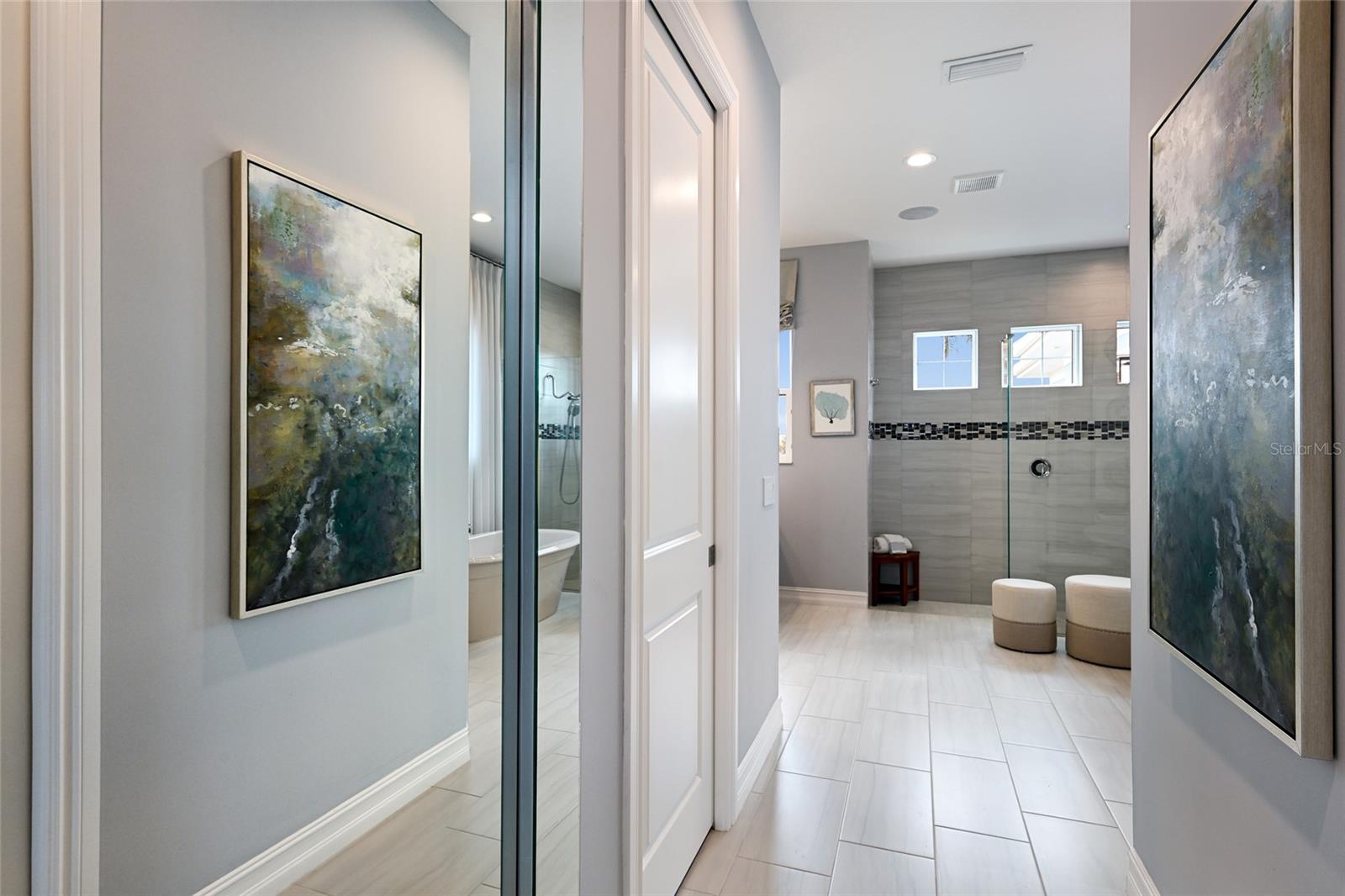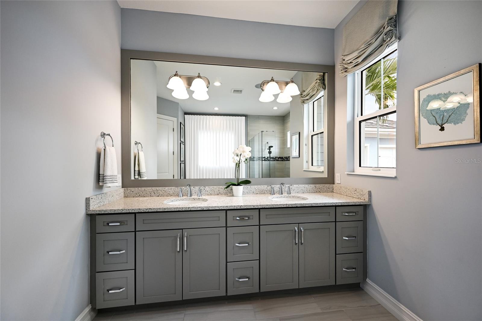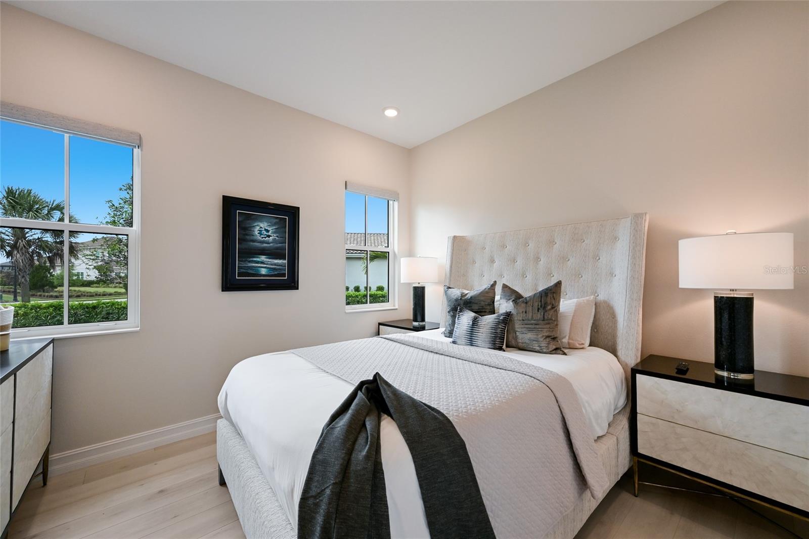 Private estate with a separate guest house positioned on one acre inside the exclusive gated community of The Lake Club with breathtaking lakefront westerly sunset views offers an unparalleled opportunity for flexible luxury living. This exceptional property offers a highly sought-after layout in Lakewood Ranch featuring a 3 bedroom, 3 full bath main residence complemented by a fully independent 2 bedroom, 2 full bath private casita, ideal for extended family, guests, or a dedicated work-from-home retreat. Added in 2024, the newly built separate entry living quarters also boasts a living area, a den and its own kitchenette complete with microwave, refrigerator drawers and dishwasher. Meanwhile, the main house is a stylishly open one-story great room plan plus a study that epitomizes the indoor-outdoor living experience with thoughtfully planned living spaces, accentuated volume ceilings, skillfully selected finishes, and, of course, all IMPACT windows/doors/sliders. The expansive outdoor retreat elevates with a panoramic screened lanai, extensive open and under cover spaces, soaring ceilings, full summer kitchen, PebbleTec heated saltwater pool/spa with sun shelf, and an inviting gas fireplace. Ten foot impact disappearing glass sliders seamlessly connect the outdoor oasis to a luxuriantly welcoming great room, dining area and gourmet kitchen crowned with coffered ceiling, accent wall, and designer light fixtures creating a sophisticated open continuity of space. Off the dining room, the gourmet kitchen further accentuates with wood cabinetry, soft-close dove-tail drawers, newly installed quartz counters and backsplash, stainless steel appliances, wine fridge, and walk-in pantry. The residence also offers an impressive office behind double-entry doors just off the entry foyer. The owner’s quarters positioned on a private wing in the main residence offers double tray ceilings, large scale windows, direct lanai access, two oversized walk-in customized closets, and a spa-like bath with dual station vanity, an oversized shower with designer tile, a large soaking tub, and separate water closet. There are two additional guest suites in the main house, each on a separate wings of the home generous in size with luxury plank vinyl flooring, one offering an ensuite full bath, while the third guest room is just off the home’s pool bath bath. Other notable highlights of this stunning residence includes a brilliantly finished laundry room with cabinetry and sink, tankless water heater, all impact windows and doors, smarthome automation, and an oversized three car air-conditioned garage with epoxy flooring and storage. This rare offering beckons a lifestyle fulfilled in The Lake Club, where residents enjoy access to a wealth of amenities, including two resort-style heated pools, Grande Clubhouse with fine dining and bar area, a fitness center, spa, tennis courts, pickleball, a playground, dog park, and services of a full-time concierge and activities director.