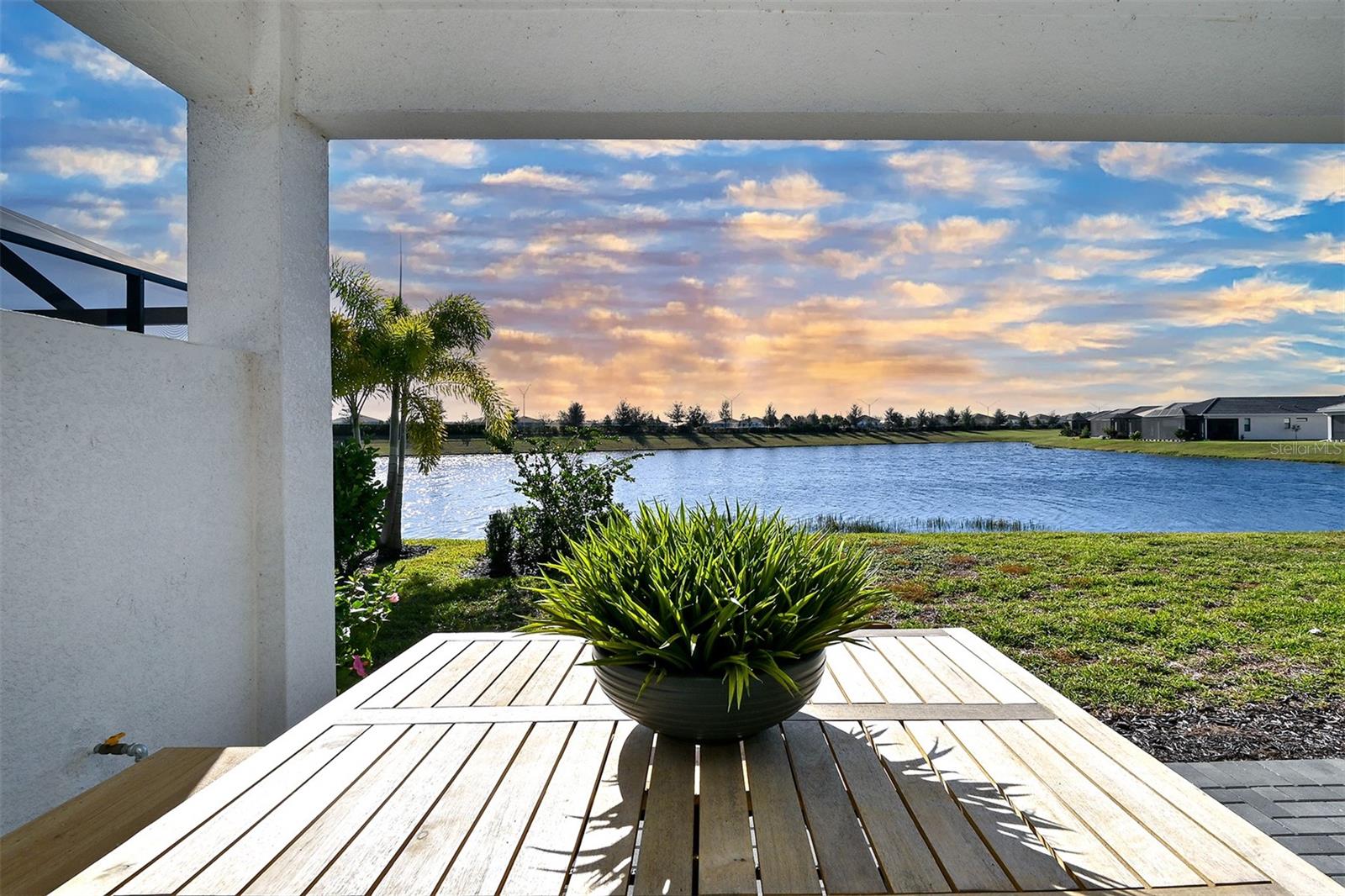 Hurricane-impact doors and windows, along with a motorized hurricane screen on the lanai, set the tone for this well-constructed Fiesta floor plan in Cresswind at Lakewood Ranch, a premier 55+ gated, maintenance-free community. Positioned on a premium south-facing homesite, the property enjoys peaceful lake views both front and back, creating a serene setting. The great room layout seamlessly connects the kitchen, living, and dining areas for easy everyday living and entertaining. The home features three bedrooms, each with walk-in closets, including a spacious primary suite with an expansive wardrobe closet and an ensuite bath with split vanities and an oversized walk-in shower. A versatile flex space offers the option for a home office or den. The kitchen is the centerpiece, complete with a gas cooktop, built-in oven and microwave, stainless vent hood, generous center island, quartz countertops, and a walk-in pantry. Additional highlights include an en suite guest room, tray ceilings, plantation shutters, a utility sink in the laundry room, a 4-foot garage extension with epoxy flooring, gas stub for an outdoor kitchen or grill, in-wall pest system, smart home features, tile roof, and a paver driveway and lanai. Cresswind offers an award-winning lifestyle program with resort-style amenities including a pool and spa, fitness center, yoga studio, pickleball, tennis, bocce, culinary kitchen, art studio, food truck pavilion, event stage, billiards, and a full-time lifestyle director. Lakewood Ranch continues to be the nation’s top-selling multigenerational community, with convenient access to Lakewood Ranch Main Street, Waterside Place, University Town Center, downtown Sarasota, I-75, beaches, medical facilities, and more, with optional membership to the Lakewood Ranch Golf & Country Club.
