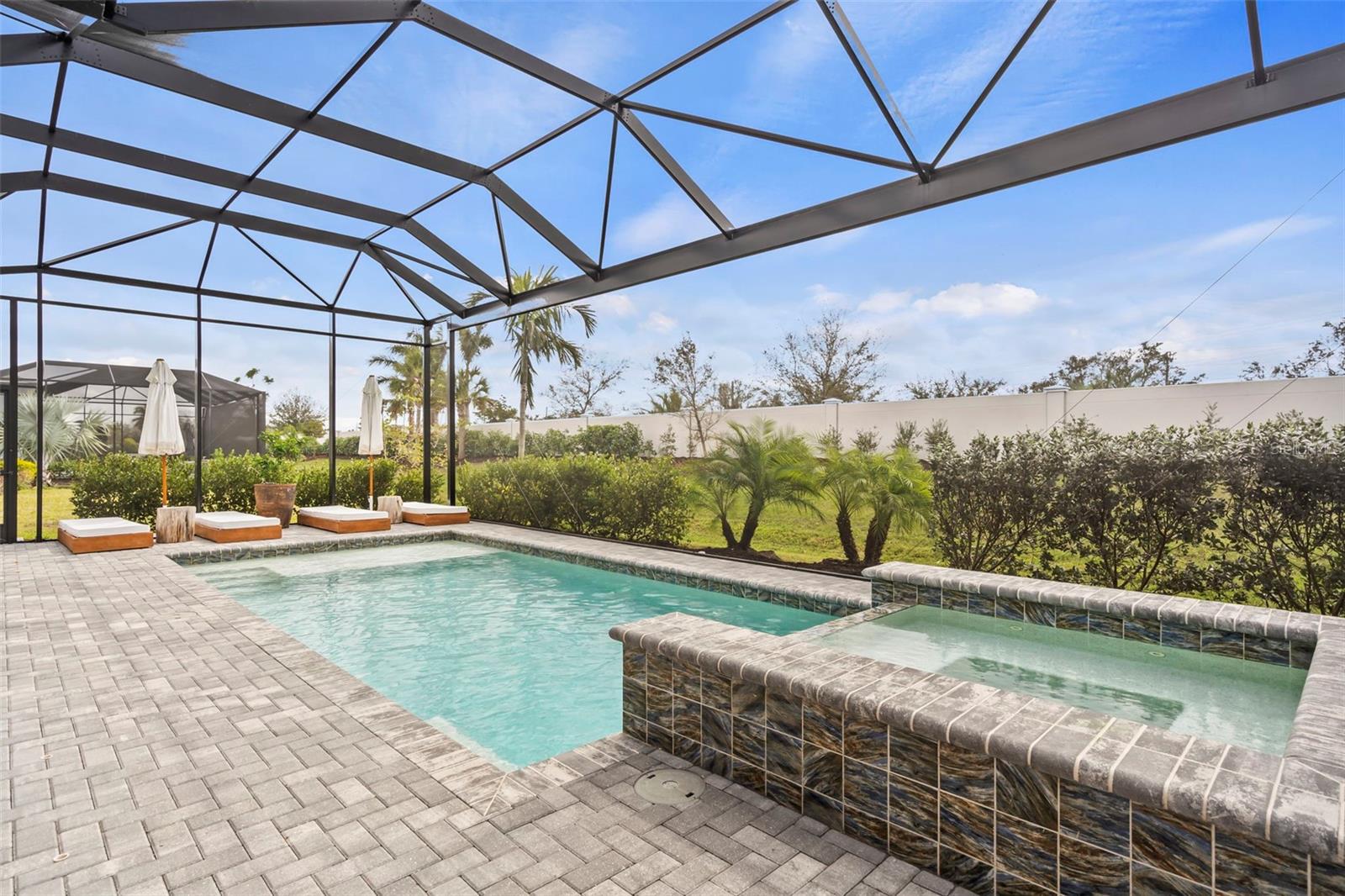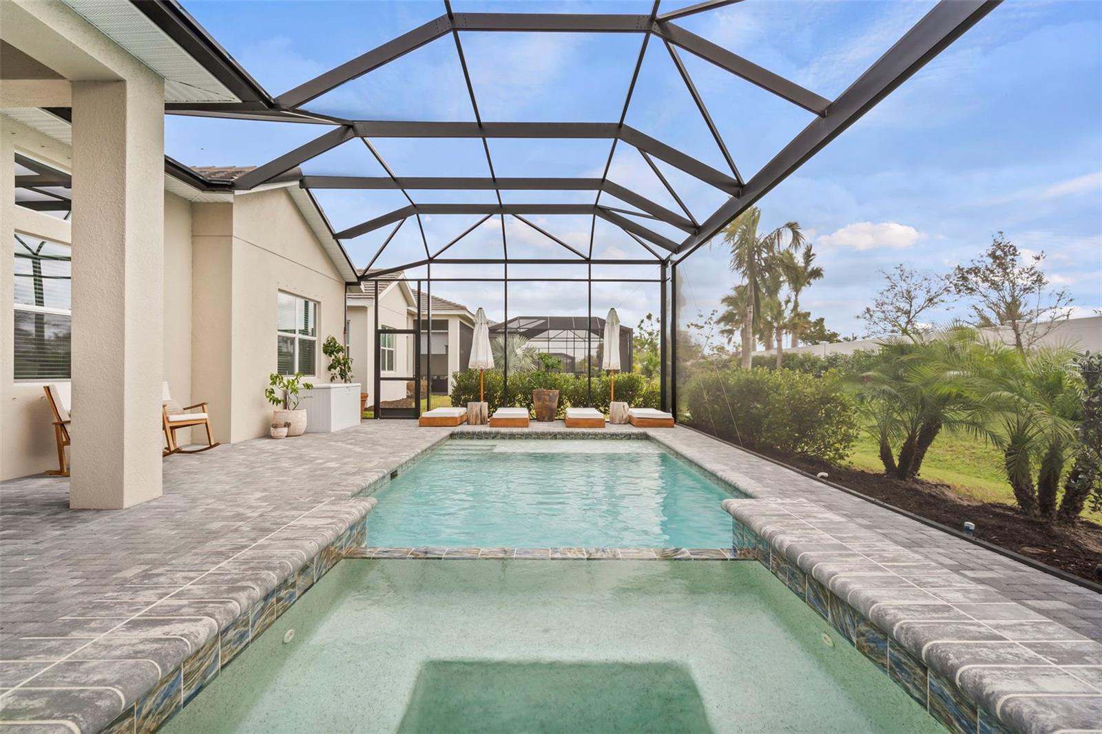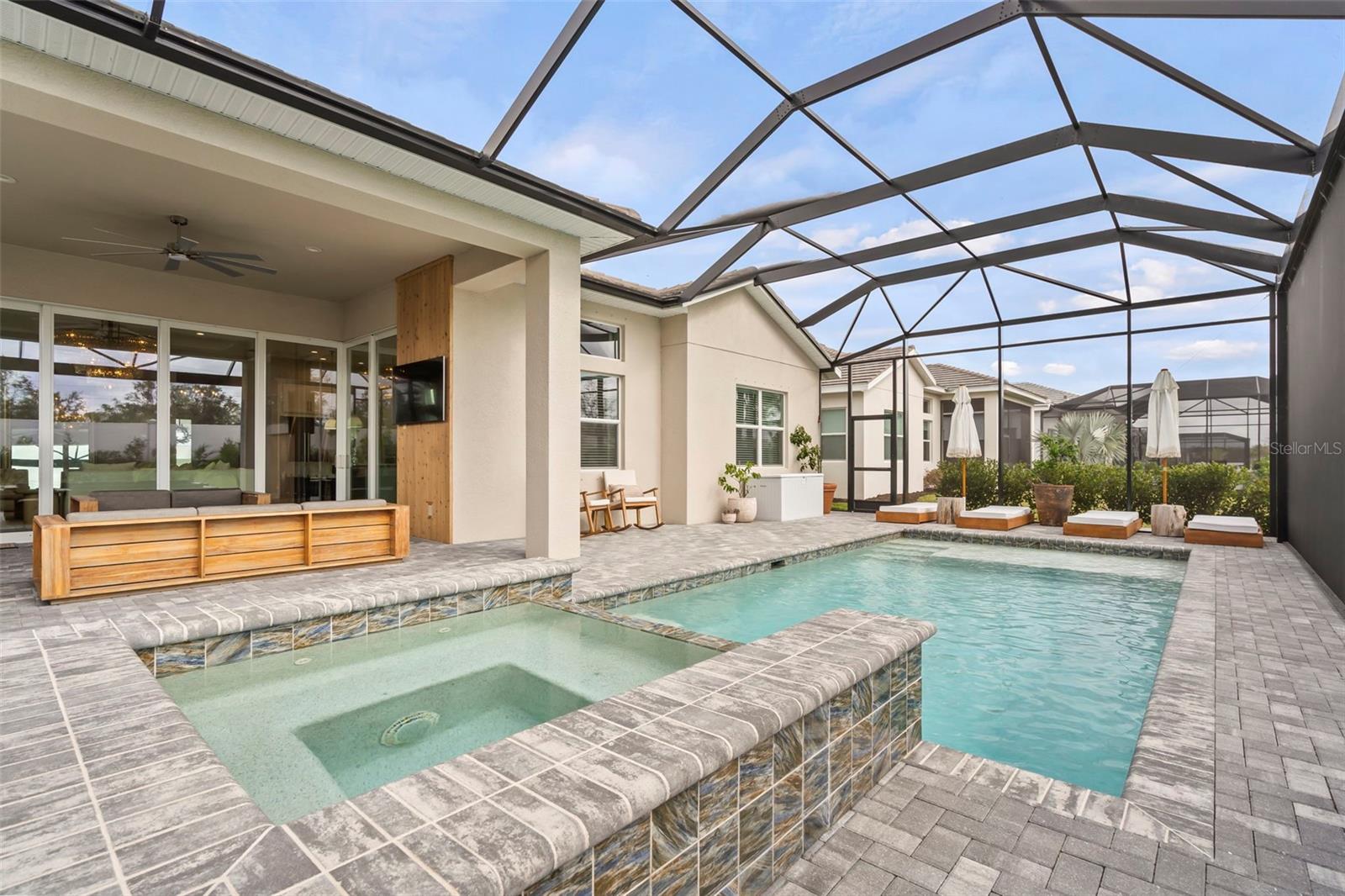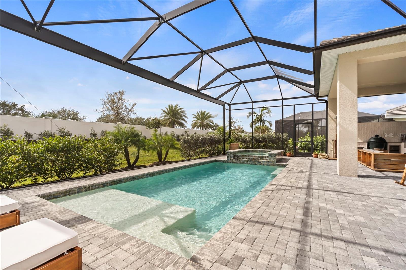 BUYER FINANCING FELL THROUGH, their loss is your GAIN!!! Welcome to luxury living in The Isles at Lakewood Ranch! This stunning 4-bedroom, 4.5-bathroom home offers elegance and modern comfort. From the moment you step inside, you'll be captivated by the open layout, towering 12' ceilings in the main living areas, featuring luxury vinyl plank flooring and tray ceilings in the great room and primary suite, highlighted by a gorgeous crystal chandelier at the center of the great room. Additional highlights include an oversized three-car garage with side pull-in offering an expansive driveway (recently pressure washed and sealed) for guest parking, a tile roof, and the convenience of a powder bath for guests, a second-story loft and office/study, and expansive southern facing lanai that is your own extremely private oasis shielded by Pygmy Date and Christmas Palms, allowing you to soak up the sun all day long in the beautiful saltwater heated pool with hot tub and sun shelf, a true paradise. The gourmet kitchen is a chef’s dream with a sprawling quartz island, 6-burner gas range with aa hood vent and cover, custom walk-in pantry with built-ins and convenient beverage fridge and wine cooler, upgraded Signature stainless steel appliances and built-in range. The outdoor kitchen features a large gas grill, plenty of prep room, and sink. Enjoy seamless indoor-outdoor living with large 10' zero-radius 90-degree sliding doors opening to the lanai, which overlooks the saltwater heated pool with sun shelf, hot tub, and large paver deck equipped with an outdoor shower all without any rear neighbors and panoramic screen enclosures. Each of the four bedrooms includes an ensuite bathroom and spacious closets, offering comfort and privacy for everyone. The primary suite features a luxurious bathroom with a spacious walk-in closet with built-in shelving, huge walk-in shower with rain shower head, and garden tub, perfect for unwinding. Living in The Isles at Lakewood Ranch offers access to a vibrant community with sidewalks, golf cart paths, resort style amenities that include a clubhouse with fitness center, community pool, hot tub, tennis courts, basketball courts, pickleball courts, 2 dog parks, boardwalk, fishing pier, beautiful private nature trails, social gathering rooms, catering kitchen and a playground—ideal for those who enjoy an active, social lifestyle all within a convenient distance to Siesta Key Beach, Lido Key, University Town Center mall, downtown Sarasota and Main Street Lakewood Ranch. Don’t miss out on this exceptional property! SEE VIDEO & VIRTUAL TOUR LINKS! NOT IN A FLOOD ZONE.