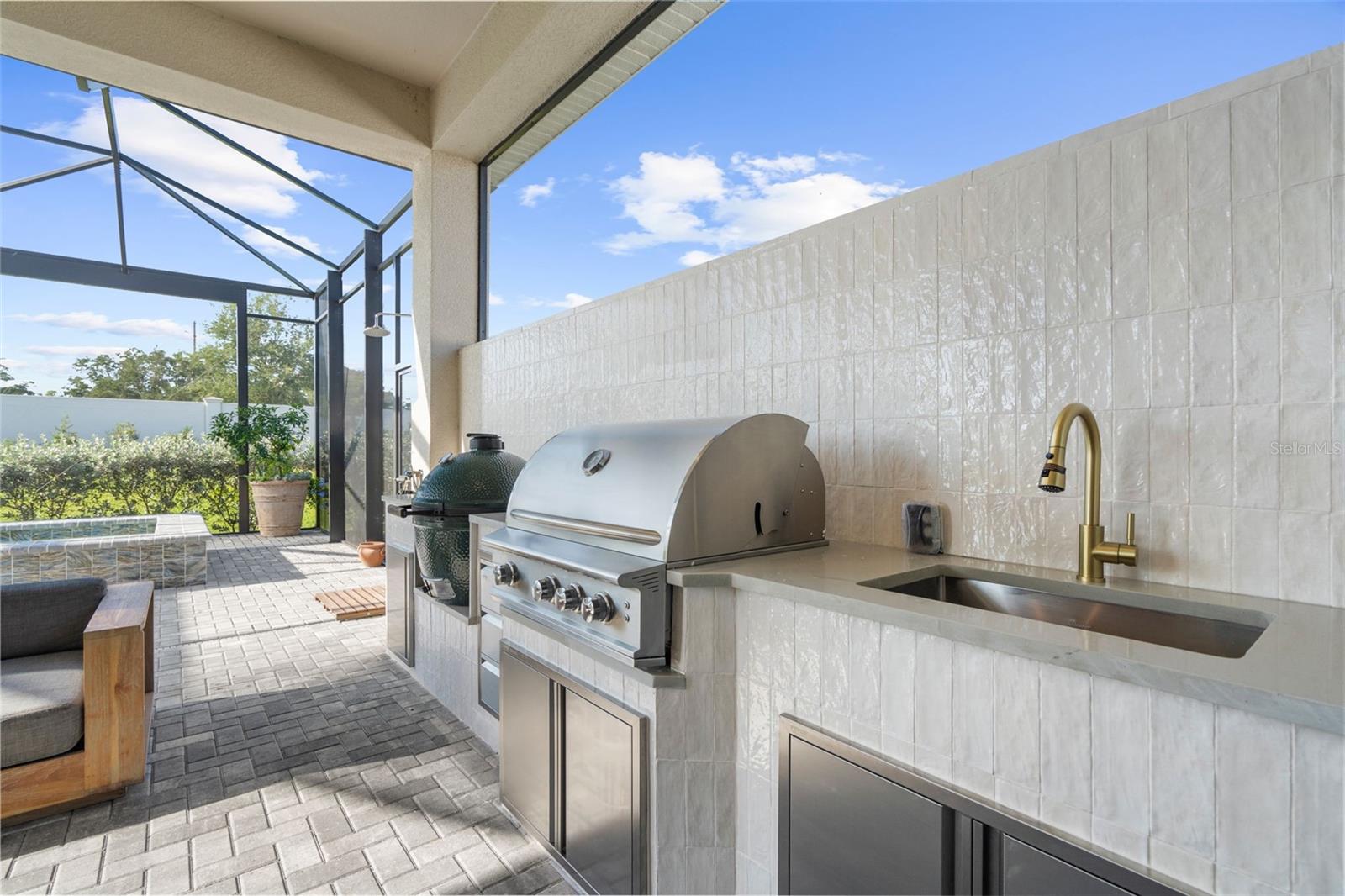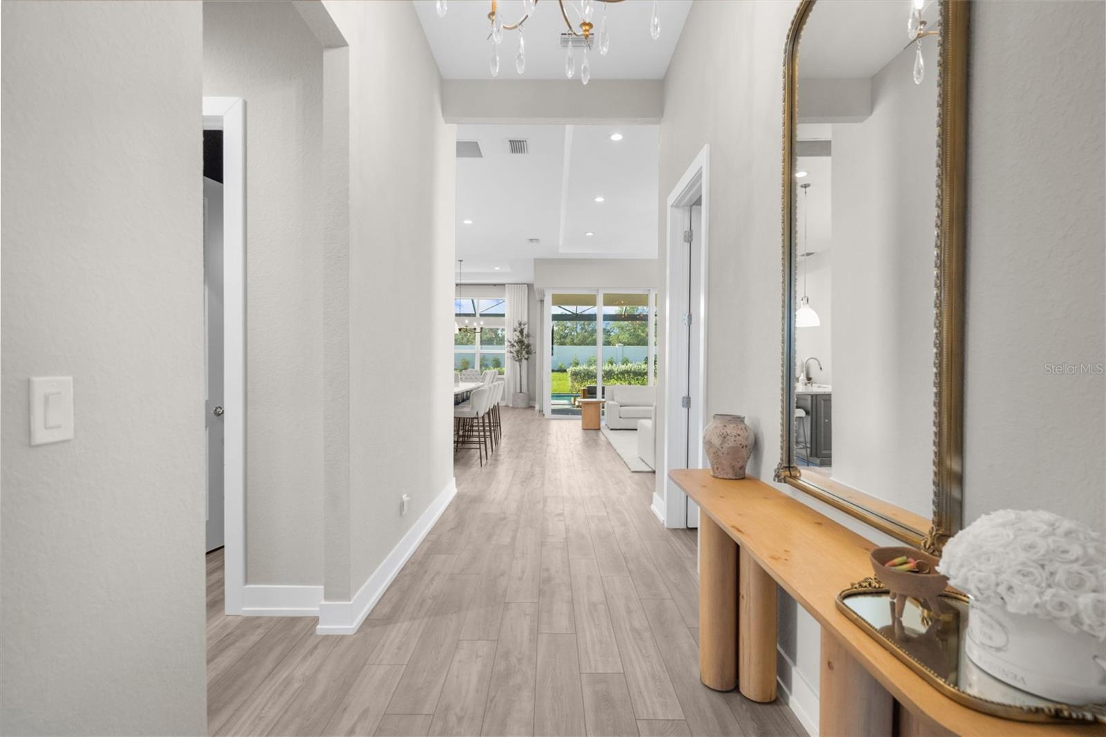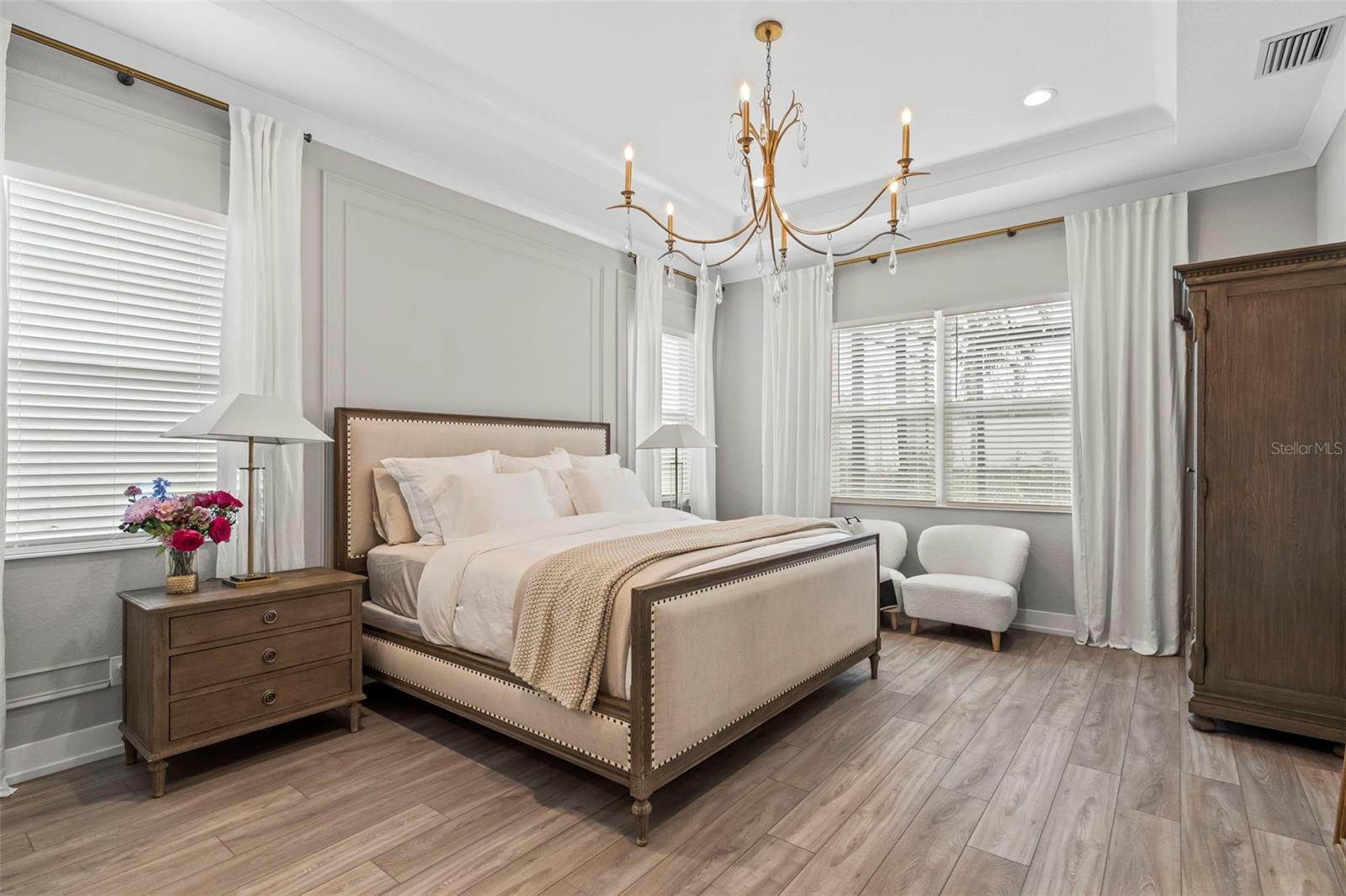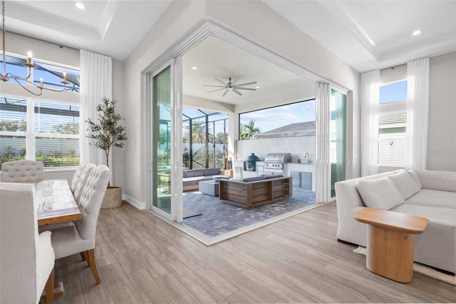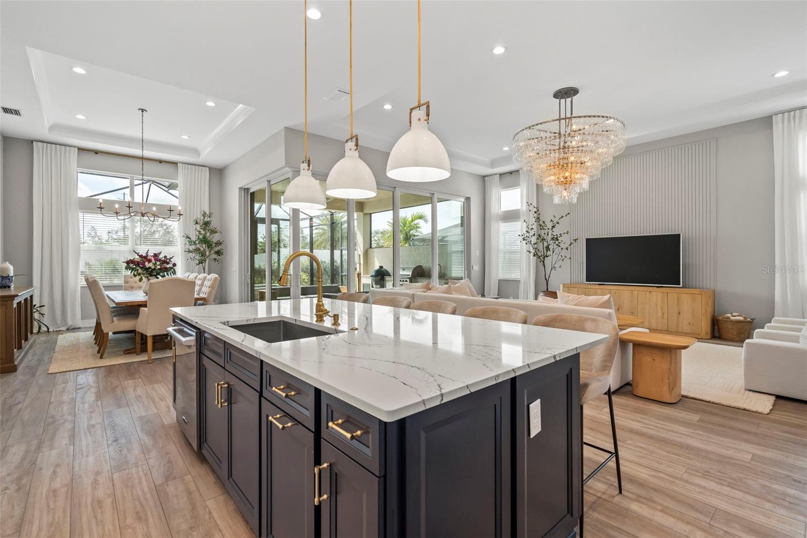 BUYER FINANCING FELL THROUGH, their loss is your GAIN!!! Welcome to luxury living in The Isles at Lakewood Ranch! This stunning 4-bedroom, 4.5-bathroom home offers elegance and modern comfort. From the moment you step inside, you'll be captivated by the open layout, towering 12' ceilings in the main living areas, featuring luxury vinyl plank flooring and tray ceilings in the great room and primary suite, highlighted by a gorgeous crystal chandelier at the center of the great room. Additional highlights include an oversized three-car garage with side pull-in offering an expansive driveway (recently pressure washed and sealed) for guest parking, a tile roof, and the convenience of a powder bath for guests, a second-story loft and office/study, and expansive southern facing lanai that is your own extremely private oasis shielded by Pygmy Date and Christmas Palms, allowing you to soak up the sun all day long in the beautiful saltwater heated pool with hot tub and sun shelf, a true paradise. The gourmet kitchen is a chef’s dream with a sprawling quartz island, 6-burner gas range with aa hood vent and cover, custom walk-in pantry with built-ins and convenient beverage fridge and wine cooler, upgraded Signature stainless steel appliances and built-in range. The outdoor kitchen features a large gas grill, plenty of prep room, and sink. Enjoy seamless indoor-outdoor living with large 10' zero-radius 90-degree sliding doors opening to the lanai, which overlooks the saltwater heated pool with sun shelf, hot tub, and large paver deck equipped with an outdoor shower all without any rear neighbors and panoramic screen enclosures. Each of the four bedrooms includes an ensuite bathroom and spacious closets, offering comfort and privacy for everyone. The primary suite features a luxurious bathroom with a spacious walk-in closet with built-in shelving, huge walk-in shower with rain shower head, and garden tub, perfect for unwinding. Living in The Isles at Lakewood Ranch offers access to a vibrant community with sidewalks, golf cart paths, resort style amenities that include a clubhouse with fitness center, community pool, hot tub, tennis courts, basketball courts, pickleball courts, 2 dog parks, boardwalk, fishing pier, beautiful private nature trails, social gathering rooms, catering kitchen and a playground—ideal for those who enjoy an active, social lifestyle all within a convenient distance to Siesta Key Beach, Lido Key, University Town Center mall, downtown Sarasota and Main Street Lakewood Ranch. Don’t miss out on this exceptional property! SEE VIDEO & VIRTUAL TOUR LINKS! NOT IN A FLOOD ZONE.