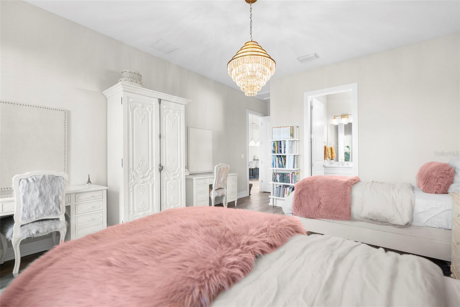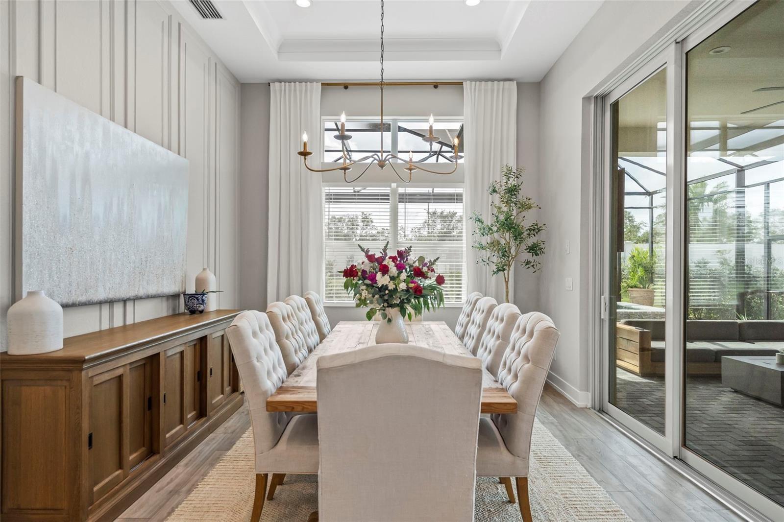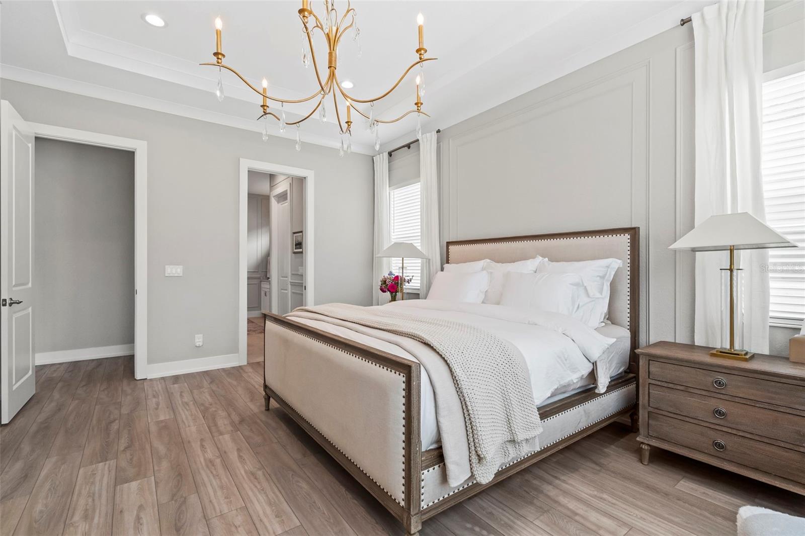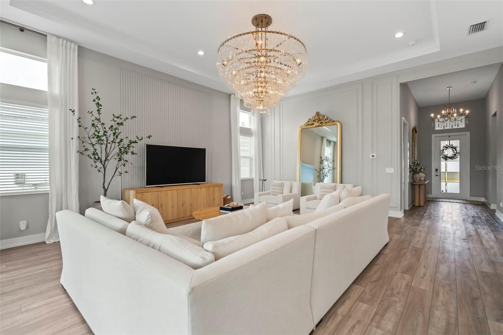 BUYER FINANCING FELL THROUGH, their loss is your GAIN!!! Welcome to luxury living in The Isles at Lakewood Ranch! This stunning 4-bedroom, 4.5-bathroom home offers elegance and modern comfort. From the moment you step inside, you'll be captivated by the open layout, towering 12' ceilings in the main living areas, featuring luxury vinyl plank flooring and tray ceilings in the great room and primary suite, highlighted by a gorgeous crystal chandelier at the center of the great room. Additional highlights include an oversized three-car garage with side pull-in offering an expansive driveway (recently pressure washed and sealed) for guest parking, a tile roof, and the convenience of a powder bath for guests, a second-story loft and office/study, and expansive southern facing lanai that is your own extremely private oasis shielded by Pygmy Date and Christmas Palms, allowing you to soak up the sun all day long in the beautiful saltwater heated pool with hot tub and sun shelf, a true paradise. The gourmet kitchen is a chef’s dream with a sprawling quartz island, 6-burner gas range with aa hood vent and cover, custom walk-in pantry with built-ins and convenient beverage fridge and wine cooler, upgraded Signature stainless steel appliances and built-in range. The outdoor kitchen features a large gas grill, plenty of prep room, and sink. Enjoy seamless indoor-outdoor living with large 10' zero-radius 90-degree sliding doors opening to the lanai, which overlooks the saltwater heated pool with sun shelf, hot tub, and large paver deck equipped with an outdoor shower all without any rear neighbors and panoramic screen enclosures. Each of the four bedrooms includes an ensuite bathroom and spacious closets, offering comfort and privacy for everyone. The primary suite features a luxurious bathroom with a spacious walk-in closet with built-in shelving, huge walk-in shower with rain shower head, and garden tub, perfect for unwinding. Living in The Isles at Lakewood Ranch offers access to a vibrant community with sidewalks, golf cart paths, resort style amenities that include a clubhouse with fitness center, community pool, hot tub, tennis courts, basketball courts, pickleball courts, 2 dog parks, boardwalk, fishing pier, beautiful private nature trails, social gathering rooms, catering kitchen and a playground—ideal for those who enjoy an active, social lifestyle all within a convenient distance to Siesta Key Beach, Lido Key, University Town Center mall, downtown Sarasota and Main Street Lakewood Ranch. Don’t miss out on this exceptional property! SEE VIDEO & VIRTUAL TOUR LINKS! NOT IN A FLOOD ZONE.