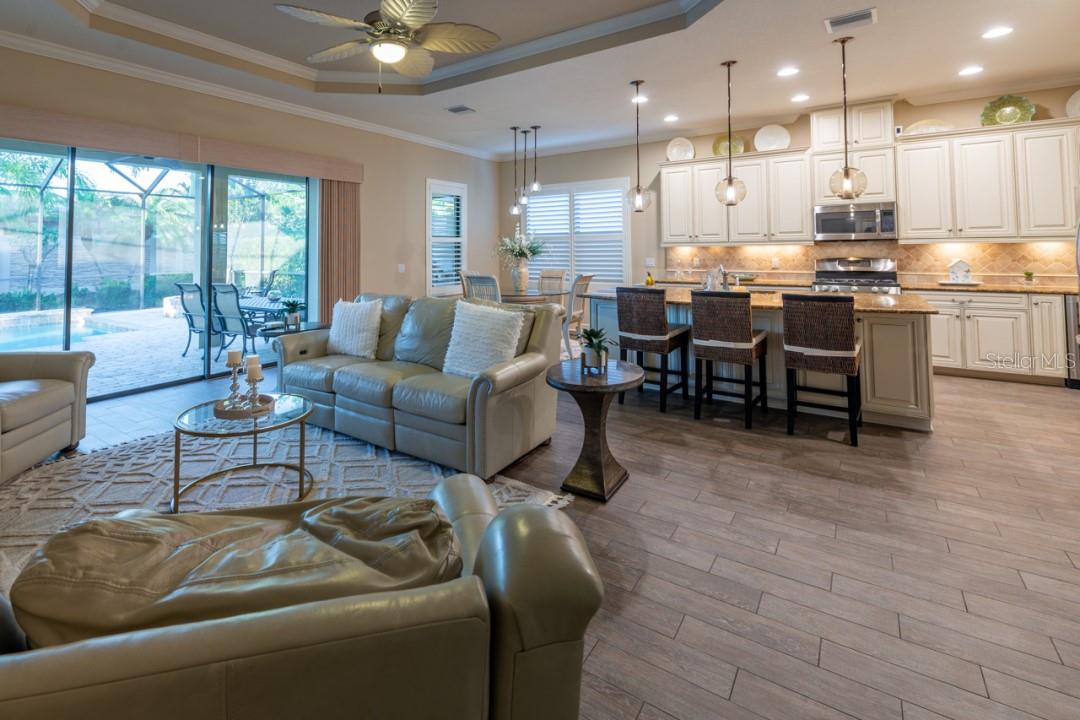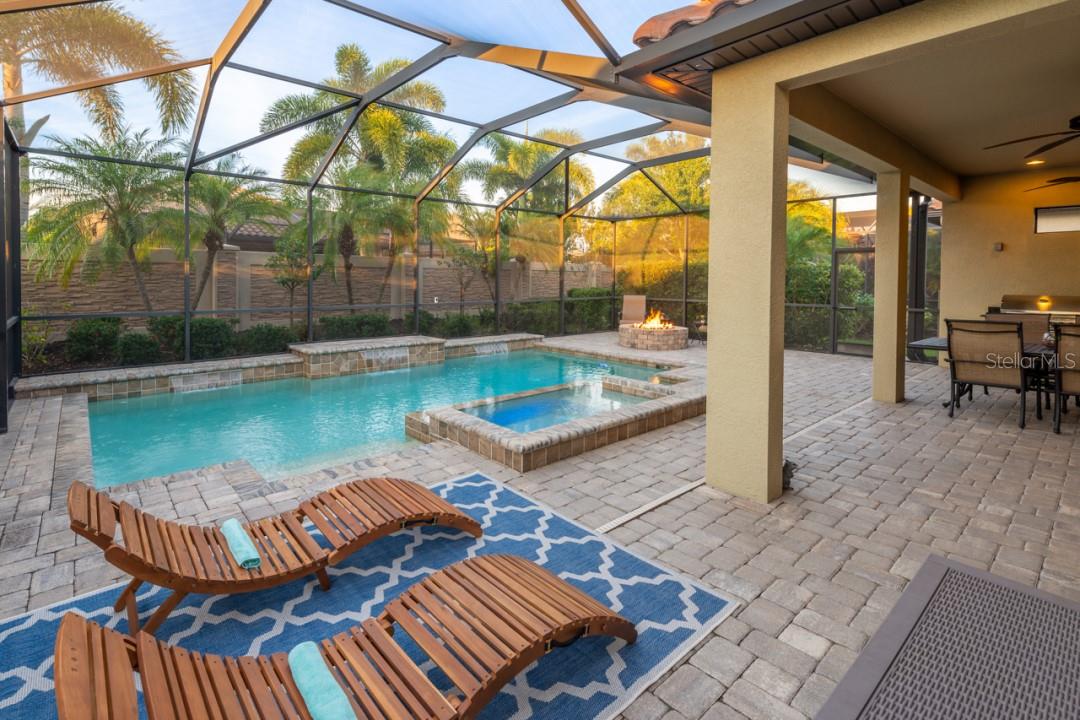 $875,000 Sale or 12 month minimum rental $5,850. Esplanade Golf and Country Club at Lakewood Ranch…Beautifully appointed and maintained home with Custom Salt Water Pool/Spa, Fire Pit, and outdoor Kitchen. Farnese Model Club Home with access to all amenities…plus save $4K yearly on HOA costs. Pay as you play Golf with Green fees ranging from $40-91including Cart depending on season. Upgraded elevation with Covered Stone Tower and Courtyard adding 800 sqft of outdoor entertaining area. 2100 sqft 2 1/2 bath, 2 Bedroom plus flex room currently used as a Den/home office. Flex room could easily be converted to a 3rd bedroom if needed. Open floor plan, high ceilings with 8 ft doors. Tray ceilings and Crown molding throughout with upgraded Cabinets, Appliances, and Wine Cooler. Wood grain looking Tile throughout with conventional Tile in all Bathrooms and Laundry room. 4 foot Garage extension. Pocket sliders lead out from the Great room to your own secluded Oasis with Custom Pool/Spa, Fire Pit, and Outdoor Kitchen with new never used Grill and Refrigerator all under a caged Lanai surrounded by Custom Landscaping including Lighted Palms providing a quiet and serene atmosphere. Better than new with all the needed features builders don’t include IE: Ceiling fans, Plantation shutters, upgraded lighting, Custom Closet treatments, Custom Vanity in Master Bathroom, upgraded landscaping, complete Roofing downspouts, Insulated Garage door, Epoxy garage floor, and 50 AMP outlet for EV. You will have access to a wealth of resort-style amenities that Esplanade has , including a Wellness Center, Spa, a state-of-the-art gym, championship Golf course, Tennis, Bocce and Pickle ball courts plus a heated pool/spa, fire pits, and Cabana facilities. The community has multiple dining options including the Bahama Bar and Barrell House Restaurant including a state-of-the-art Culinary Center and so much more. Don’t miss this opportunity to view this exceptional property.