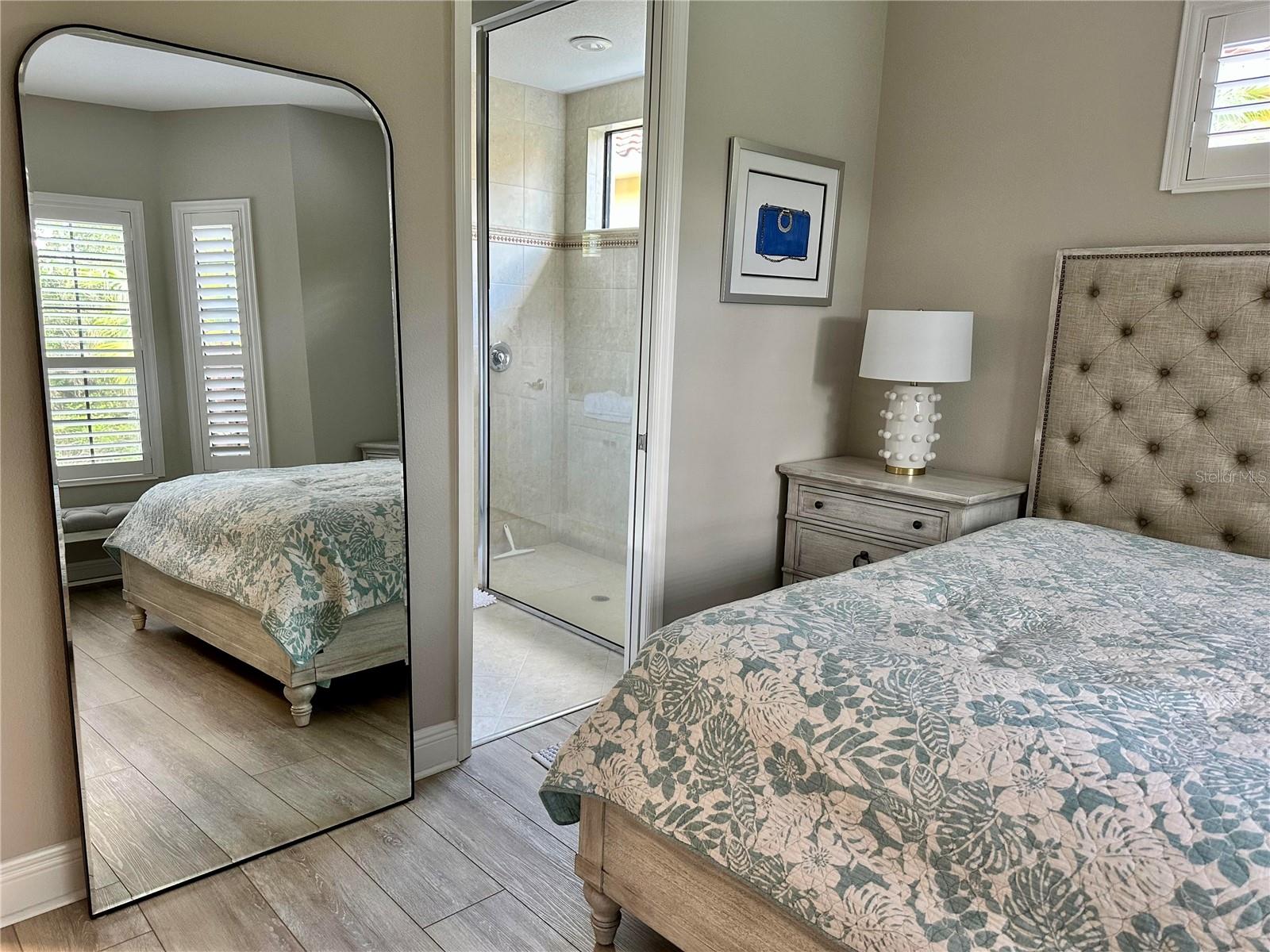 ***THE COUNTRY CLUB; GREAT LOCATION!!*** Enjoy maintenance-free living and a luxurious lifestyle in this Wexford, meticulously maintained residence, within the exclusive confines of Lakewood Ranch Country Club. In the Wexford on a peaceful preserve, you will find unparalleled ease of living with grounds maintenance included and a sparkling community pool just a short walk away. Arrive on the paver driveway then walkway that winds through lush Florida landscaping to the front porch where you can sit and enjoy a cup coffee in the morning. Through the glass front door is the foyer, with tray ceiling, and chic chandelier, that effortlessly leads into the rest of the home. Tile and wide wood-look vinyl flooring means easy maintenance, with no carpeting, plus a neutral color palette will fit your interior design style with ease. The home showcases high ceilings, and 8-foot sliding glass doors leading to the lanai and 2023 ceiling fans throughout. The space can also be split to include a formal dining area, or stretch your legs and use the entire space as a grand great room. The adjacent kitchen features bar-height seating atop luxurious 2021 Taj Mahal quartzite counters, windows for extra light, solid wood cabinetry, and new stainless-steel appliances 2024. The adjacent dinette sits between large windows with plantation shutters for extra natural light. Double doors open into a convenient den/office featuring a custom 2018 built-in desk with extra storage cabinetry and roll-out keyboard drawer which is great for working from home. The master en-suite conveys an expanded window view, tray ceiling, plantation shutters, and a walk-in closet with custom built shelving and drawers. The en-suite bathroom has a pocket door for added privacy, dual sinks, quartzite vanity top 2022, a large walk-in shower with glass enclosure, and plenty of storage in the cabinets and linen closet. The guest bedroom has matching wood-look plank flooring, plantation shutters, a custom-built closet, and an adjacent guest bathroom with upscale quartzite vanity top, and mosaic tile shower wall detailing amongst a timeless tile. Lush landscapes are the perfect backdrop for the screened expanded lanai where you can watch the sunrise over the preserve with no rooftops visible on the horizon. A large backyard, convenient laundry room, 2022 water heater, 2017 AC, and 2-car garage with 2024 industrial grade Polyaspartic floor system with moisture mitigation and radiate barrier foil/extra insulation in the attic for cooling and lower energy bills, complete this country club home. The optional Lakewood Ranch Country Club offers the ultimate Florida lifestyle with an exclusive Country Club with 2 luxurious clubhouses, 4 championship golf courses, 18 Hard-Tru lighted tennis courts, pickleball courts, state of the art fitness center, aquatic center, parks, walking trails and so much more (Membership is optional and at additional cost). All within minutes of the UTC Mall, fabulous dining and shops, Lakewood Ranch Main Street, cultural attractions, polo fields, Benderson Park, and the much-anticipated new home for Mote Marine Aquarium. Plus, don't forget you're only a short drive to the world's top-rated beaches! This home offers a perfect blend of luxury, convenience, and Florida living at its finest.