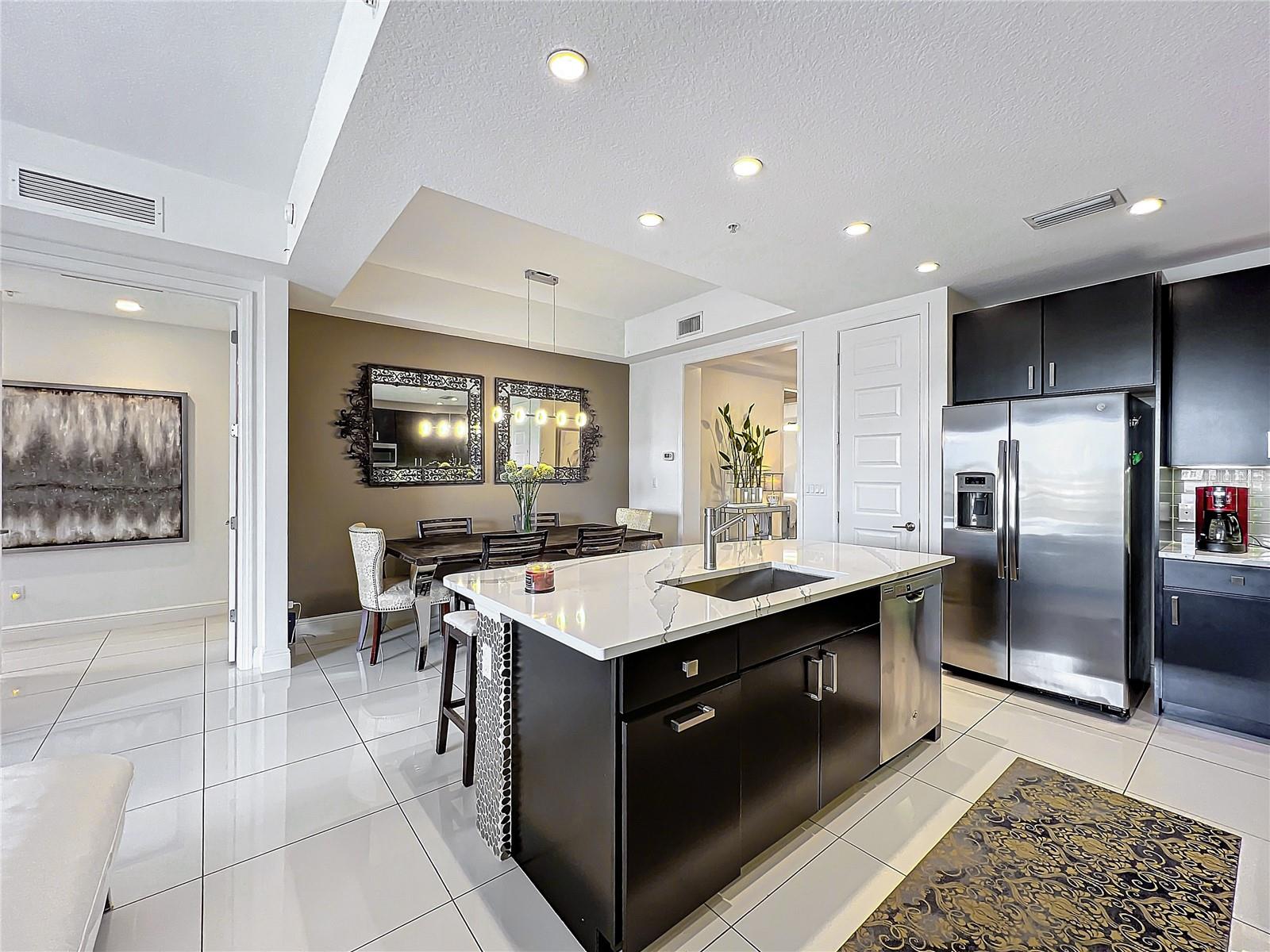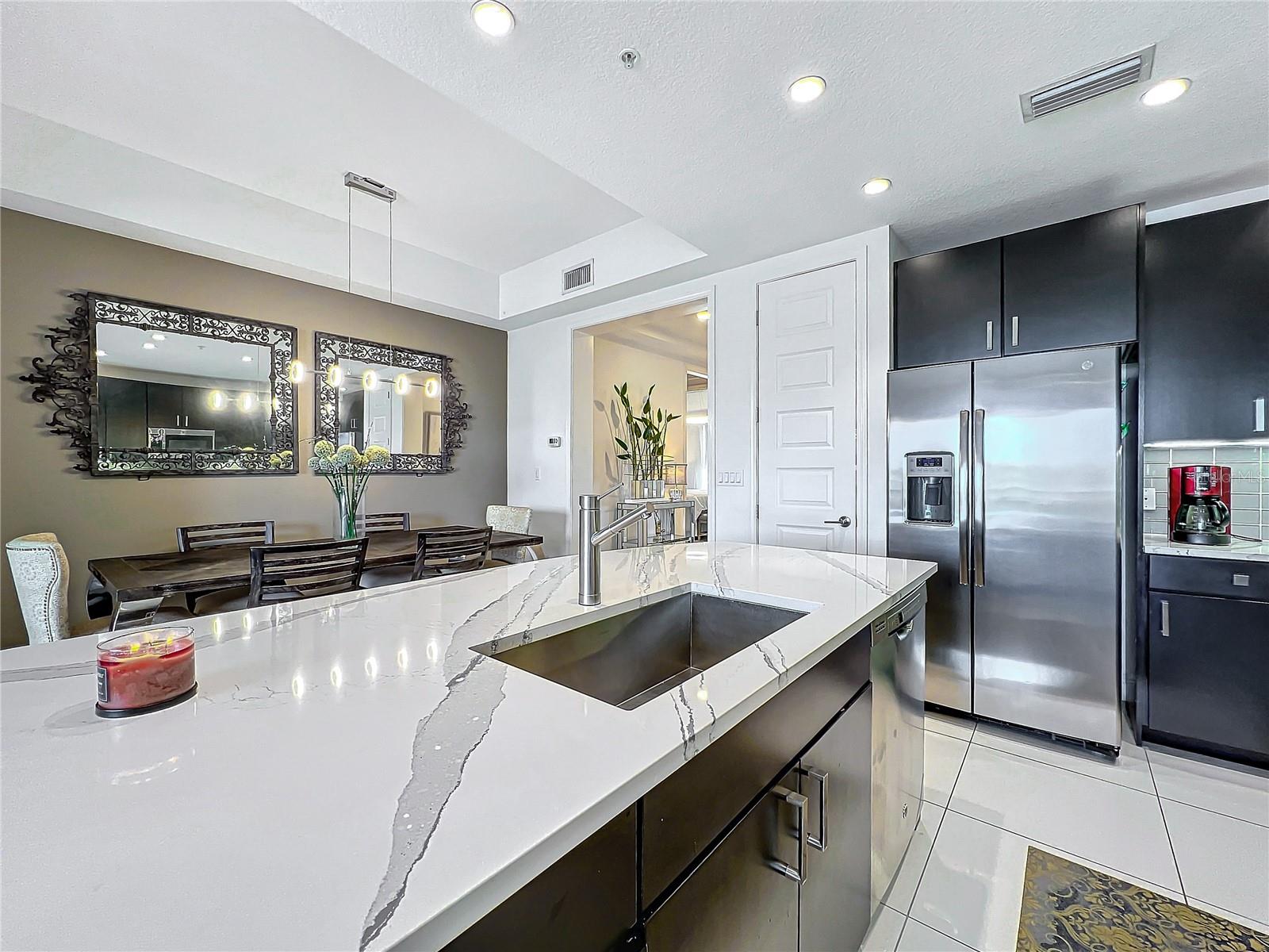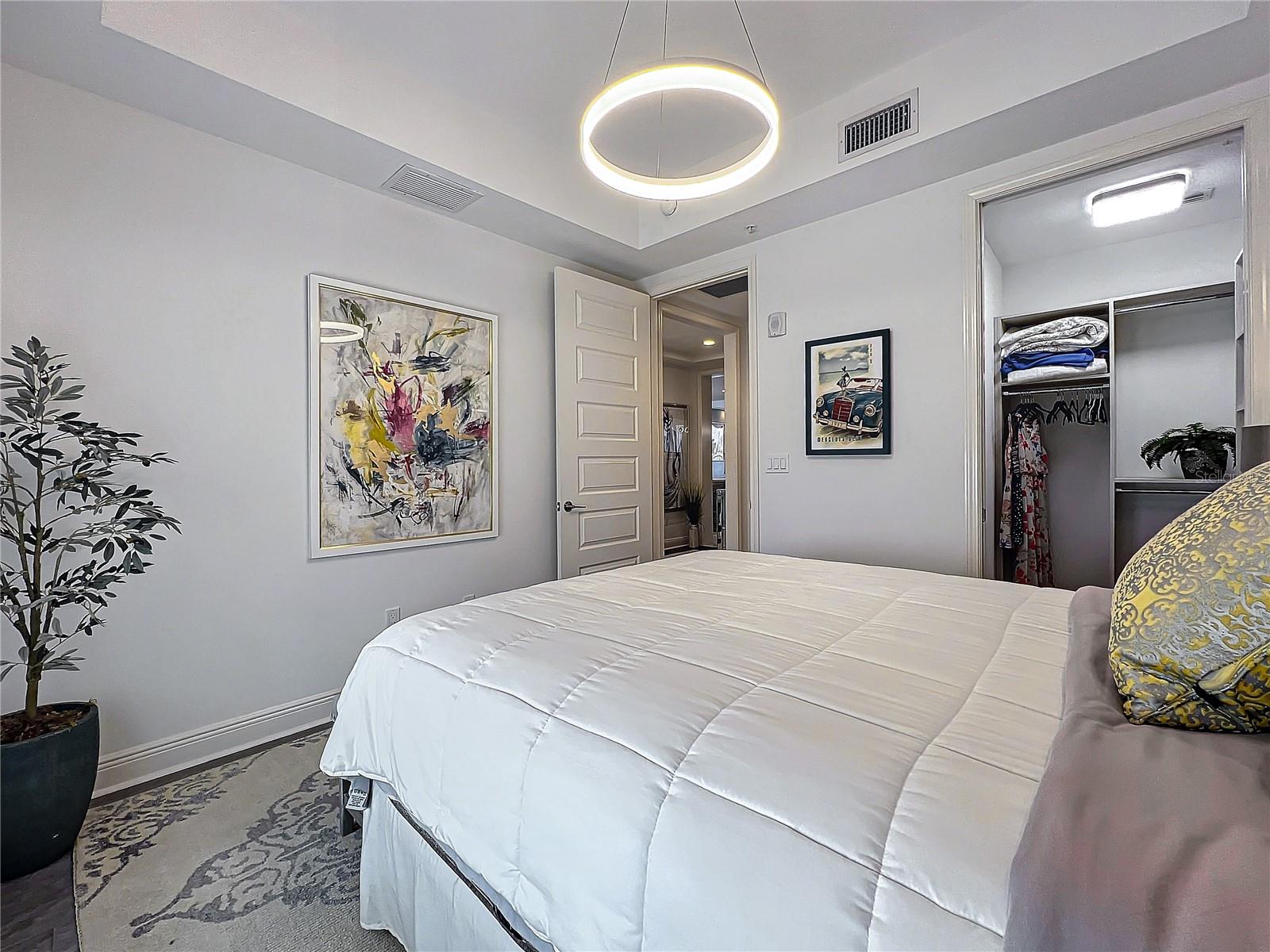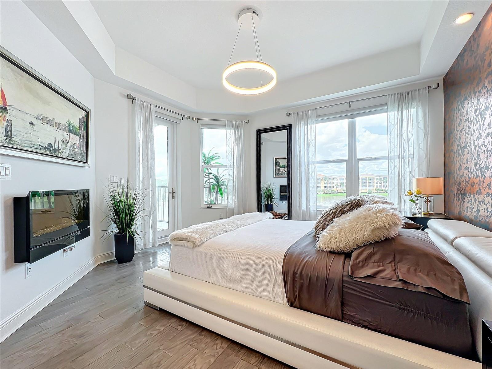 Welcome to your dream direct Lakefront condo with amazing Lake Views. This stunning upgraded 2 bed, 2 full bath and an office/Den currently used as a third bedroom is waiting on you! Power shades for each room. The mosaic-tiled entry leads you into an inviting dining area. The elegant kitchen opens to the dining/family room with high quality ceramic tiles flooring, quartz countertops, tall kitchen cabinets and large pantry, stainless appliances, a full-size dedicated laundry room is outfitted with a newer washer and dryer for added convenience. The condo is designed to impress, incredible LED dimmable lighting, high ceilings and French doors. The spacious family room framed by hurricane proof sliding glass doors, lets in plenty of natural light, showcasing lake views that feel like an ever-changing masterpiece! The primary suite features wood flooring, a custom walk-in closet, and an en-suite bath. Both family room and primary suite open onto a large fully screened balcony —perfect for enjoying your morning coffee while gazing out at the lake Uihlein. The community offers all the amenities you’d expect, includes an elevator, fitness facility, community pool, hot tub, fire pit, and a secure, gated entrance with coded building access. You'll have one assigned parking space and a private storage area, both under the building. The community fee covers insurance, exterior maintenance, common area & trash service. Take advantage of lakeside trails for walking or biking and enjoy a short stroll to Lakewood Ranch's downtown area with a cinema, mini-golf, shops, restaurants, and grocery store. You’re also just minutes from the Polo Club, Lido Key, Anna Maria Island, the UTC mall, and a short drive to Bradenton, Sarasota, St. Pete, and Tampa via I-75. This condo combines luxurious lakeside living with unmatched convenience—come see it today! Furniture are for sale if buyers like them.