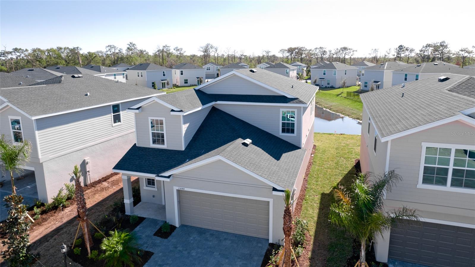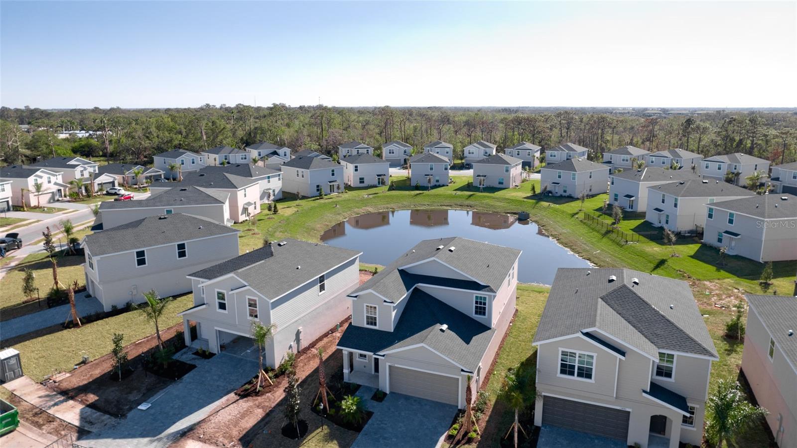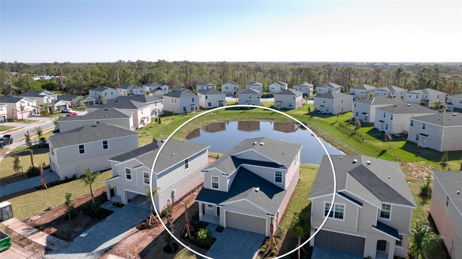 Total $45k price reduction! Brand new home with owner's suite on the main level. this two-story home divides space for optimal tranquility. The first floor showcases an open design that encompasses the 2-story foyer, dining room, gourmet kitchen with a huge island and all SS appliances, and living room for simplified family living and entertaining. The owner’s suite is on the main level and features a private bathroom with double sink vanity. The second level hosts four additional bedrooms, a full bath with a door separating the tub from the dual sink vanity, and a versatile loft. The 2-car garage has a beautiful paver driveway, In addition to a full lawn maintenance package and bulk internet service covered by HOA, homeowners will enjoy access to an onsite swimming pool, a playground and a fishing lake for outdoor fun. Close to top-rated schools, Publix plaza and easy access to I-75.