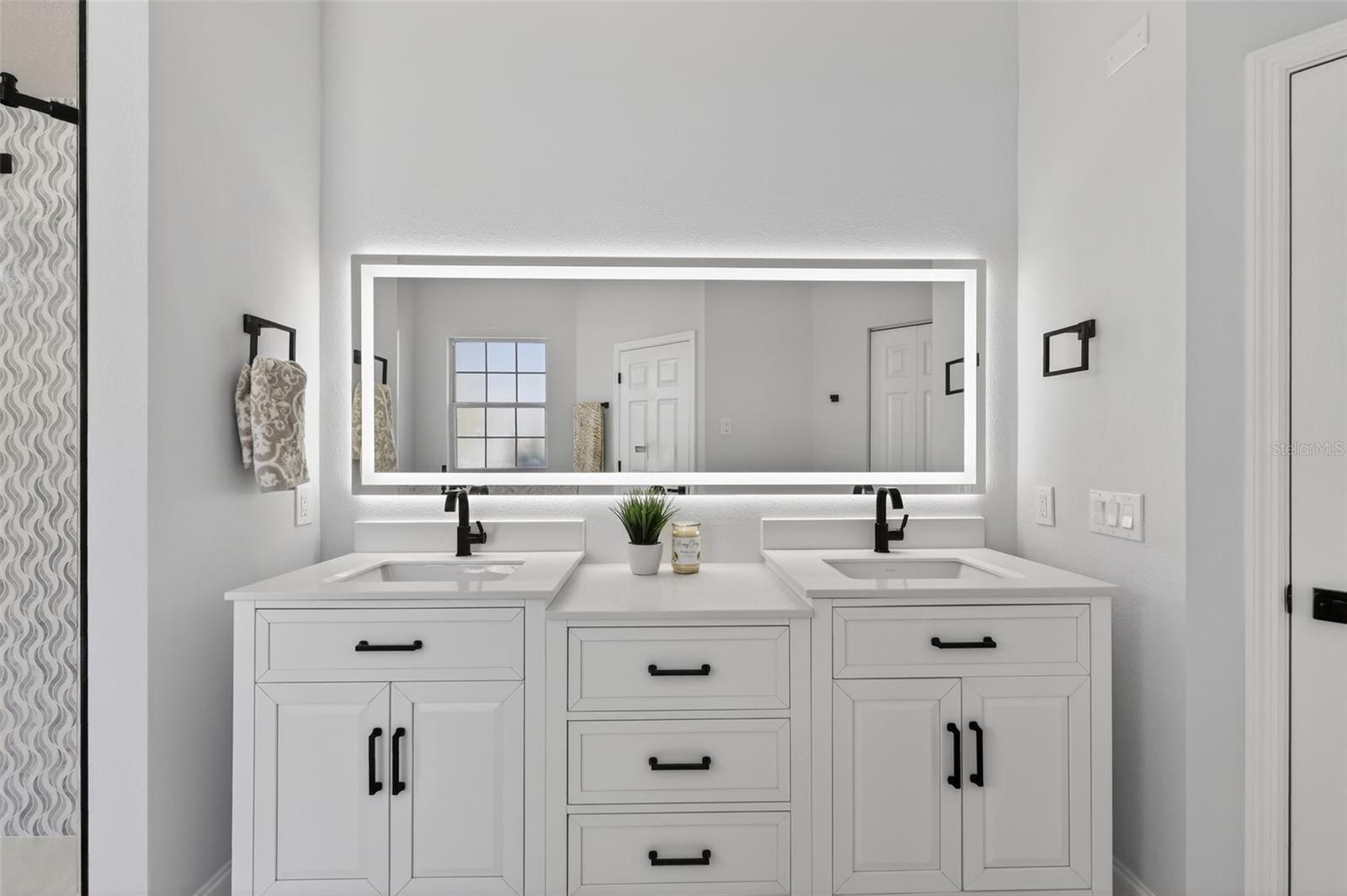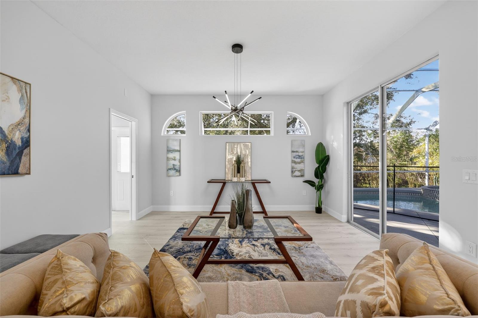 Beautifully renovated 4-bedroom, 3-bathroom pool home located in the highly sought-after community of Summerfield Village in Lakewood Ranch. This spacious and elegant residence offers 2,317 heated square feet and 3,175 total square feet, all situated on a generous 0.26-acre lot with lush landscaping, palm trees, and a well-maintained front garden that enhances the home's curb appeal. Step inside to discover brand new luxury vinyl plank flooring throughout the living areas and a bright, open layout designed for modern living. The fully updated kitchen is both stylish and functional, featuring brand new stainless steel appliances, quartz countertops, ample cabinetry, and a layout that flows seamlessly into the living and dining spaces. Each bedroom is thoughtfully designed with large windows that allow for an abundance of natural light, creating a warm and inviting atmosphere. The primary suite is a true retreat, offering a spacious layout, large closets, and a luxurious en-suite bathroom complete with a tiled walk-in shower and a separate sit-in soaking tub. The living area opens to a sliding glass door that leads out to a screened-in pool patio, ideal for relaxing or entertaining guests. The expansive backyard provides plenty of room for outdoor gatherings, play, or simply enjoying peaceful Florida evenings. Additional features include a 2-car garage, updated lighting and fixtures throughout, and a location that offers easy access to top-rated schools, parks, shopping, dining, and all the amenities that Lakewood Ranch is known for. This move-in-ready home is a rare opportunity to own a completely renovated property in one of the area’s most established and desirable neighborhoods.