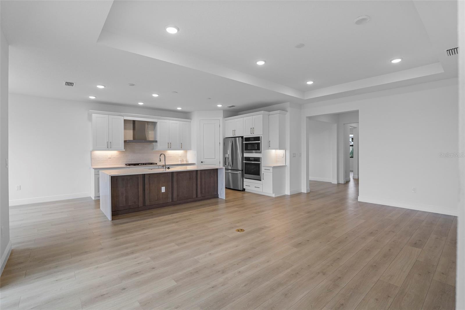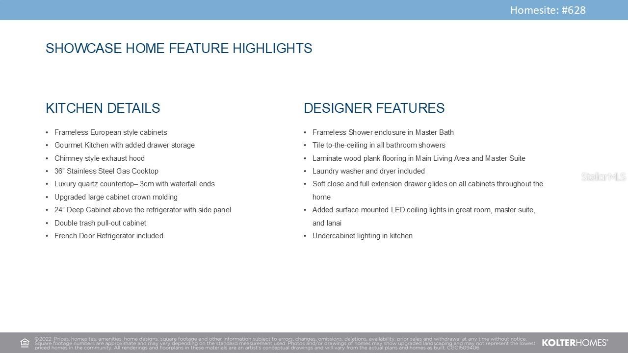 ***NEW CONSTRUCTION***This beautifully appointed Ana Maria floorplan is a single-story 2 bedroom, 2 bathroom + den home that combines elevated design with everyday comfort. Offering open gathering spaces and thoughtfully integrated upgrades, the layout is ideal for both entertaining and relaxed living. The gourmet kitchen is the heart of the home, featuring frameless European-style cabinets, luxury 3cm quartz countertops with elegant waterfall ends, a 36” stainless steel gas cooktop, chimney-style exhaust hood, undercabinet lighting, and soft-close, full-extension drawer glides throughout. Functional enhancements include added drawer storage, a double trash pull-out cabinet, a 24” deep cabinet above the refrigerator with side panel, and a French door refrigerator that’s already included. Overlooking the great room, the kitchen flows seamlessly to a spacious extended covered lanai with western exposure and stunning water views—perfect for enjoying the sunset. The lanai is prepped for a future summer kitchen and pool, creating a true indoor-outdoor living experience. A privacy wall adds to the home’s sense of peaceful retreat. The owner’s suite features laminate wood plank flooring, a spa-inspired bath with a frameless shower enclosure, and tile extending to the ceiling. Additional details include floor-to-ceiling tile in all bathroom showers, upgraded LED ceiling lights in the great room, master suite, and lanai, as well as a laundry area complete with washer and dryer. With its premium finishes, future-ready features, and beautifully open layout, the Ana Maria floorplan delivers exceptional style, functionality, and comfort in every square foot.